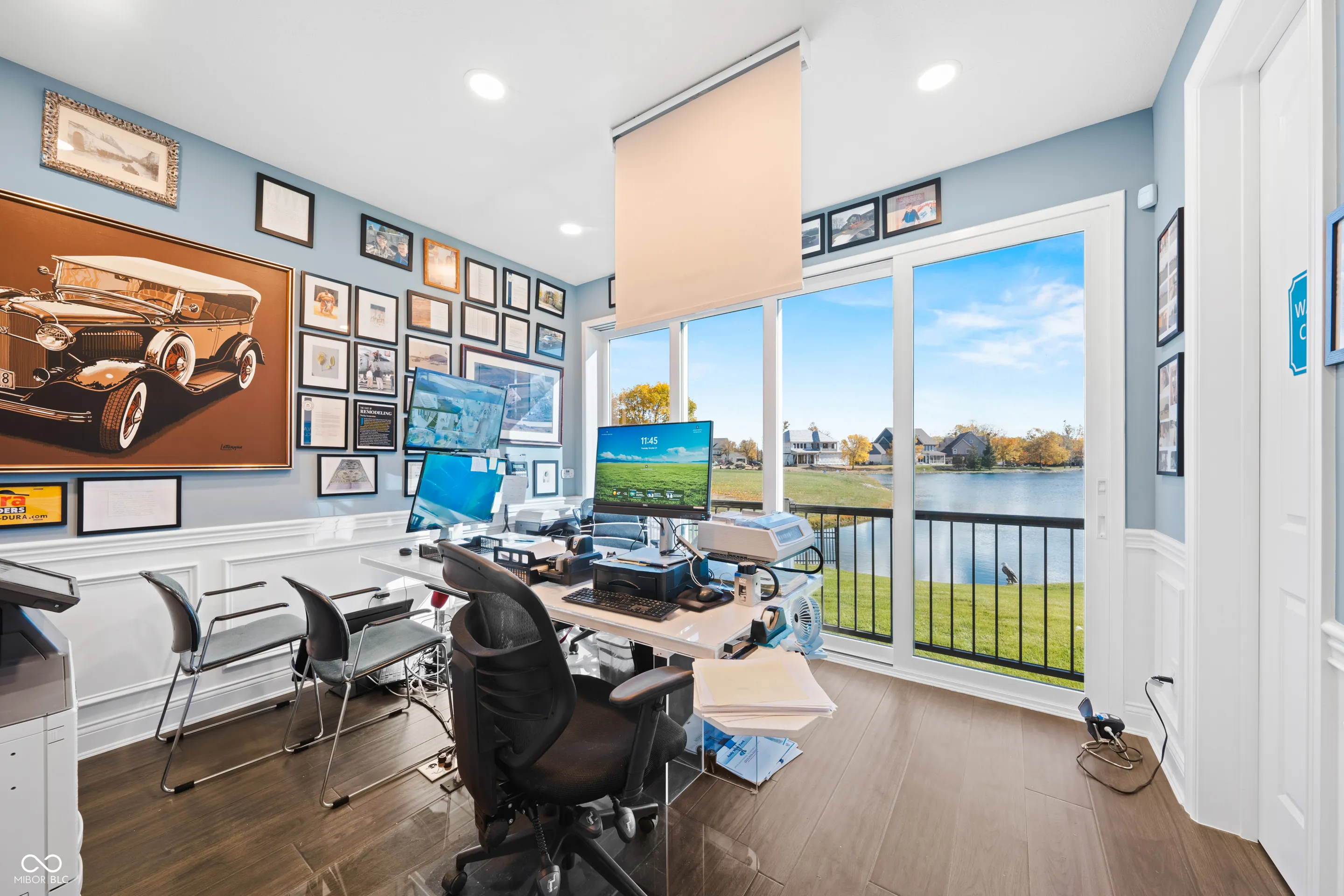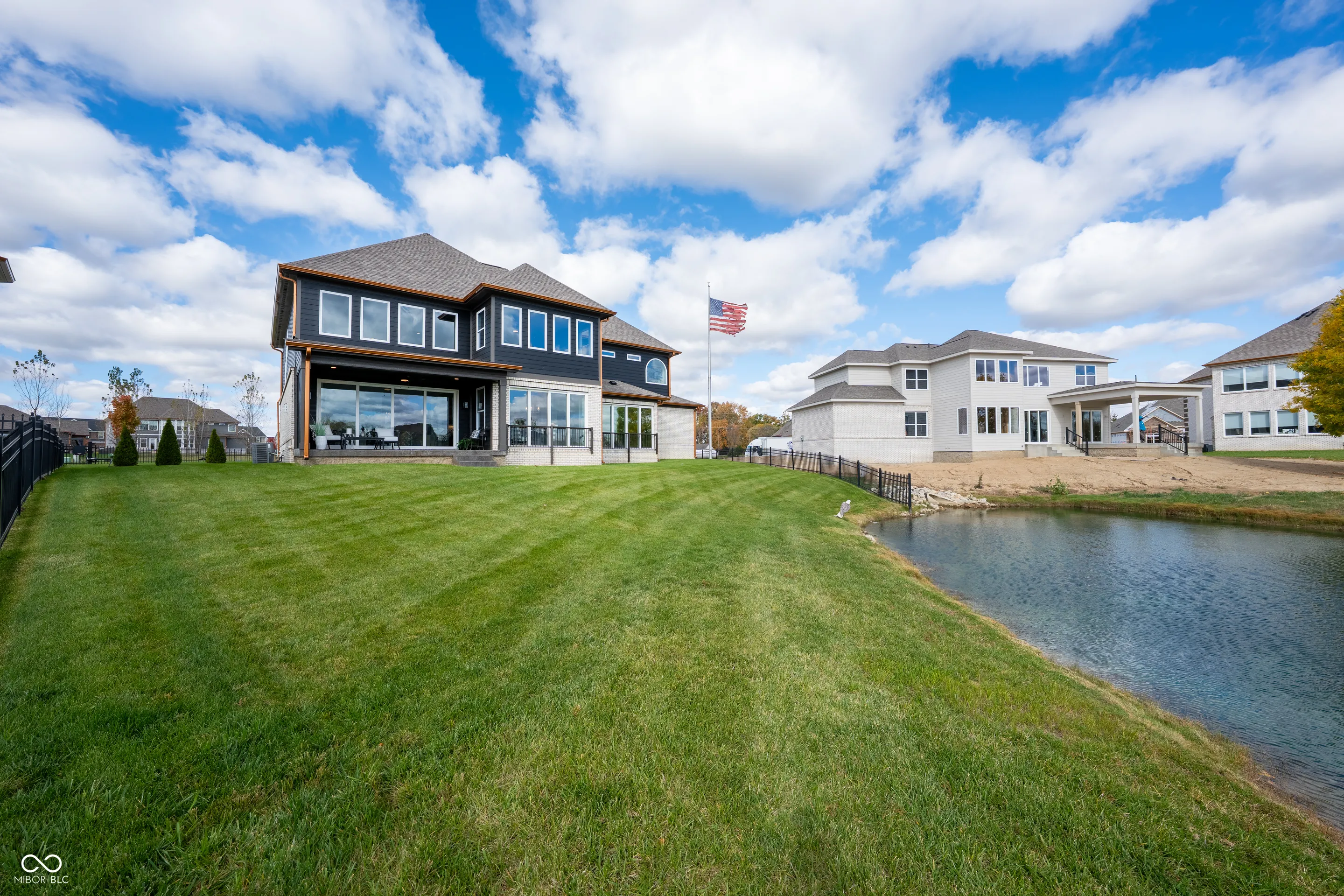 Welcome to this luxurious lakefront home, where stunning water views and elegant living come together. Situated on a pristine waterfront lot with a semi-circular driveway, this exceptional property offers the perfect blend of tranquility and sophistication-ideal for multi-generational living and creating lasting family memories. A beautiful foyer invites you in from the covered porch, setting the tone for the grandeur that awaits. The main level includes a bedroom and a formal dining room perfect for hosting family gatherings and entertaining guests. The open floor plan flows seamlessly into the impressive two-story great room, complete with a cozy fireplace and expansive glass sliding doors that showcase breathtaking lake views and abundant natural light. The gourmet eat-in kitchen features premium finishes and an adjacent hearth room for additional seating and relaxation, ideal for enjoying your morning tea while taking in the serene waterfront scenery. A main floor guest bedroom with privacy ensures comfort for extended family or visitors. Upstairs, you’ll find four spacious bedrooms, including the luxurious owner’s suite, which boasts a garden tub, tile shower, double sinks, and two walk-in closets. The finished lower level adds even more living space, featuring a fully equipped wet bar, an additional bedroom, a full bathroom, and a generous rec room-perfect for hosting celebrations and entertaining guests while enjoying beautiful views of the lake. With ample space for family, guests, and entertaining, this auspicious waterfront retreat combines elegance, functionality, and prosperity, making it ideal for both everyday living and lakeside entertaining. Don’t miss your chance to make it yours! Home is being offered to sell contingent upon a 6-month lease back to builder after closing with new buyer. After closing, seller/builder will have possession until the 6-month lease expires.