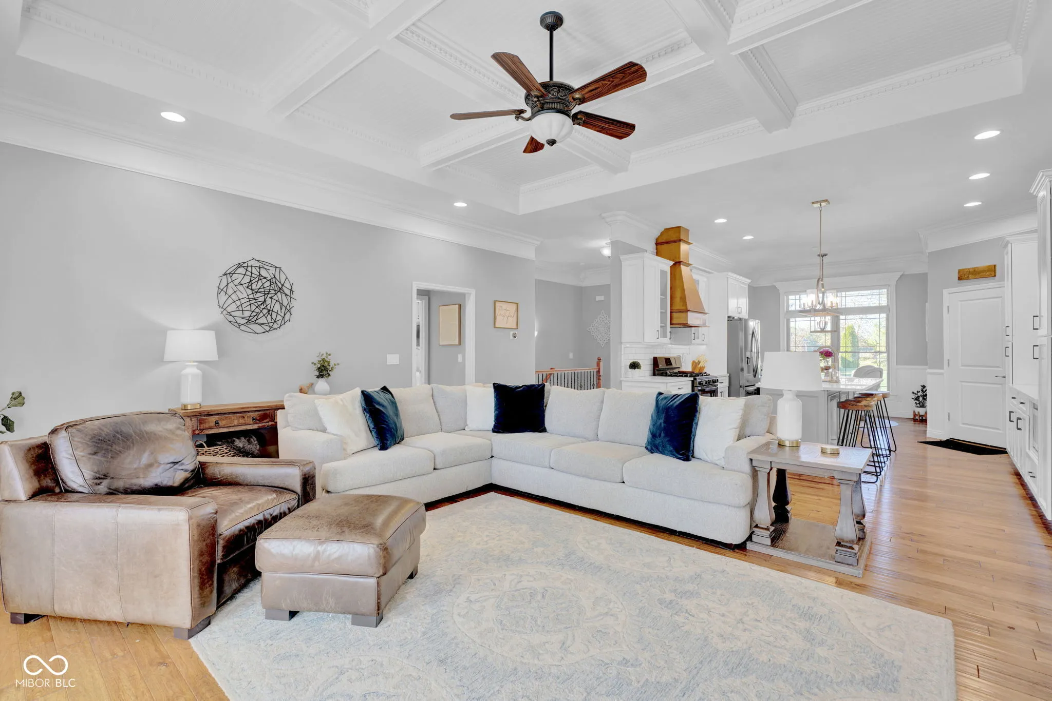 Welcome to this stunning all-brick ranch home in Sycamore Bend, perfectly situated on a peaceful cul-de-sac with a desirable north-facing orientation. This meticulously maintained residence boasts extensive upgrades and a fantastic, open layout that is sure to impress! Step inside and be greeted by beautiful hardwood floors that flow through the main living areas. The heart of the home is the gorgeous, bright kitchen, featuring a large center island, custom cabinetry, a stylish backsplash & a sleek hood vent-a chef’s dream! Adjacent to the kitchen and breakfast area is flexible room that can serve as a formal dining room or a spacious home office. Enjoy the open floor plan to the living room, which is highlighted by an impressive coffered ceiling & elegant crown molding. The luxurious primary suite is a dream, offering a spacious walk-in closet & a spa-like ensuite bathroom. The primary bath features custom cabinetry with double sinks, a beautifully tiled shower & a relaxing whirlpool tub. Three additional spacious bedrooms are also located on the main level. The finished basement significantly expands your living space, offering endless possibilities for entertainment. It includes a large rec room, a convenient wet bar, and a dedicated theatre room for movie nights. You’ll also find a substantial unfinished storage space to keep everything organized. Enjoy the outdoors on your covered back patio & the three-car garage, providing plenty of room for vehicles and storage. This home truly has it all!