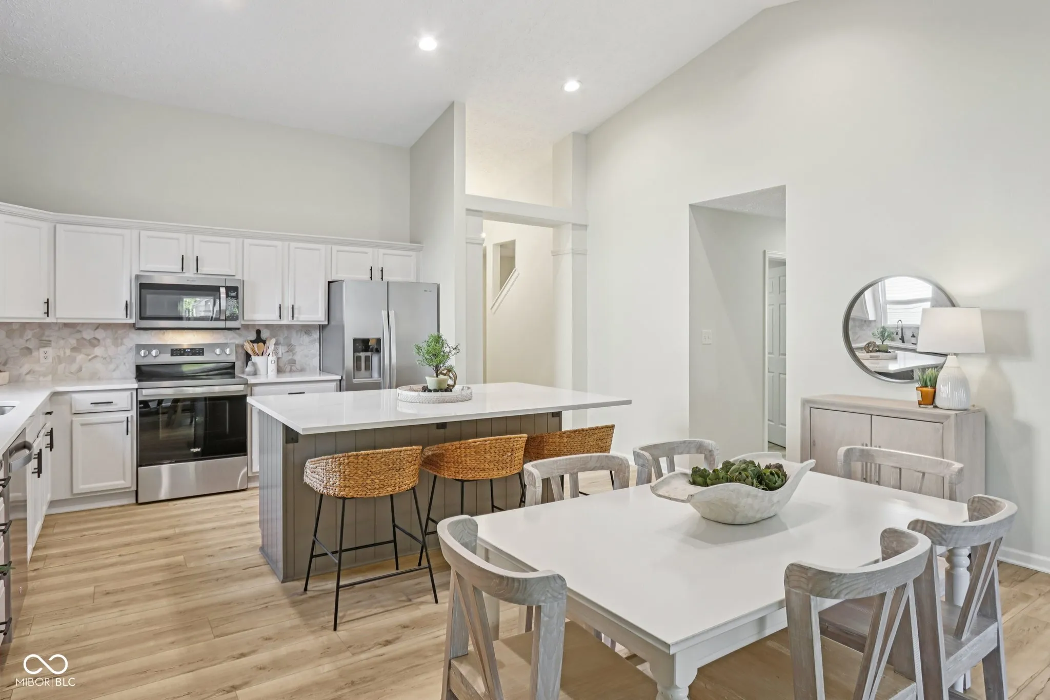Welcome home to 16964 Brigg Court. A beautifully updated property that blends luxury finishes, thoughtful design, and real-world functionality. Nearly every inch of this home has been upgraded, giving you the look and feel of a modern model home without the premium price or the wait. Inside, wide-plank Hallmark Everest Oak LVP sets the tone-rich, warm, and seamless-carrying through the main living areas and into the redesigned kitchen. The new custom Calcutta quartz island commands the room, oversized and designed for both style and function. Bianca quartz countertops, a marble hex backsplash, refurbished cabinetry, luxury hardware, and a new Whirlpool smudge-proof stainless appliance suite complete the kitchen with a magazine-worthy finish. Fresh Sherwin-Williams paint provides a crisp, modern feel, while Mohawk carpeting with upgraded padding adds exceptional comfort to each guest bedroom. Both bathrooms have been thoughtfully updated with granite vanities, new lighting and mirrors, upgraded hardware, new American Standard toilets, and coordinating porcelain tile for a clean and timeless aesthetic. Attention to detail continues throughout: a custom accent wall adds architectural character; all-new LED lighting brightens every room; a custom wardrobe closet increases storage; and the LG washer and dryer convey with the home. Just outside the patio doors, an oversized concrete patio expands the living space, fully enclosed by a privacy fence-perfect for relaxing, grilling, or effortless entertaining. The home is also within walking distance of the community pool. Ideally positioned on a quiet cul-de-sac street with convenient access to SR 32, US 31, and Michigan Road, this home offers exceptional connectivity and ease of access. Opportunities to own a fully updated, model-like home like this are rare. Do not wait-see why 16964 Brigg Court is one of Westfield’s best values before it’s gone
