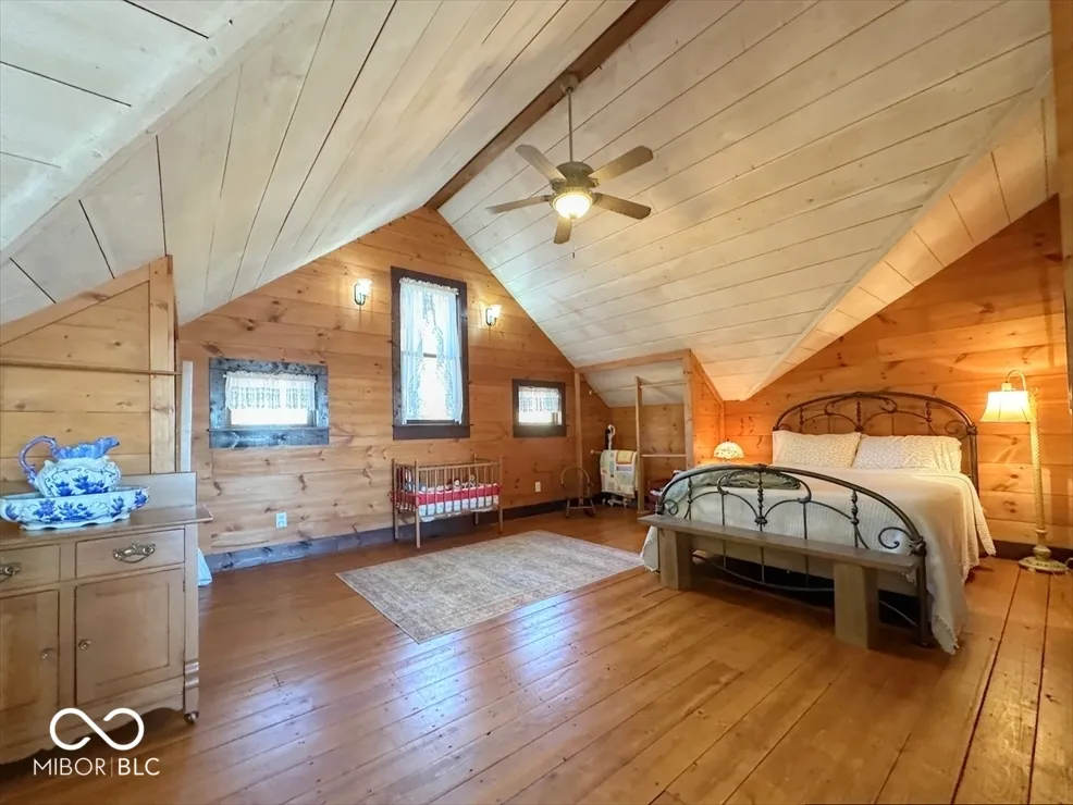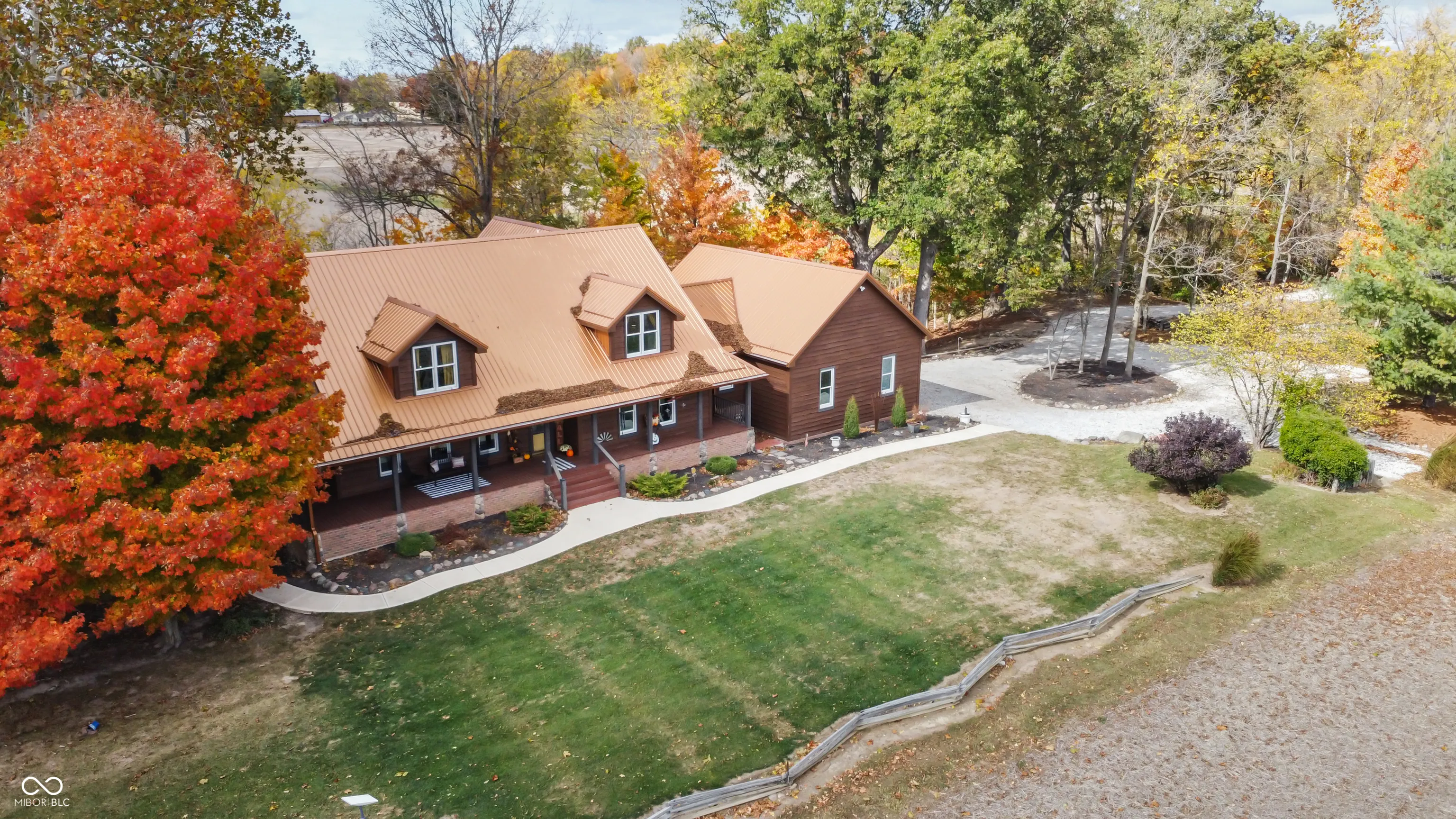 What a rare find! This stunning cedar home offers over 5,000 finished square feet of rustic elegance with a walkout basement and secluded wooded setting. Tucked away on 5 acres, this retreat combines natural beauty with refined craftsmanship. Step up to the covered front porch and into a massive great room featuring hardwood floors, soaring ceilings, and a stone fireplace that anchors the space. Walls of windows flood the home with light and offer breathtaking views from every room. The custom kitchen, completely remodeled in 2020, is a showstopper with granite countertops, high-end appliances, gorgeous cabinetry, and a unique copper backsplash that ties perfectly with the new copper metal roof and gutters. This home offers 3 to 4 spacious bedrooms and 31/2 baths, including a loft suite with additional sitting areas ideal for guests or relaxation. The walkout basement opens to a massive family room with wood burning stove, perfect for entertaining or cozy movie nights. Enjoy the outdoors from the wrap-around porch overlooking pristine landscaping and mature woods. The property also includes an oversized attached garage plus two impressive outbuildings-one brand new 40×22 structure with an RV door. A true retreat offering privacy, beauty, and craftsmanship-this Windfall property is a dream come true.
