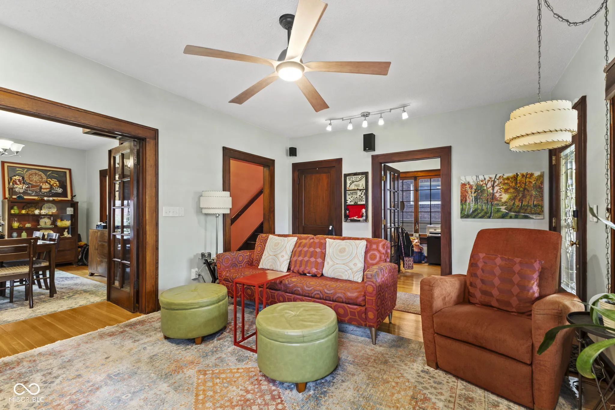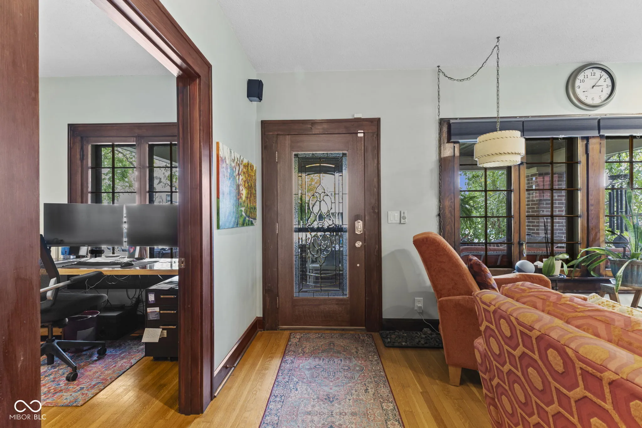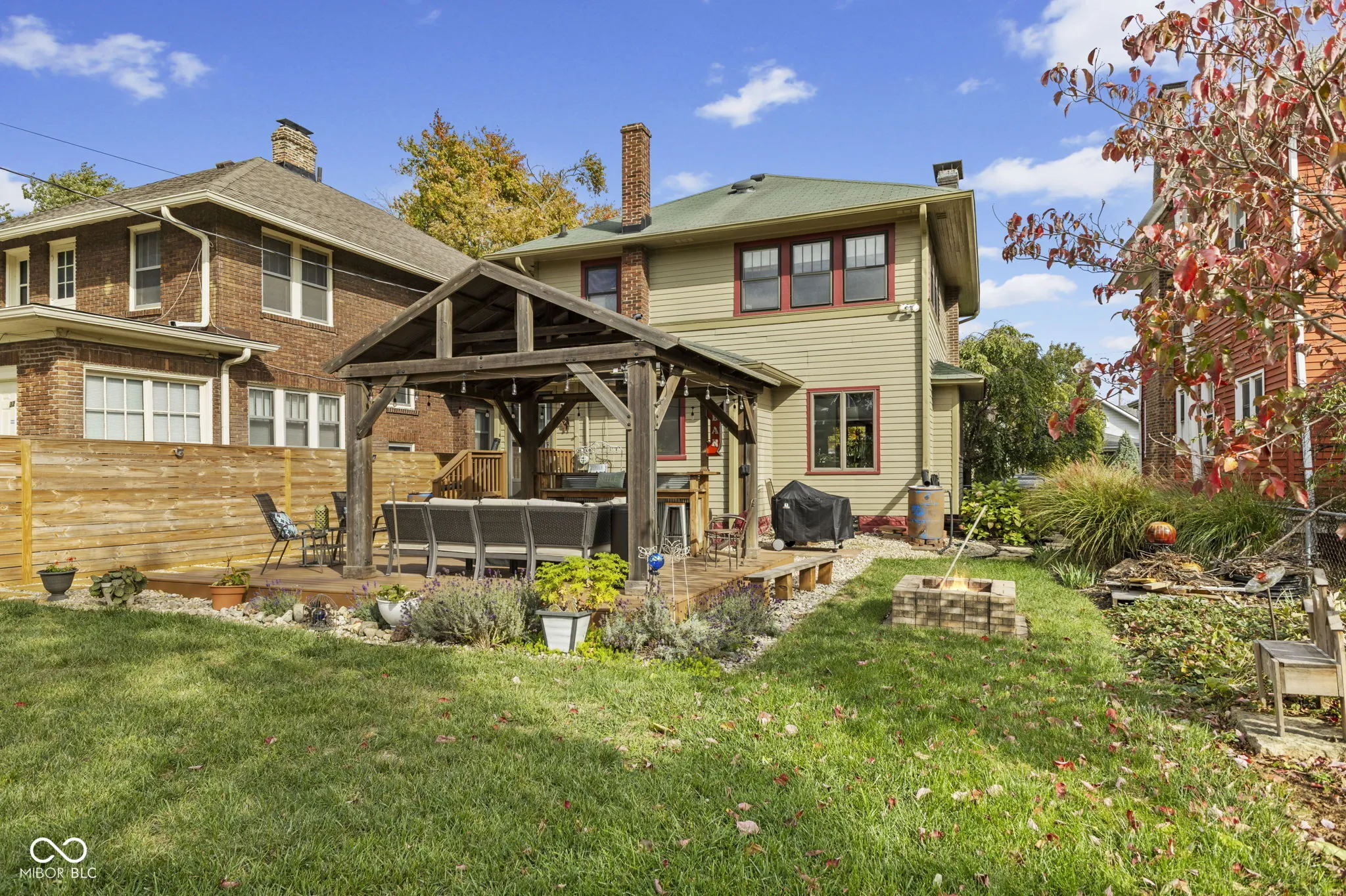 Welcome to this beautifully maintained 1920 home where classic character blends seamlessly with modern updates. Offering 1,820 sq. ft., this inviting residence features 3 bedrooms, 2 full baths, and a dedicated home office-perfect for today’s flexible lifestyle. Inside, you’ll find rich original woodwork, gleaming hardwood floors, and built-in shelves that highlight the home’s vintage craftsmanship. The living and dining rooms exude warmth and charm, anchored by a gas fireplace that was refaced in 2018. Both bathrooms were tastefully renovated in 2018, while the kitchen and mudroom received fresh paint and cabinet updates in 2025. A dry, full basement provides excellent storage or hobby space. From there, step outside to your own private retreat-a beautifully landscaped backyard complete with a deck and gazebo (added 2020, re-stained 2025), custom walkway, new fence, and sidewalk (2025)-ideal for relaxing or entertaining. The two-car detached garage adds convenience and extra storage. Enjoy peace of mind with major system upgrades, including a high-efficiency HVAC (2018), water heater (2022), water filtration (2022), and a new sewer line (2022). A whole-house humidifier and attic fan enhances comfort year-round. Located just minutes from downtown Indianapolis, IUPUI, the Zoo, and major employers, this home perfectly balances historic charm and modern living in one truly inviting package.