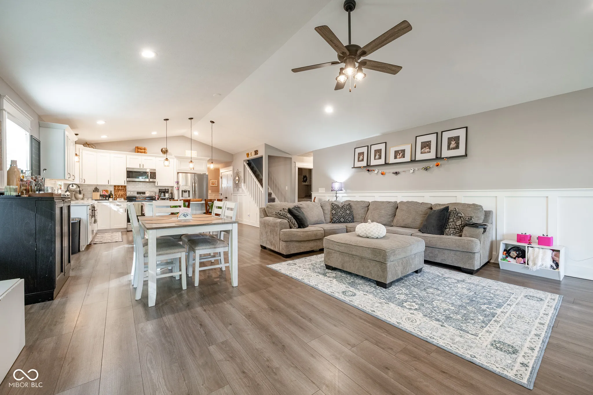 Welcome to this beautifully finished 3-bedroom, 2-bath home in the desirable Heritage Lake community! Designed with modern comfort and timeless charm, this home showcases thoughtful upgrades throughout. Step into the open-concept living area where rich wainscoting detail and a cozy gas fireplace create a warm, inviting atmosphere. The kitchen is a showpiece, featuring quartz countertops, a spacious island, and a farmhouse sink-perfect for cooking, gathering, and entertaining. Near the front entry, built-in shoe and coat storage keeps everything neatly tucked away. The primary suite offers a peaceful retreat with a walk-in closet featuring a built-in vanity for convenience and luxury. Upstairs, a large loft provides flexible space for a home office, playroom, or guest area. Enjoy outdoor living on the stamped, poured-concrete covered patio-complete with hidden storage built into the ceiling. Additional highlights include an extra-deep two-car garage with a concrete driveway, an encapsulated crawl space, and empty lots on both sides for added privacy. The backyard backs up to an open field, creating a serene setting for quiet mornings or relaxed evenings. Experience the best of Heritage Lake living-a welcoming community with scenic surroundings and recreational amenities. This home combines quality craftsmanship, smart design, and peaceful living all in one beautiful package. Schedule your private showing today!