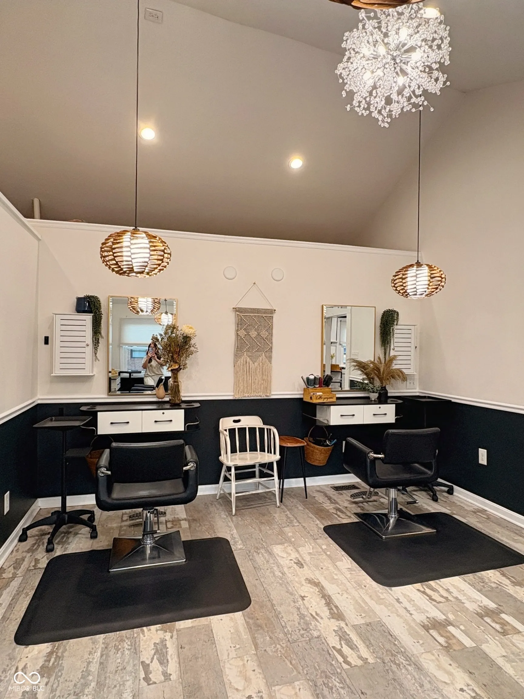 Business for sale including the property. This salon has a large client list and business presence built since 2018 with a 4.9 star rating on Google and the #1 rated salon for color in Hendricks County. The property has a newer roof, new furnace, new sanitary connection, new windows, new siding, recently re-striped parking lot and the list goes on. It has been renovated from top to bottom with the rear 500 SF being added in 2018. The salon includes 5 chairs (room for 7 chairs), wash stations, dryers, and all 7 stations. If that isn’t enough there is a 2 bedroom 1 bath apartment which could be additional income or a live/work scenario. It is also plumbed and ready to be a separate studio for massage, nails, or other wellness studio. Lot of income options with this building.