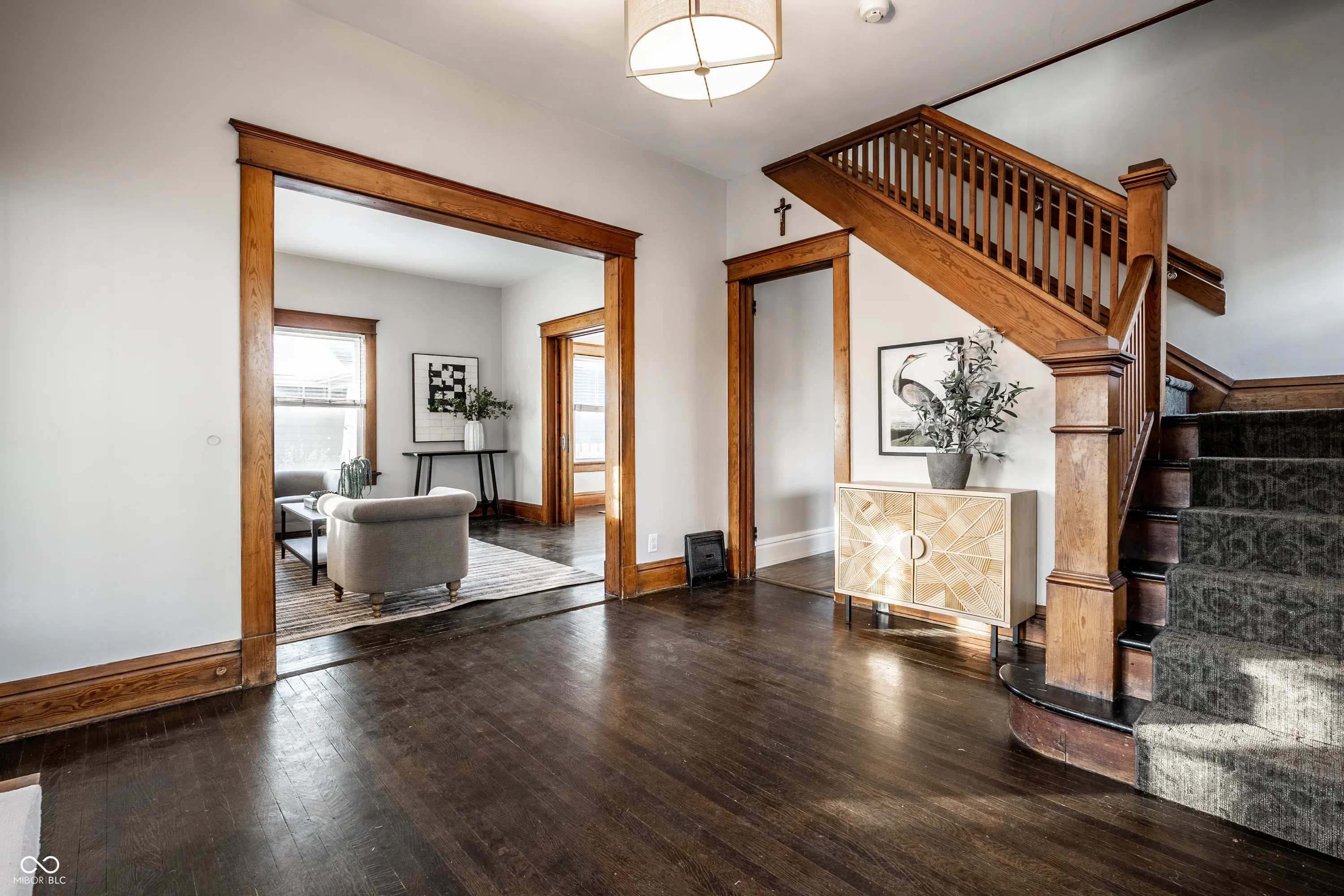 Discover this rare blend of original charm and modern updates in Fountain Square. Classic features include hardwood floors, pocket doors connecting the living and dining rooms, and a decorative dining room fireplace adorned with ornate tile and a one-of-a-kind mantle. The updated kitchen and two full baths (one on each level) bring fresh functionality while honoring the home’s character. An unexpectedly large, fully fenced backyard with a deck and patio. The NEW 2-car garage (measuring 24×30) takes this property to the next level! Notice the additional concrete patio off the garage – perfect for a backyard basketball. Inside the home you’ll find 4 bedrooms plus access to a walk-up attic for storage. Classic white subway tiled bathrooms with thoughtful niches are fully renovated. The unfinished basement offers more play space & storage. With the Pleasant Run Trail steps away and all the shops, cafes, and eateries on Prospect within easy reach, this home delivers the walkable lifestyle Fountain Square is known for.
