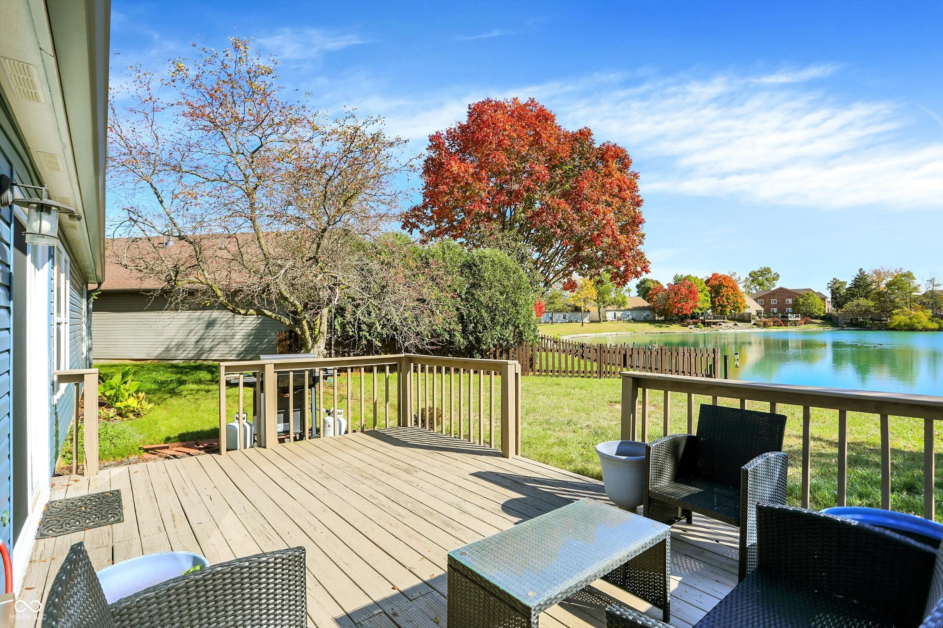 Discover this stunning pond view ranch featuring three spacious bedrooms, two full bathrooms, and a two-car garage, nestled in a charming and serene Waterside neighborhood in Noblesville. This home boasts a brand new roof, gutters, siding, fascia boards, and trim! It’s a true gem, showcasing a modern kitchen equipped with granite countertops and matching stainless steel appliances including a new Bosch Dishwasher! Whether you’re enjoying a home-cooked meal or indulging in takeout, the elegant formal dining room and inviting kitchen bar top provide perfect settings for any culinary experience. Imagine cozying up with loved ones for a movie night in the great room, which features a vaulted ceiling and plant shelves, all while basking in the warmth of the gas fireplace. Convenience is key with the laundry room with a new washer and dryer, located just off the kitchen, only steps away from the bedrooms. The owner’s suite includes an ensuite bathroom, while Bedroom 3, which features double glass French doors, can easily serve as an office. Step outside onto your recently stained large wooden deck and revel in the beauty of nature. The backyard offers endless possibilities for landscaping and gardening, all while overlooking tranquil waters. Enjoy fishing, birdwatching, and a peaceful escape right at your doorstep! Located just minutes from downtown Noblesville, this home is close to shopping, dining, parks, golf courses, excellent schools. Your famiy will enjoy the NEW walking and bike trails to Forest Park, Potters Bridge, Kroger, Nickel Plate, The Monon, This is a rare find, so don’t miss out on this incredible opportunity-book your showing today!