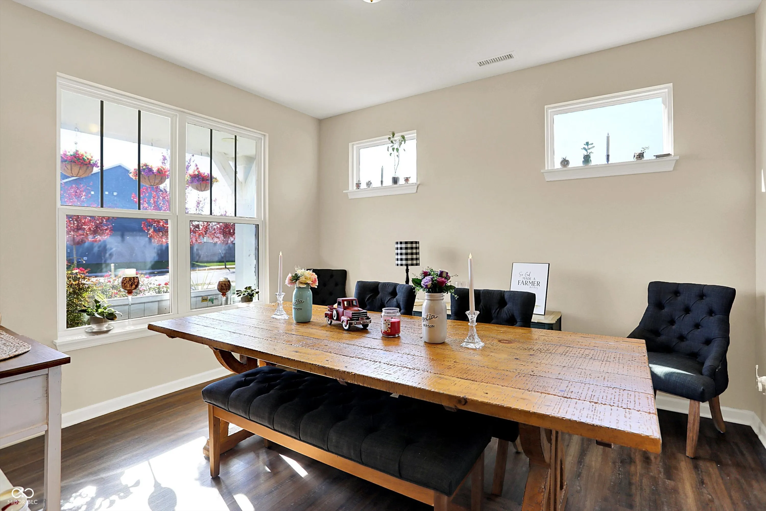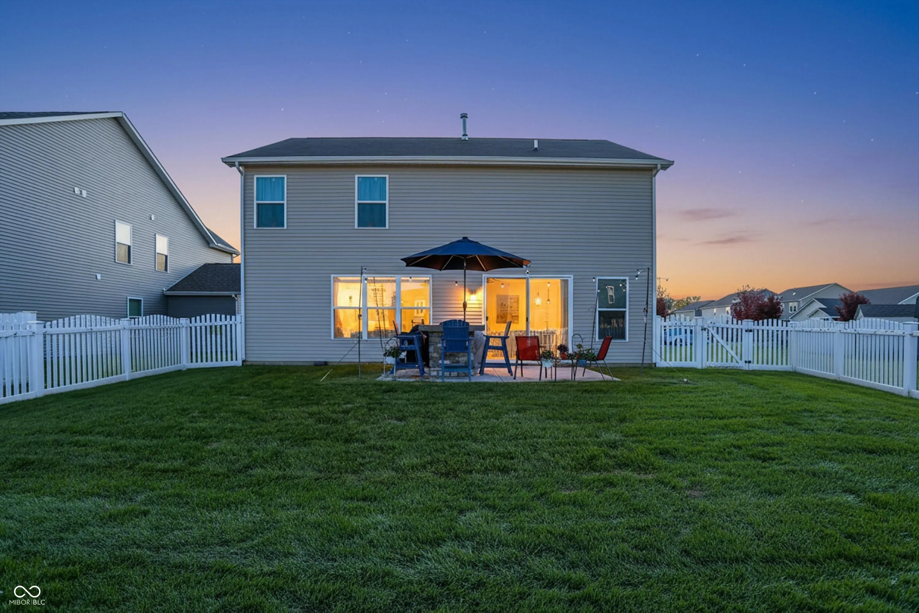 Welcome to this bright & airy 4-bedroom, 2.5 bath farmhouse-style home with open concept layout and abundant natural light! The spacious kitchen offers stainless steel appliances and a large kitchen island and flows seemlessly into the great room. Nice open entryway with view of dining room or flex room. Upstairs you’ll find a versatile loft space, ideal for home office, playroom or reading nook. The primary suite includes private bath with double sinks and large tiled walk-in shower, while 3 additional bedrooms and another full bath will provide plenty of room for everyone! Enjoy outdoor living in the fully fenced backyard, beautifully landscaped with thick sod. The included outdoor bistro table, firepit, and four blue chairs make it the perfect space to unwind or host friends. A two-car attached garage adds convenience and storage. Full of charm, this home offers everything you need to live comfortably and entertain effortlessly! It’s close to I65, only 30 minutes from Indy, but also everything downtown Franklin, walking trails, parks, shopping, restaurants!