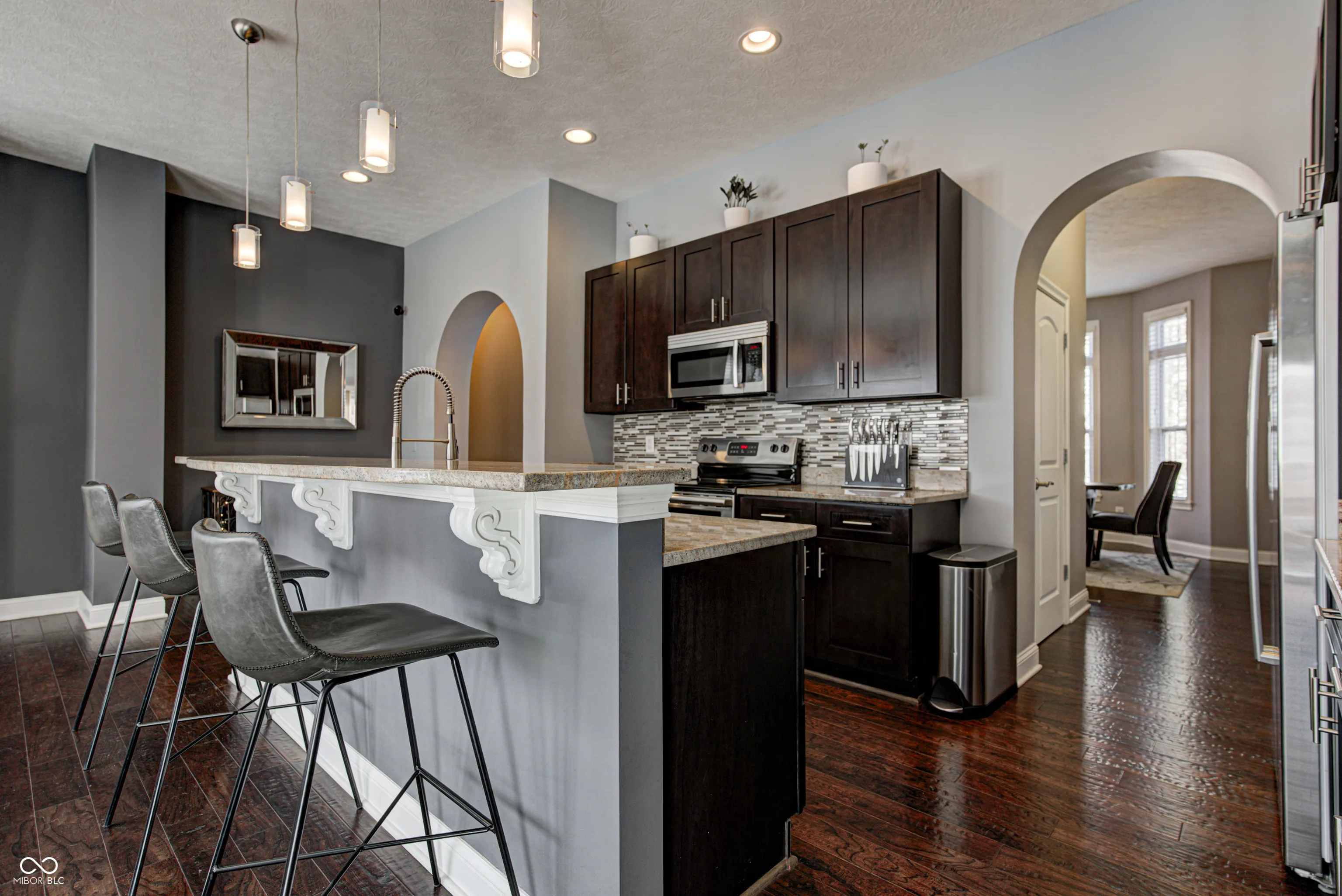 Stunning 3 Story Brownstone in Desired Guilford Reserve Offering a Blend of Sophistication and Relaxation, Along With an Incredible Carmel Location. With Over 2300 sq ft, This Home Features 3 Bedrooms + An Office/Study with French Doors and Large Walk-In Closet That Could Also Be a 4th Bedroom. Designed for Modern Living, You Will Love This Light-filled Open Floorplan with Beautiful 10 Ft. Ceilings, A Sleek Kitchen with Granite Counters, Tile Backsplash, Custom Cabinetry, Stainless Appliances, Pantry, and Expansive Breakfast Bar/Island That’s Open to the Great Room. This Floorplan is Perfect for Entertaining or Relaxation by the Fireplace. The Dining Room is Exquisite with Beautiful Large Windows and Updated Lighting. Upstairs, You Will Find a Beautiful Primary Bedroom with a Large Walk-In Closet and En-Suite Bathroom Including Dual Sinks, a Garden Tub, and a Walk-in Custom Tile Shower. 2 Additional Bedrooms Are Also on the Upper Level, One Also with a Walk-In Closet. You Will Love the 2 Car Finished Garage with Professional Epoxied Floors Done by Dynasty Epoxy with w/ 21-Year Warranty and Built in Shelving (approx. 7K+), and From the Deck, You Will Enjoy the Soothing Sounds of the Community Fountain. Refined Details Elevate Every Corner of this Home…Year-Round You’ll Enjoy Living in the Heart of Carmel, Walk to Midtown, Carmel City Center, and the Arts & Design District and the Monon Trail. Easy Access to Parks, Restaurants, Unique Shopping. Welcome to Carmel Sophistication…. ***NOTE – HOA Dues INCLUDE Water, Sewer and Trash***The Home Includes a Wireless Arlo Camera System, and Wifi Enabled Door Lock, Nest Thermostat, and Nest Protect Smoke Detectors, and My Q Garage Opener (Approx. $3K in Upgrades)