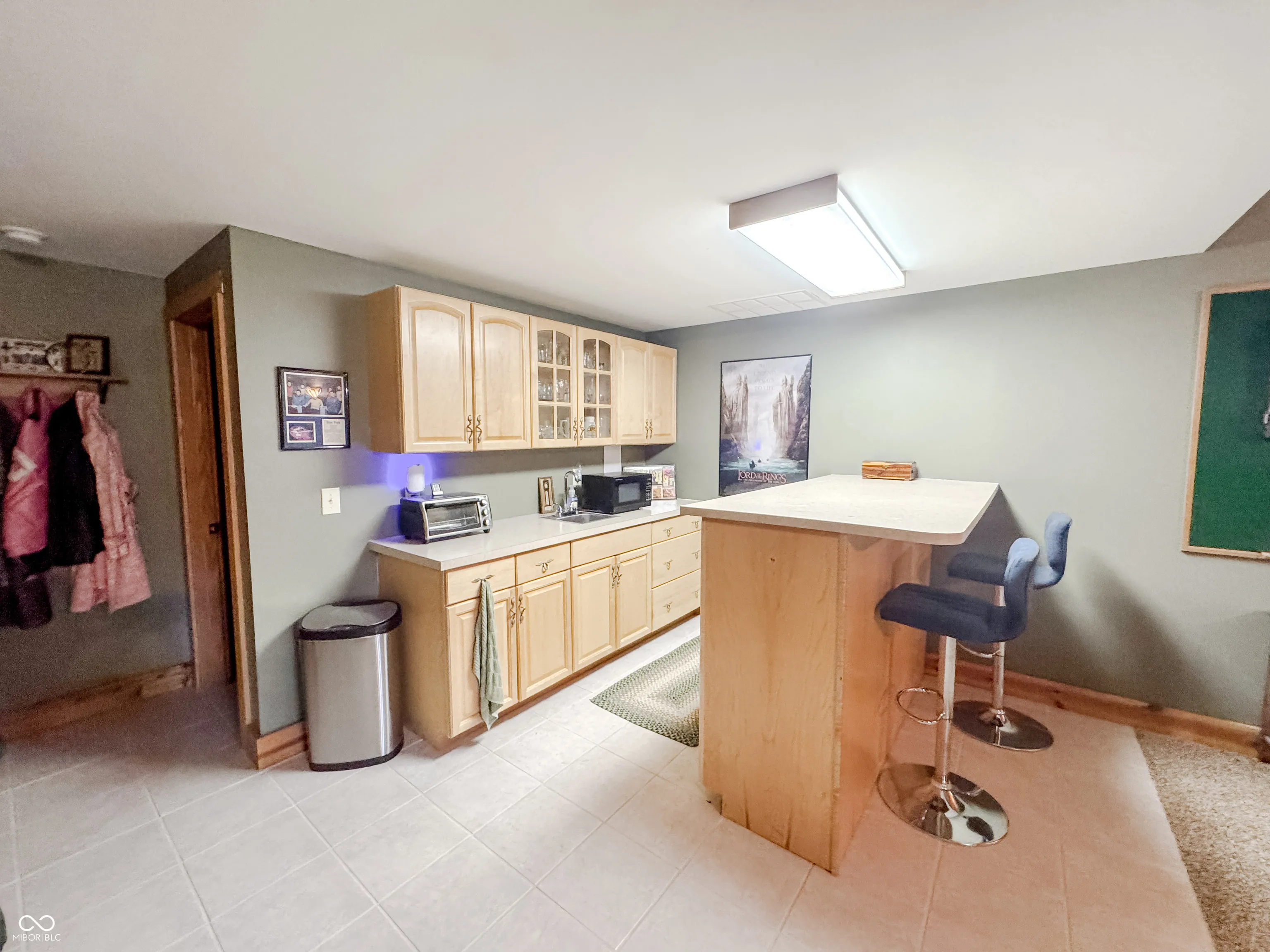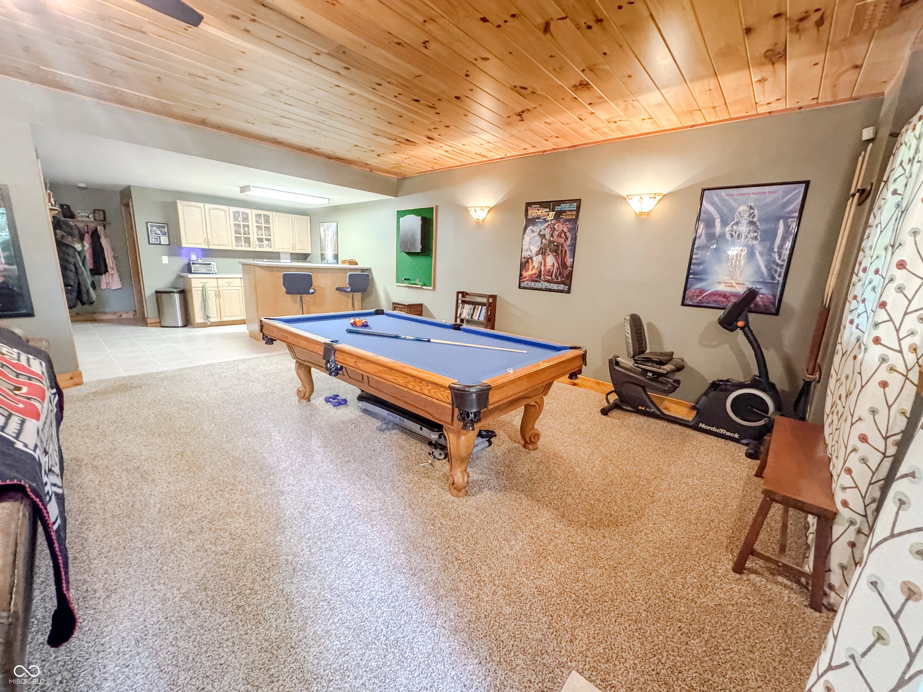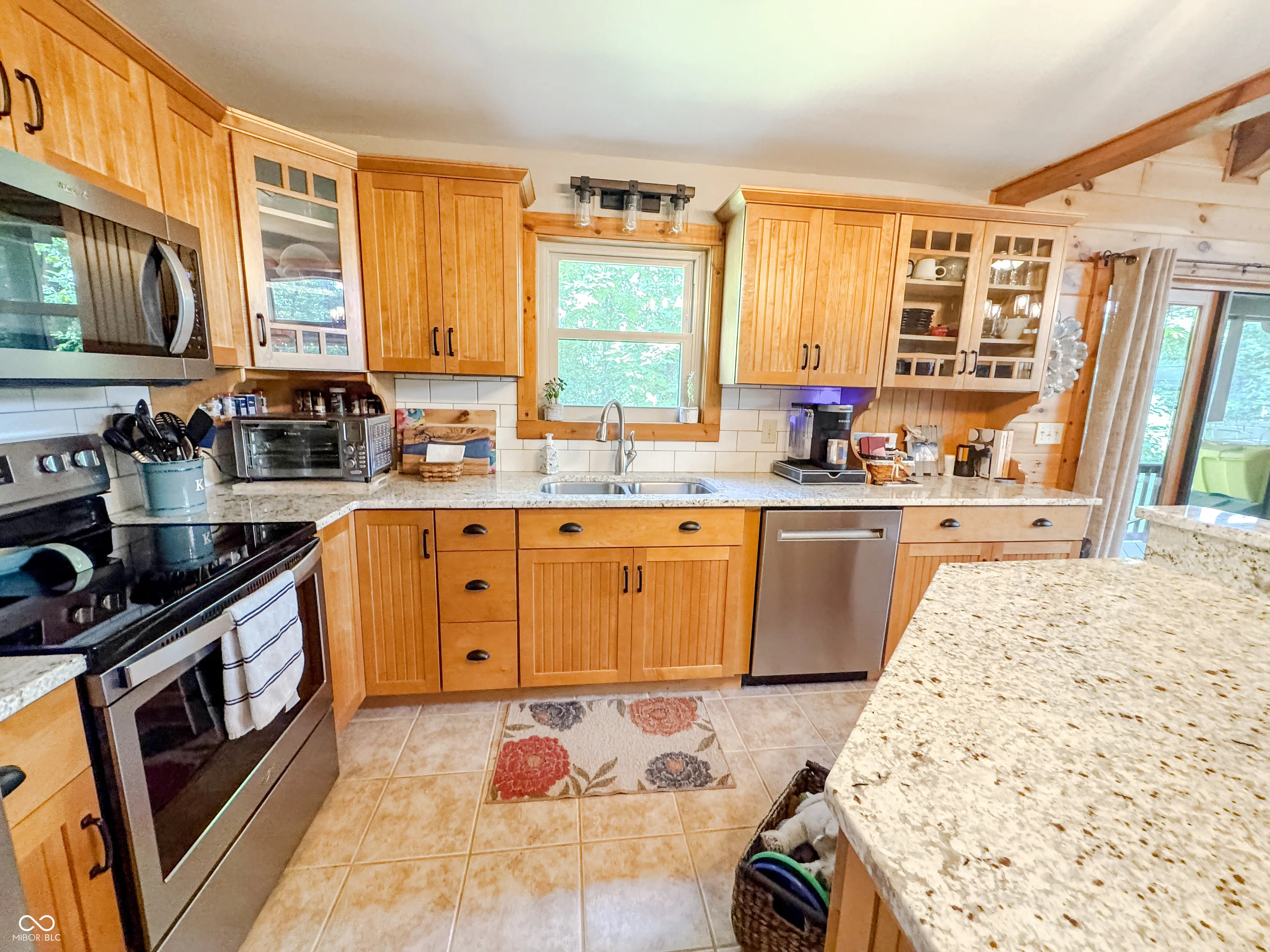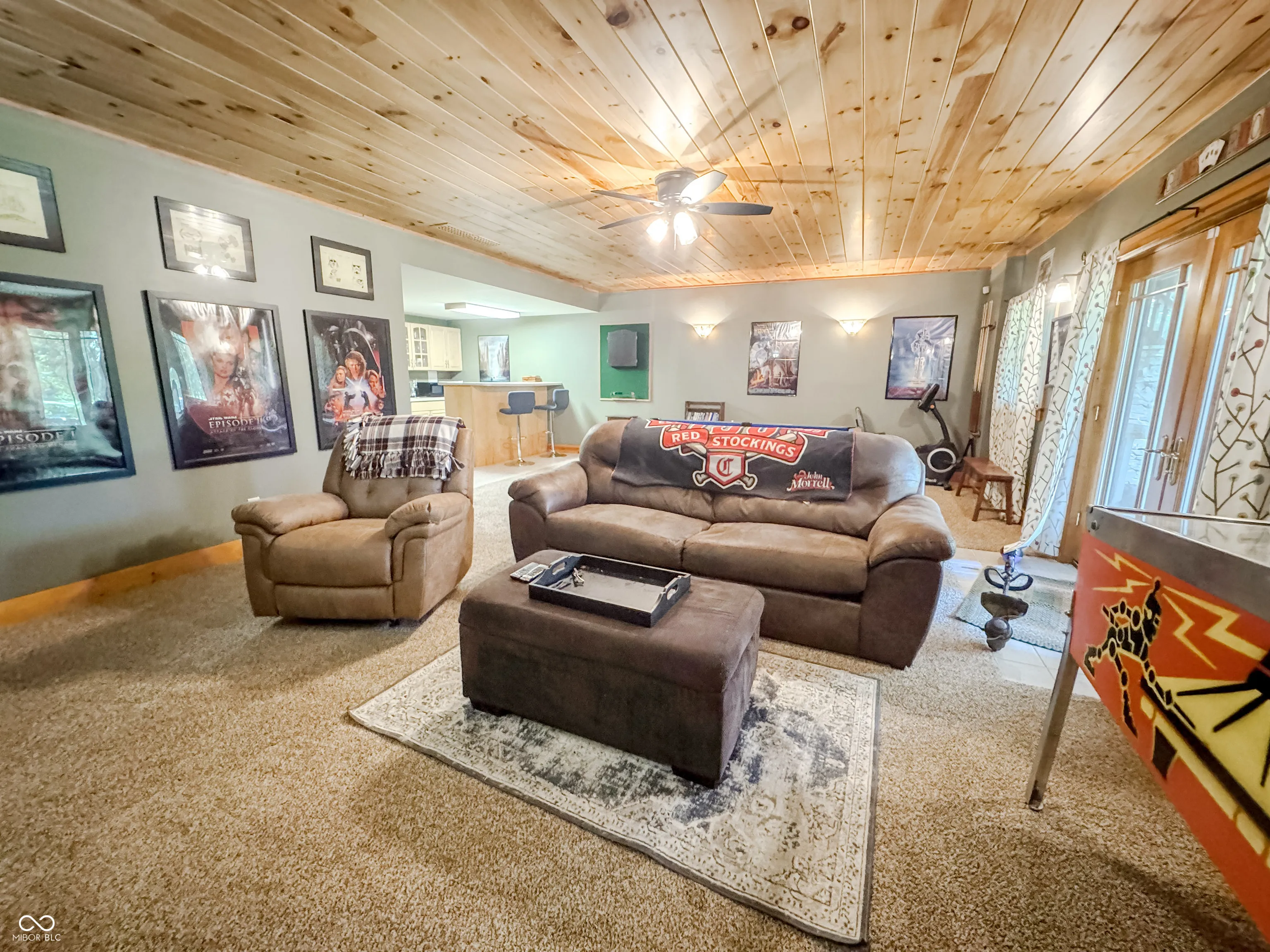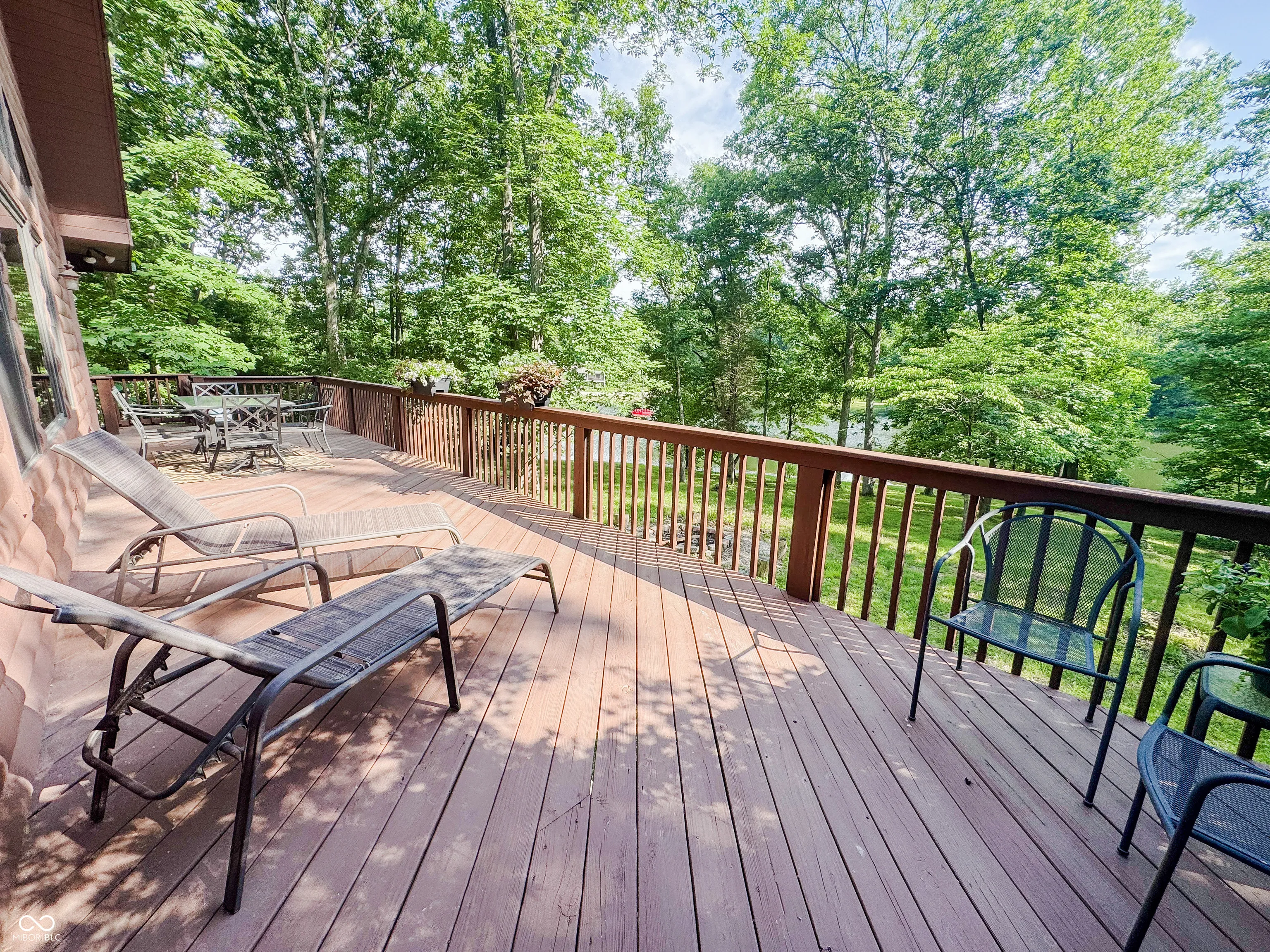 Welcome to this stunning log cabin on 5.9 acres over looking a 4 acre stocked lake in Vevay. Starting on the exterior there is a large detached garage, large wrap around porch, walk out basement, fire pit, mature trees, generator, and new roof 2025. Heading inside to vaulted ceilings, large open windows, hard wood flooring. This house is packed with features. The living room has a stone fireplace with a great view of the lake. The kitchen features stainless steel appliances, center island, and stone countertops. Heading down the hall to the recently updated bathroom. Spacious main bedroom across the hall from the bathroom with hardwood flooring. Heading upstairs to a spacious additional room currently being used as a guest room and office space. This flex space has many possibilities. Heading down to the walk out basement this space features a wet bar and plenty of space for entertaining. There is an additional full bathroom in the basement. No HOA! Nature lovers paradise with plenty of deer and other animals. Full access to the lake.