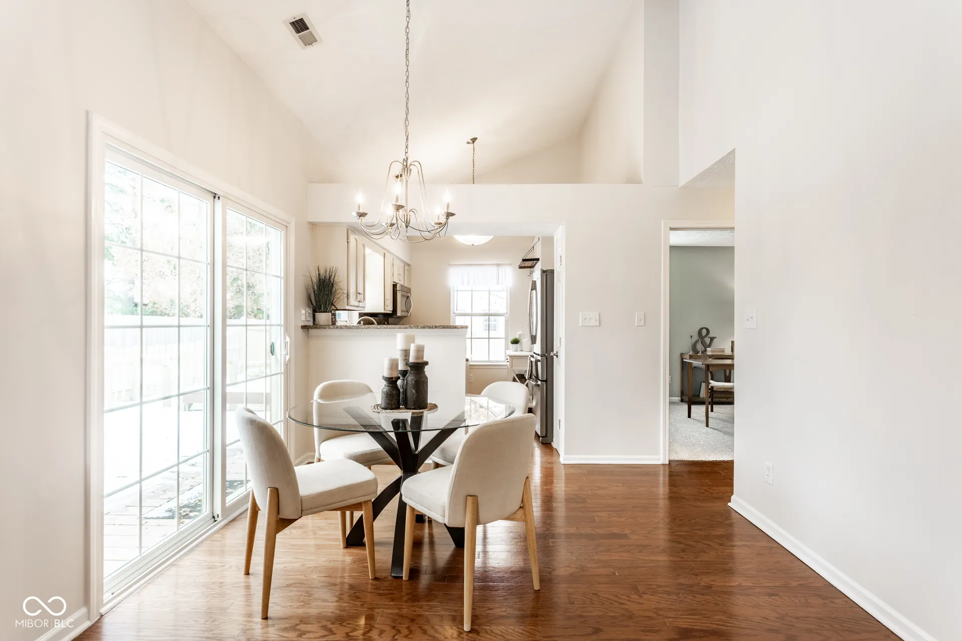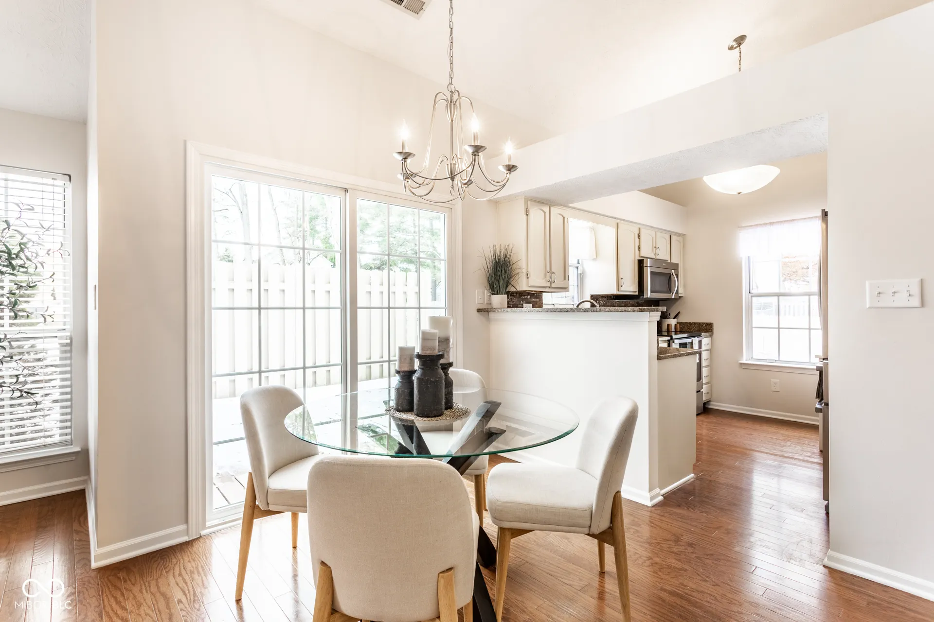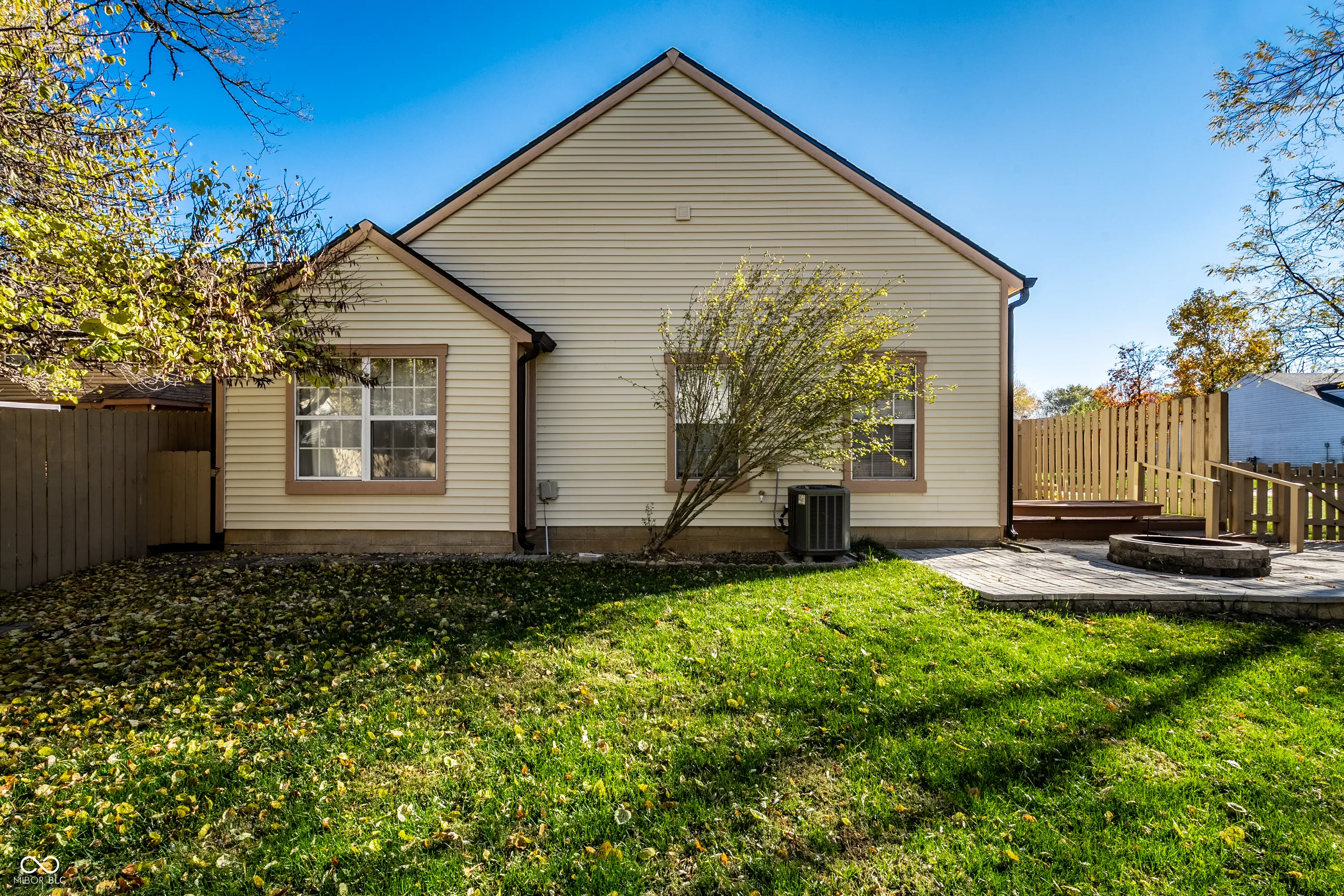 Tucked within in the quiet, tree-lined Pines neighborhood, this beautifully maintained 2-bedroom, 1.5-bath home offers the perfect blend of comfort, character, and modern updates. Light-filled living spaces and vaulted ceilings create an airy, open feel, while the cozy wood-burning fireplace adds warmth and charm to the main living area. The kitchen is both stylish and functional, featuring stainless steel appliances, granite countertops, and a tiled backsplash. The adjoining dining area opens to your private backyard retreat-complete with a full privacy fence, spacious deck, patio, and fire pit-ideal for hosting gatherings or simply relaxing and enjoying the mature trees and Indiana seasons. The primary suite offers a peaceful escape with a generous walk-in closet and private full bath, while the second bedroom provides flexibility for guests, a home office, or creative space. The washer and dryer are included for added convenience. With its inviting design, mature landscaping, and location near parks, shopping, dining, and top-rated schools, this home perfectly captures the charm and lifestyle that make Fishers one of Indiana’s most desirable places to live.