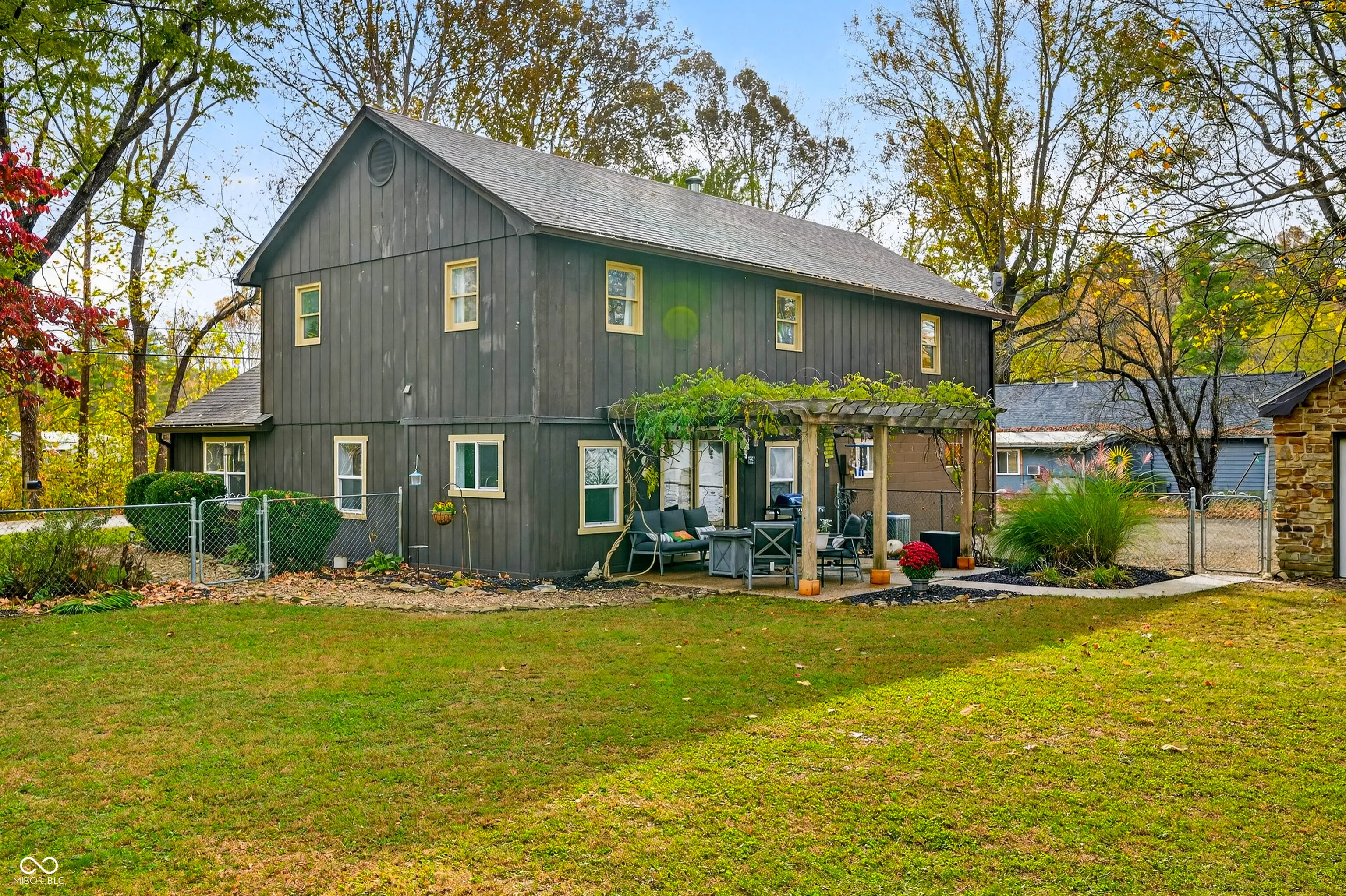 Don’t miss this affordable and well-maintained 3-bedroom home, ideally located between Nashville and Columbus. With numerous recent updates and thoughtful details throughout, this property offers both comfort and convenience. The spacious great room features a stunning Brown County stone gas-log fireplace – perfect for cozy evenings or entertaining guests. Throughout the home, you’ll find hardwood, laminate, and vinyl flooring – no carpeting anywhere. The updated kitchen boasts stainless steel appliances (all new within the past five years) and connects to an oversized walk-through pantry leading to the attached garage. A large mechanical room and a half bath (with ample space to convert into a full bath if desired) complete the main level. Upstairs, you’ll find three bedrooms, an office, a fully updated bath, and a large laundry closet equipped with a new washer and dryer. The generous 24×18 primary suite includes a comfortable sitting area for relaxing at the end of the day. Step outside from the kitchen to a lovely aggregate stone patio shaded by a wisteria-covered pergola – an inviting spot for outdoor dining or morning coffee. The detached 3+ car garage provides abundant space for vehicles, storage, or hobbies. With four total garage bays – all featuring new Wi-Fi-enabled openers – the property is ideal for trades professionals, hobbyists, or anyone in need of flexible work and storage areas. Additional highlights include fresh landscaping, a fenced backyard, and ample extra parking beyond the garage spaces.