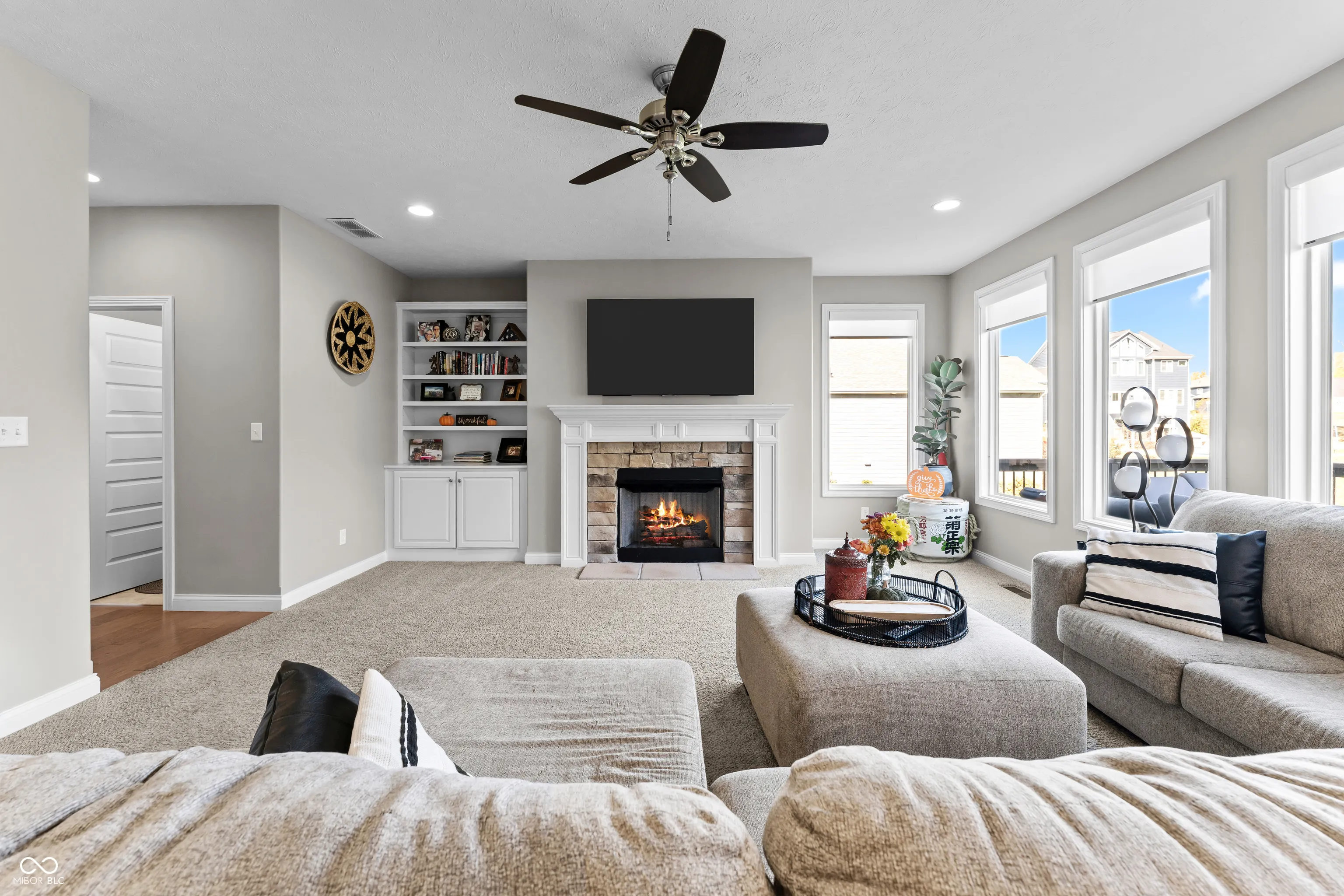 You won’t want to miss this stunning 4-bedroom, 2 full bath, 2 half bath Craftsman-style home designed for comfortable living and effortless entertaining. The spacious great room features a cozy fireplace and flows seamlessly into the kitchen and dining area, which opens to a deck overlooking the backyard. The kitchen includes a large center island with seating, stainless steel appliances, a pantry, and plenty of workspace-perfect for two cooks! The main level boasts 10′ ceilings, a formal dining room, and mudroom. Upstairs, you’ll find a relaxing loft area and a spacious primary suite with tray ceiling, walk-in closet, private office, and luxurious bath with double vanity, soaking tub, and large walk-in shower. Convenient Laundry room upstairs with Bedrooms. The finished walkout basement is ideal for movie nights or game days, complete with a wet bar, half bath, and great storage space. Step outside to continue entertaining on the lower patio. Recent updates: 2023: Finished basement and added half bath 2024: New landscaping in back and side yards Additional highlights include an in-ground sprinkler system and a 3-car garage.