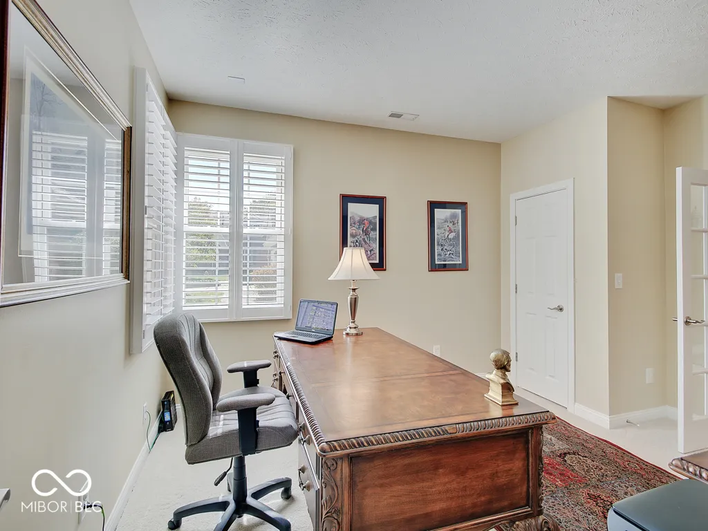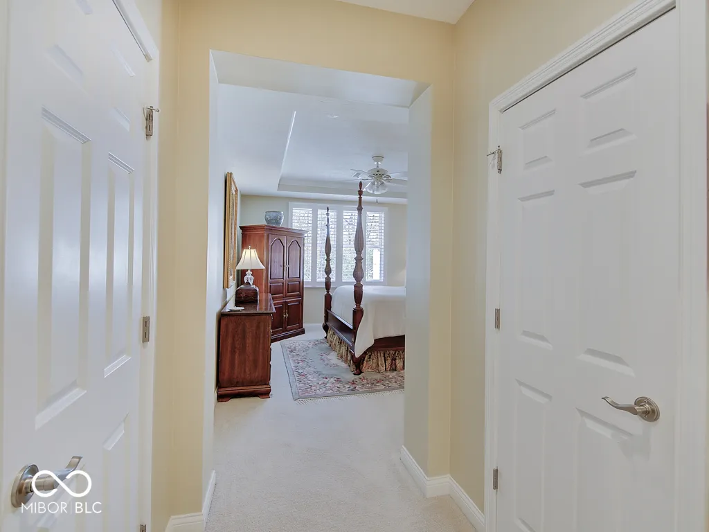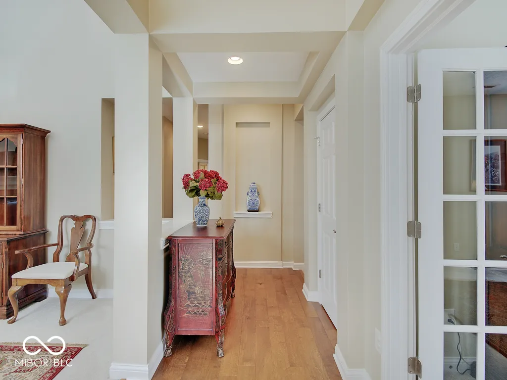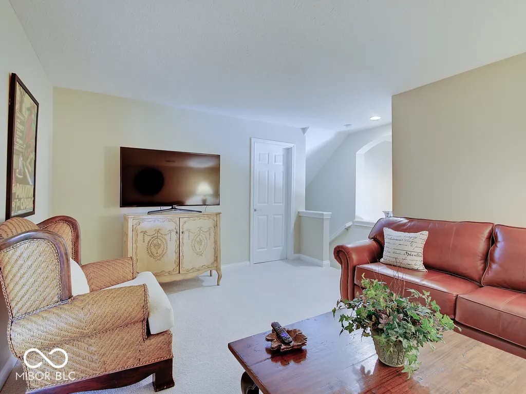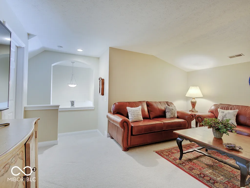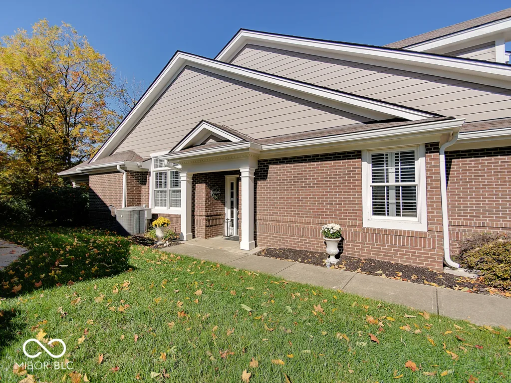 It’s so hard to find nice, low-maintenance condos that don’t require steps to get to the main living areas and primary bedroom. You’ve found it, in a prime location just steps off the Monon Trail! Zero steps to enter this paired upscale condo from the garage or the front door. Hardwood flooring from the two-story entry through the kitchen with granite counters and stainless appliances, all in pristine condition. The soaring vaulted ceiling in the family and living rooms let in tons of natural light and make the living area feel big! The screened porch and covered patio (yes, there are both) have views of the mature trees surrounding the Monon Trail. The primary suite is on the main level, featuring a tray ceiling in the bedroom and a remodeled bathroom with a large, custom tile shower and granite double vanity. A dedicated office with french doors and closet, an additional main level bedroom and laundry room complete the main level. Upstairs you’ll find a loft for additional living space, a third bedroom and full bathroom plus a large, finished storage room! Located close to 116th St and Rangeline Rd for easy access to everything in Carmel. Step out the back door onto the Monon Trail to get your steps in, and it’s exactly half a mile to the Monon Center for every fitness activity! Monon Farms is perfect for the “lock and leave” lifestyle – the HOA mows the grass, removes the snow and is responsible for exterior building maintenance! 100% neutral and 110% spotless, this home is move-in ready!