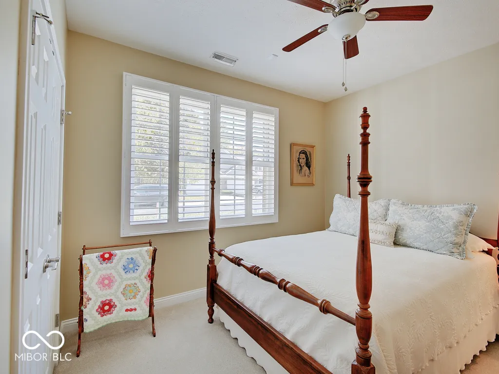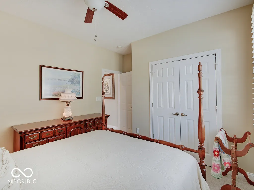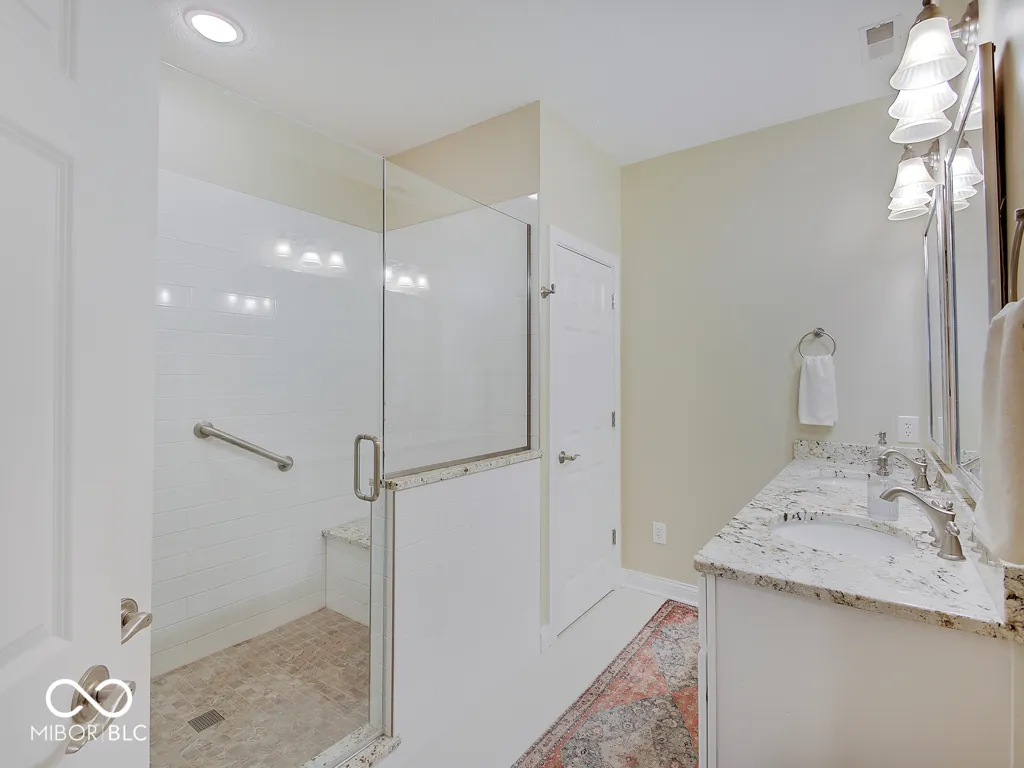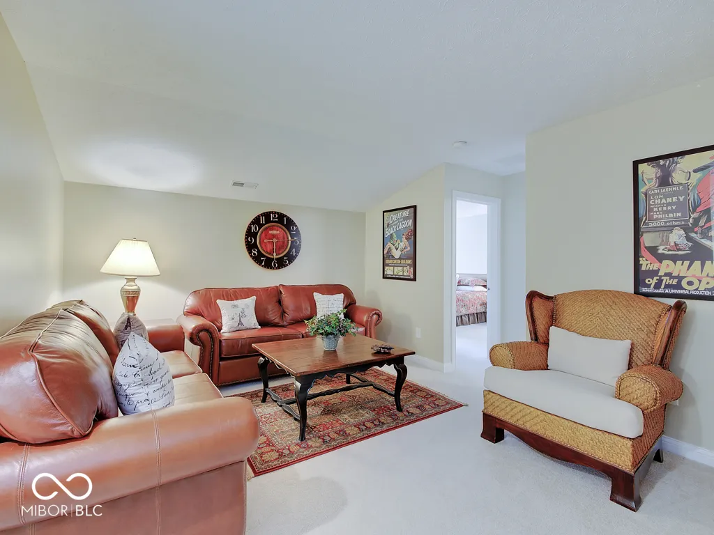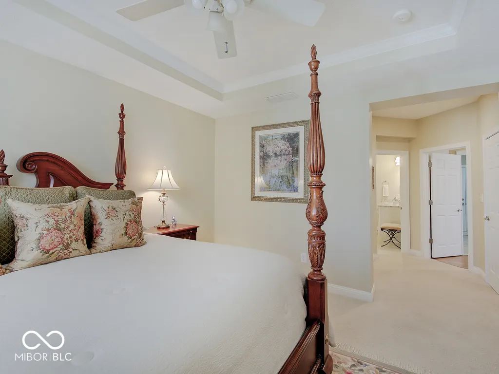 It’s so hard to find nice, low-maintenance condos that don’t require steps to get to the main living areas and primary bedroom. You’ve found it, in a prime location just steps off the Monon Trail! Zero steps to enter this paired upscale condo from the garage or the front door. Hardwood flooring from the two-story entry through the kitchen with granite counters and stainless appliances, all in pristine condition. The soaring vaulted ceiling in the family and living rooms let in tons of natural light and make the living area feel big! The screened porch and covered patio (yes, there are both) have views of the mature trees surrounding the Monon Trail. The primary suite is on the main level, featuring a tray ceiling in the bedroom and a remodeled bathroom with a large, custom tile shower and granite double vanity. A dedicated office with french doors and closet, an additional main level bedroom and laundry room complete the main level. Upstairs you’ll find a loft for additional living space, a third bedroom and full bathroom plus a large, finished storage room! Located close to 116th St and Rangeline Rd for easy access to everything in Carmel. Step out the back door onto the Monon Trail to get your steps in, and it’s exactly half a mile to the Monon Center for every fitness activity! Monon Farms is perfect for the “lock and leave” lifestyle – the HOA mows the grass, removes the snow and is responsible for exterior building maintenance! 100% neutral and 110% spotless, this home is move-in ready!