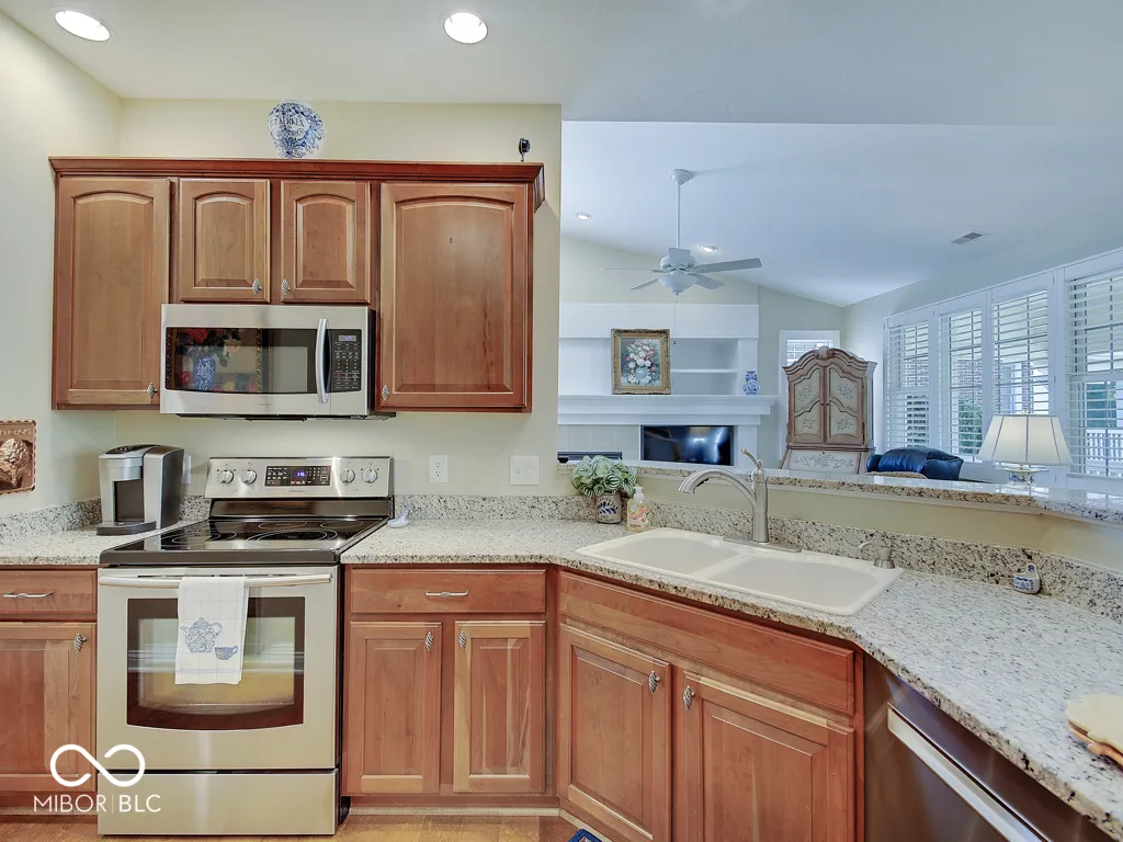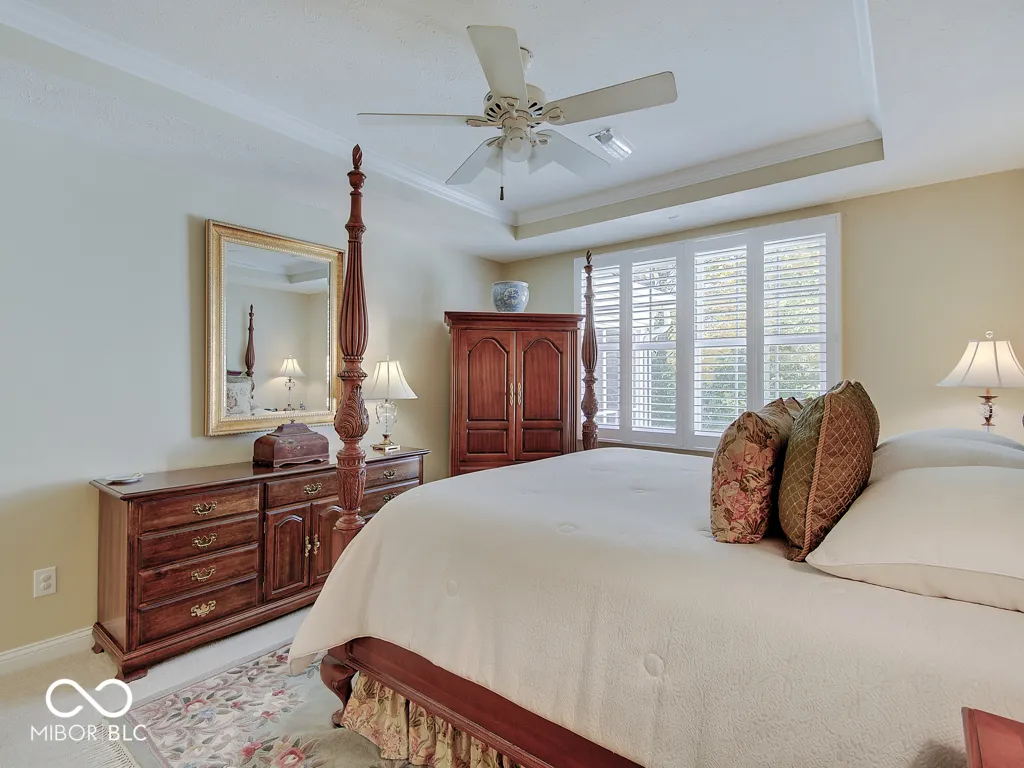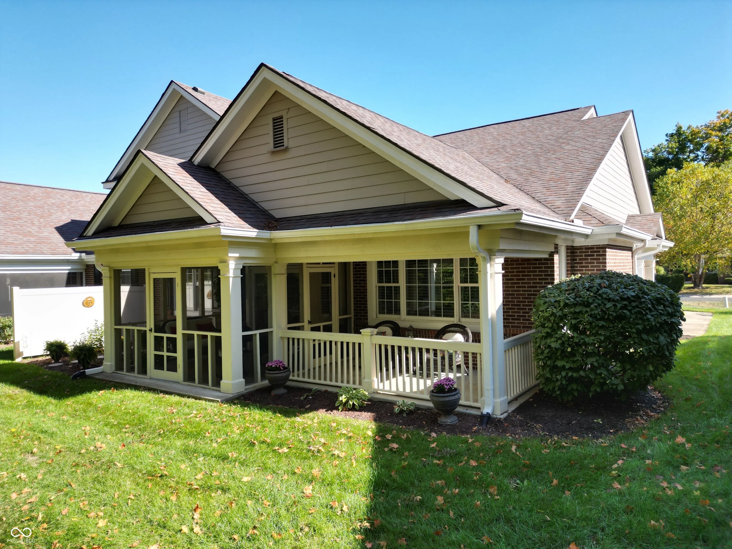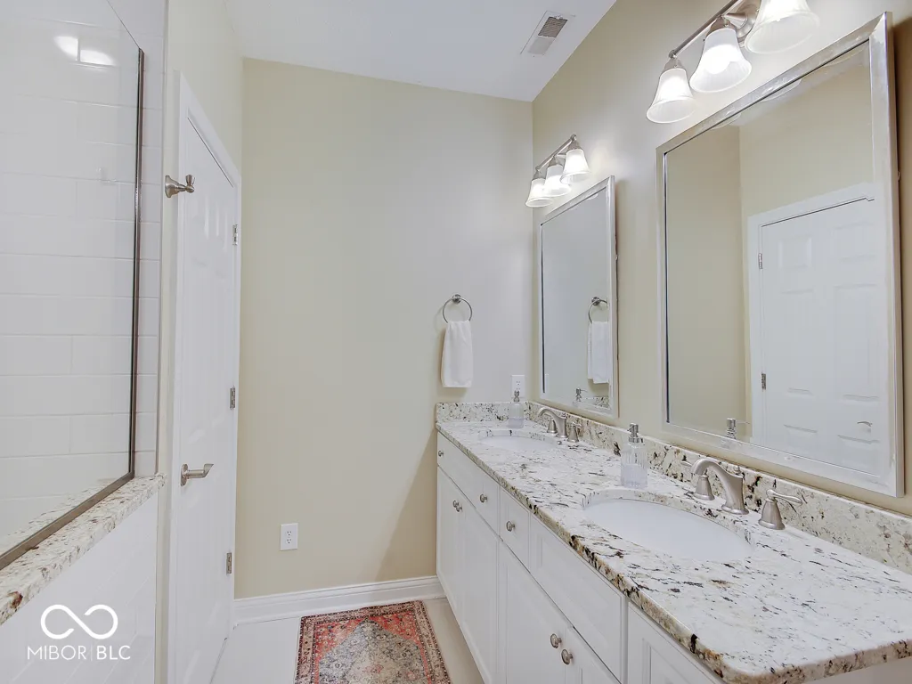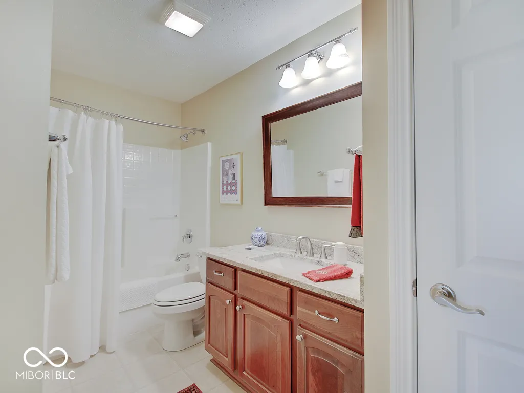 It’s so hard to find nice, low-maintenance condos that don’t require steps to get to the main living areas and primary bedroom. You’ve found it, in a prime location just steps off the Monon Trail! Zero steps to enter this paired upscale condo from the garage or the front door. Hardwood flooring from the two-story entry through the kitchen with granite counters and stainless appliances, all in pristine condition. The soaring vaulted ceiling in the family and living rooms let in tons of natural light and make the living area feel big! The screened porch and covered patio (yes, there are both) have views of the mature trees surrounding the Monon Trail. The primary suite is on the main level, featuring a tray ceiling in the bedroom and a remodeled bathroom with a large, custom tile shower and granite double vanity. A dedicated office with french doors and closet, an additional main level bedroom and laundry room complete the main level. Upstairs you’ll find a loft for additional living space, a third bedroom and full bathroom plus a large, finished storage room! Located close to 116th St and Rangeline Rd for easy access to everything in Carmel. Step out the back door onto the Monon Trail to get your steps in, and it’s exactly half a mile to the Monon Center for every fitness activity! Monon Farms is perfect for the “lock and leave” lifestyle – the HOA mows the grass, removes the snow and is responsible for exterior building maintenance! 100% neutral and 110% spotless, this home is move-in ready!