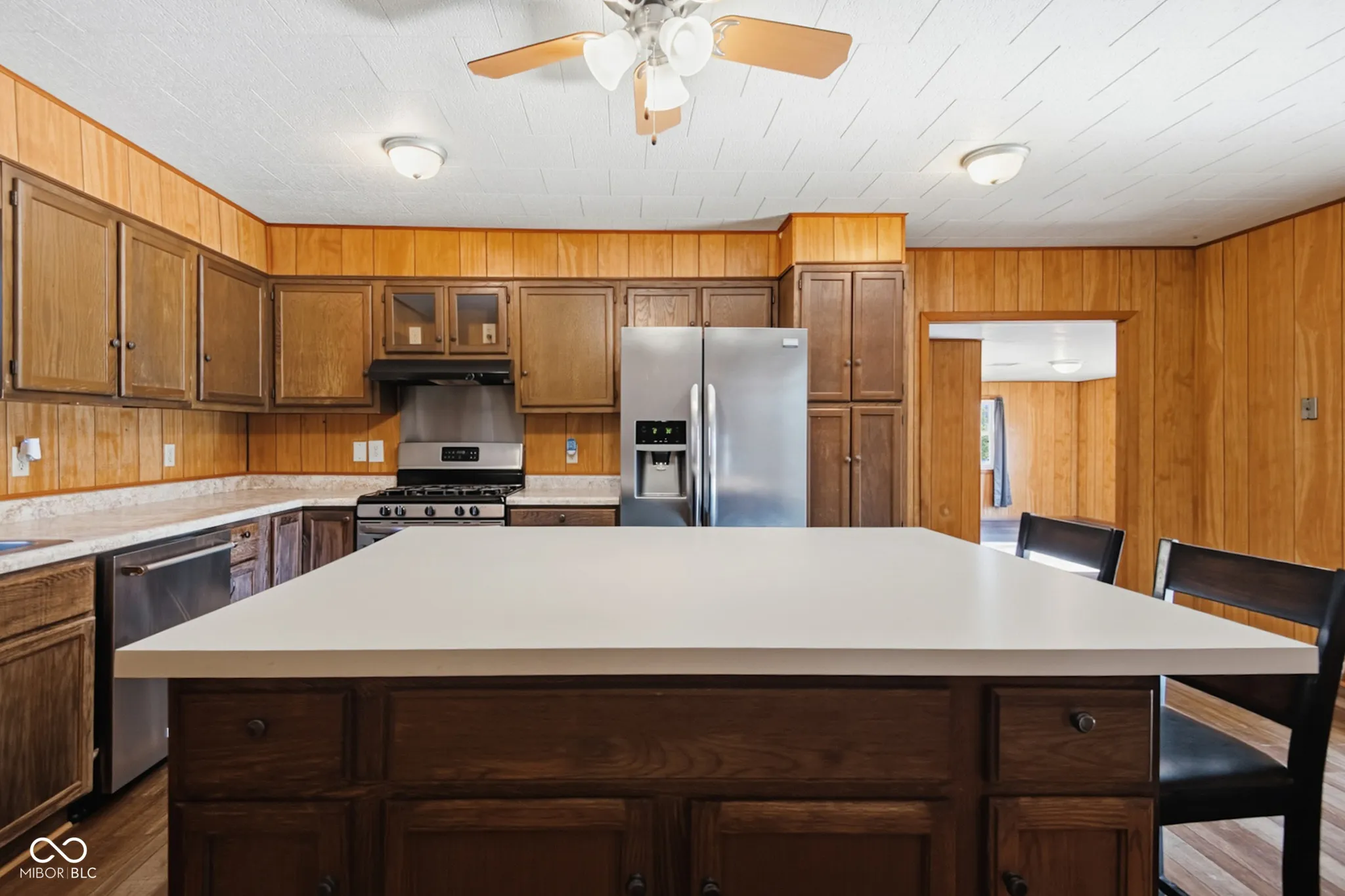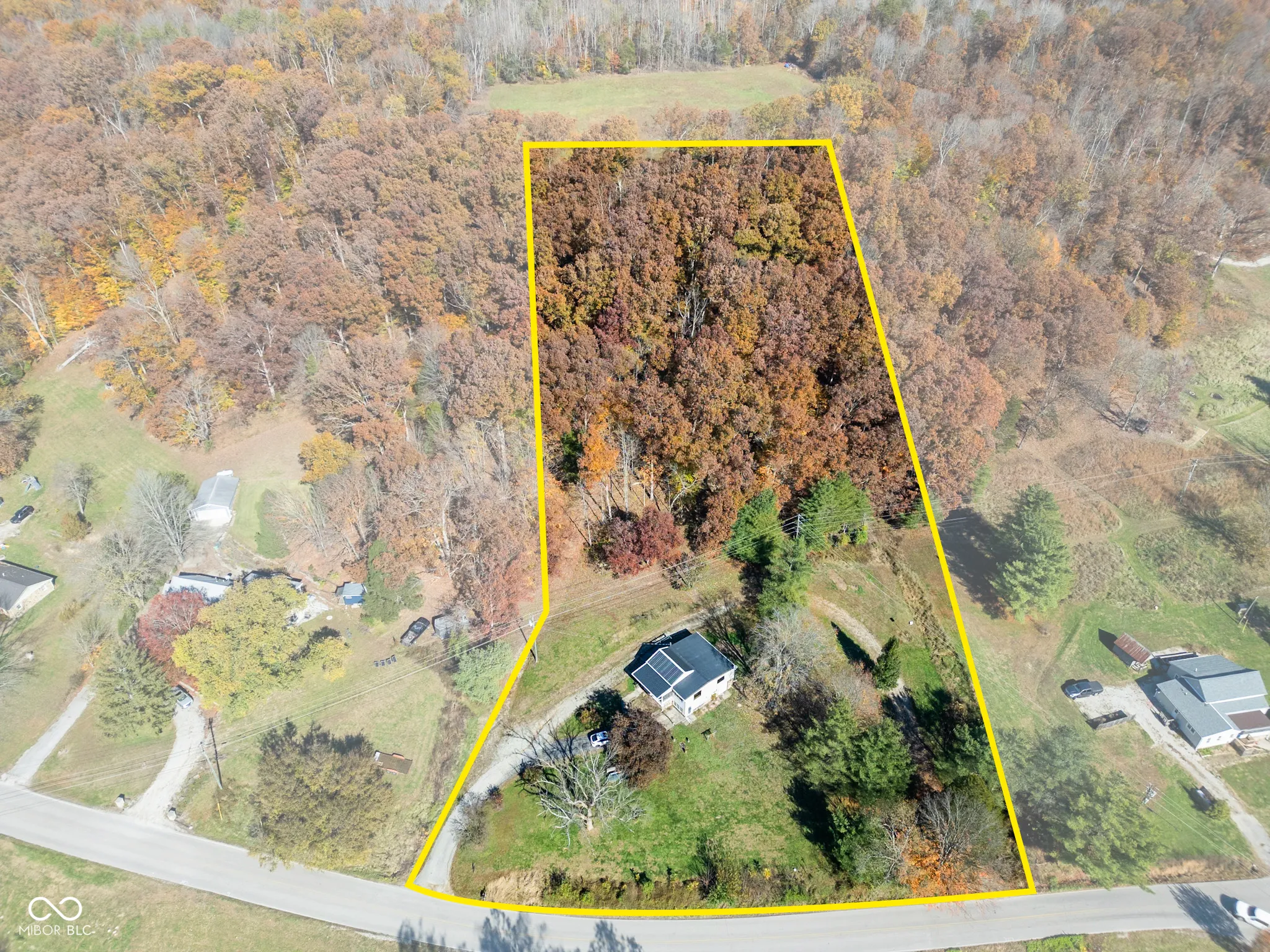 Early 1900s Brown County cabin on 3 acres. In 1968 the little cabin on a hill was added onto and updated, a walkout basement was even added under the front of the addition. The original one-room cabin is now the kitchen of this much larger home! On the east side of the cabin, a 12×13 bedroom and full bathroom have been added; on the front a living room and second bedroom were added with a basement under them. On the west side of the original cabin, there is now a 19×7 enclosed porch with louvered windows. The basement is only partially finished but has space for a bedroom, second living space, and even a small kitchen; the basement laundry and full bathroom are usable but need drywall. Out back, a 10×12 deck and ramp face the garden and woods. In front, the driveway leads to a concrete parking pad, and a circular gravel drive offers even more parking. The gas furnace, central air, and windows were all replaced in the last 5 years; the roof was replaced in 2025. The huge kitchen has a stainless steel gas range and refrigerator plus a big center island. The main-floor laundry is just off the kitchen. This house has new vinyl plank flooring and the upstairs bathroom has been updated with a beautiful custom tile shower. The primary bedroom has a big walk-in closet. The crawl space under the original cabin and the basement addition have both been professionally waterproofed by Acculevel. All kitchen and laundry appliances remain with the home. 200 amp electrical breaker box. Septic was pumped by Snyder’s in 2025. Possession is available at closing. The gravel drive up the hill leads to a flat area that could be a small build site–a soil analysis by Mike Salem passed for a future second septic site. Roughly half of the 3 acres are wooded.