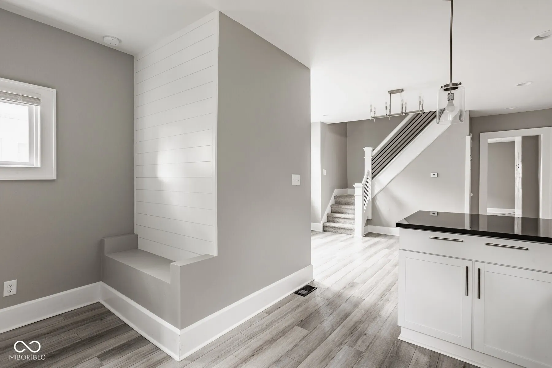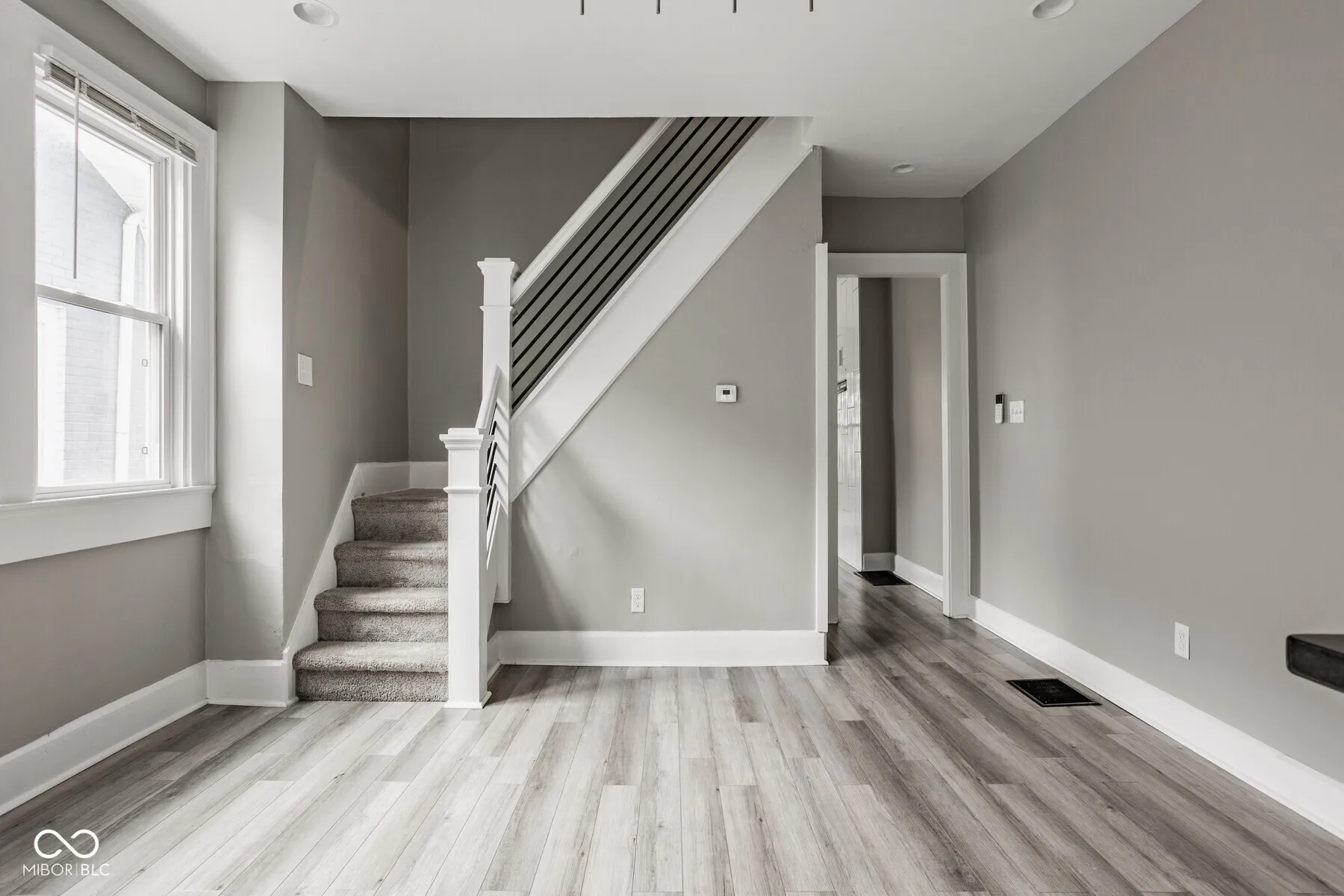 Welcome to this charming and stylish 3-bedroom, 1.5-bath home, where a spacious covered porch greets you and leads into a bright, inviting interior that has been meticulously updated throughout. The main level is a picture of modern elegance with luxury vinyl flooring that seamlessly flows through the space. The bright white kitchen is a chef’s delight, featuring stainless steel appliances, a convenient breakfast bar, and a striking mosaic backsplash. Upstairs, you’ll find three generously sized bedrooms and a full bath with a beautifully tiled shower. This home is perfectly situated just a short distance from all the amenities that downtown Indy has to offer, making it an ideal place for those who enjoy the vibrant city life. Don’t miss the opportunity to make this trendy and thoughtfully updated home your own!