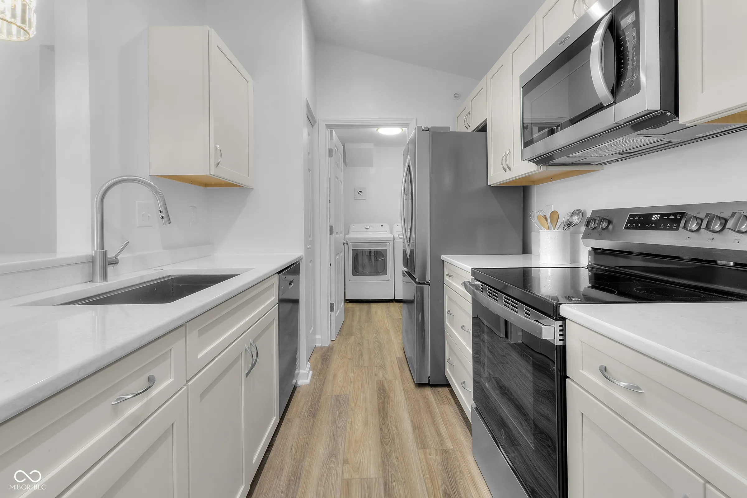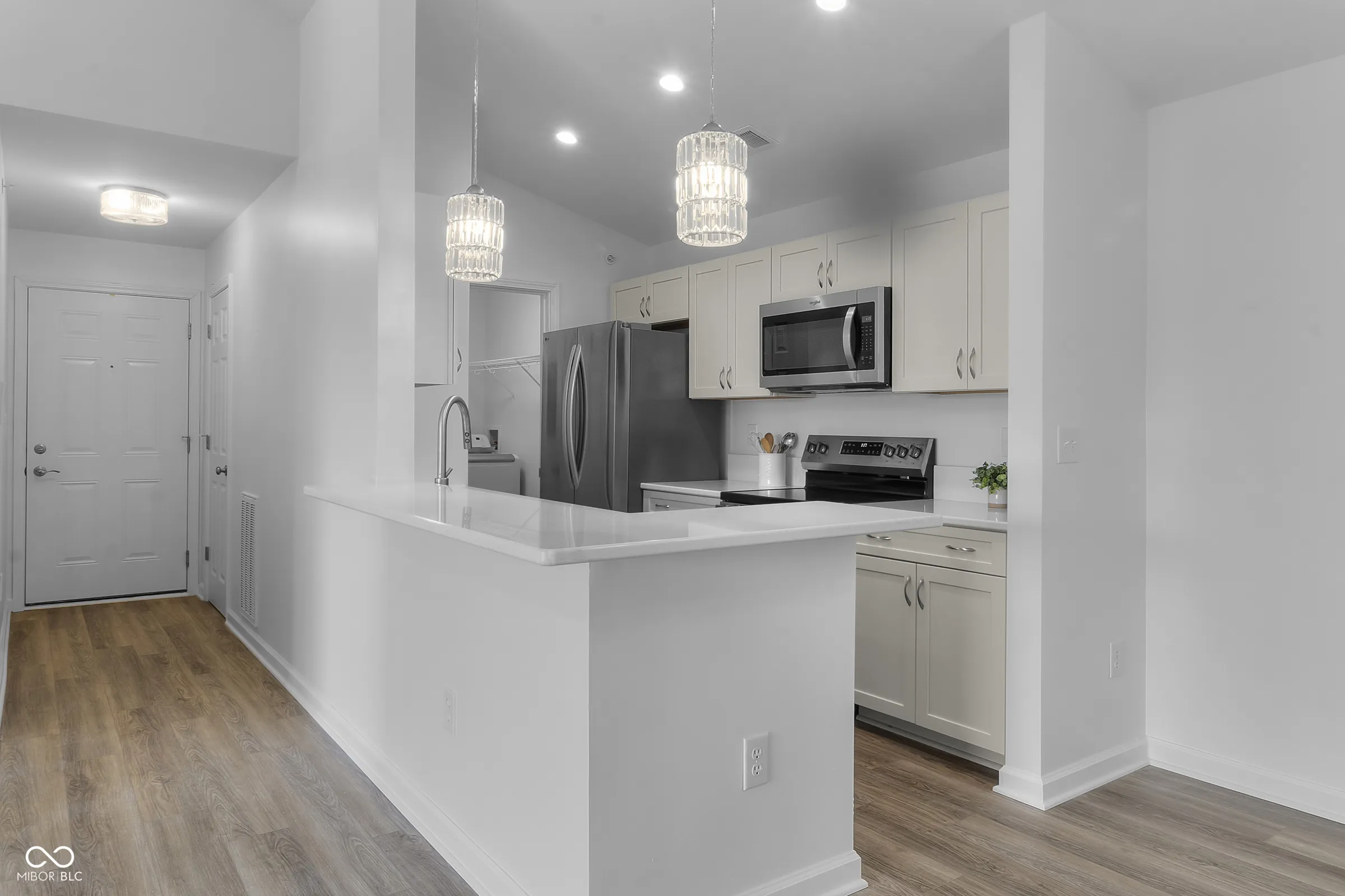The one you have been waiting for! Welcome to your brand-new condominium in the heart of Carmel’s City Center! This beautifully designed 2-bedroom, 2-bath condo offers modern style, comfort, and convenience all in one. Situated on the third level with no one above, this residence boasts vaulted ceilings that create a bright, open, and airy feel throughout. The spacious kitchen features gorgeous quartz countertops, a pantry, and stainless steel appliances – including a washer and dryer. The open-concept living area showcases stylish LVP flooring and a cozy electric fireplace, perfect for relaxing or entertaining. Step out onto your private balcony to enjoy fresh air and a peaceful view. The primary suite is a true retreat, complete with a walk-in closet and a luxurious ensuite bathroom featuring a walk-in shower. A separate laundry room adds everyday convenience, while your private garage provides secure parking and additional storage. There is also a deeded parking spot, #14. Community amenities include clubhouse, pool and tennis. Enjoy maintenance-free living in an unbeatable location – just minutes from Carmel City Center/Midtown/Downtown including top dining, shopping, trails, and entertainment. A must see!