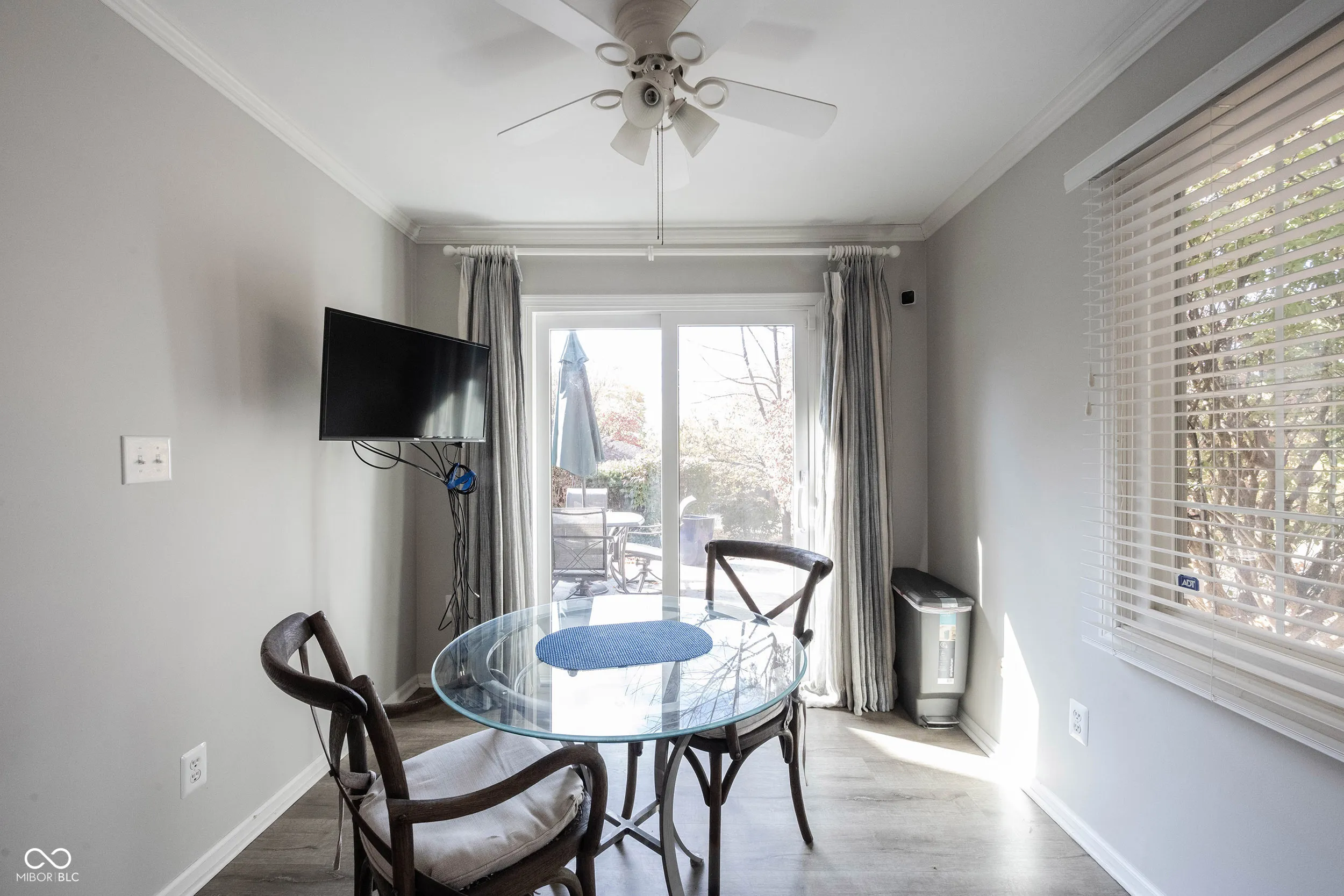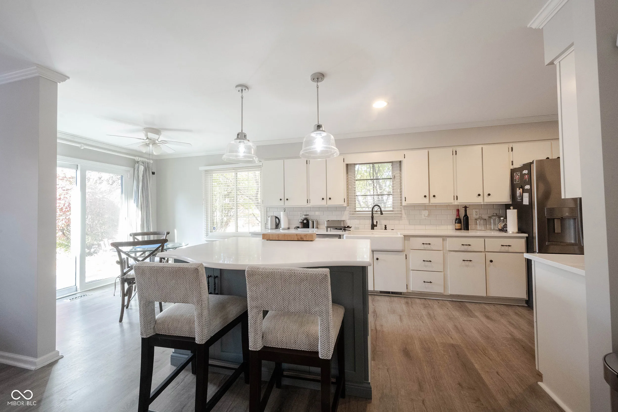 Welcome to Windridge, a serene gated community in NE Indianapolis where this spacious, updated ranch condo delivers over 1,900 sq ft of effortless living. This 2 bed, 2 bath home with a den features luxury vinyl plank flooring in the main living areas and den, plus brand-new carpet in both bedrooms. The light-filled kitchen impresses with quartz countertops, sleek tile backsplash, farmhouse sink, and a large center island that opens to a cozy sitting room-perfect for casual dining or morning coffee. The family room centers around a gas fireplace, framed by plantation shutters and abundant windows. Both bathrooms have been refreshed with stylish tile flooring and shower surrounds. Fresh neutral paint throughout offers a move-in ready feel. Outside, enjoy quiet evenings on the private back patio with exterior tile. Maintenance-free living, mature trees, and gated peace of mind-just minutes from shopping, dining, and major conveniences.