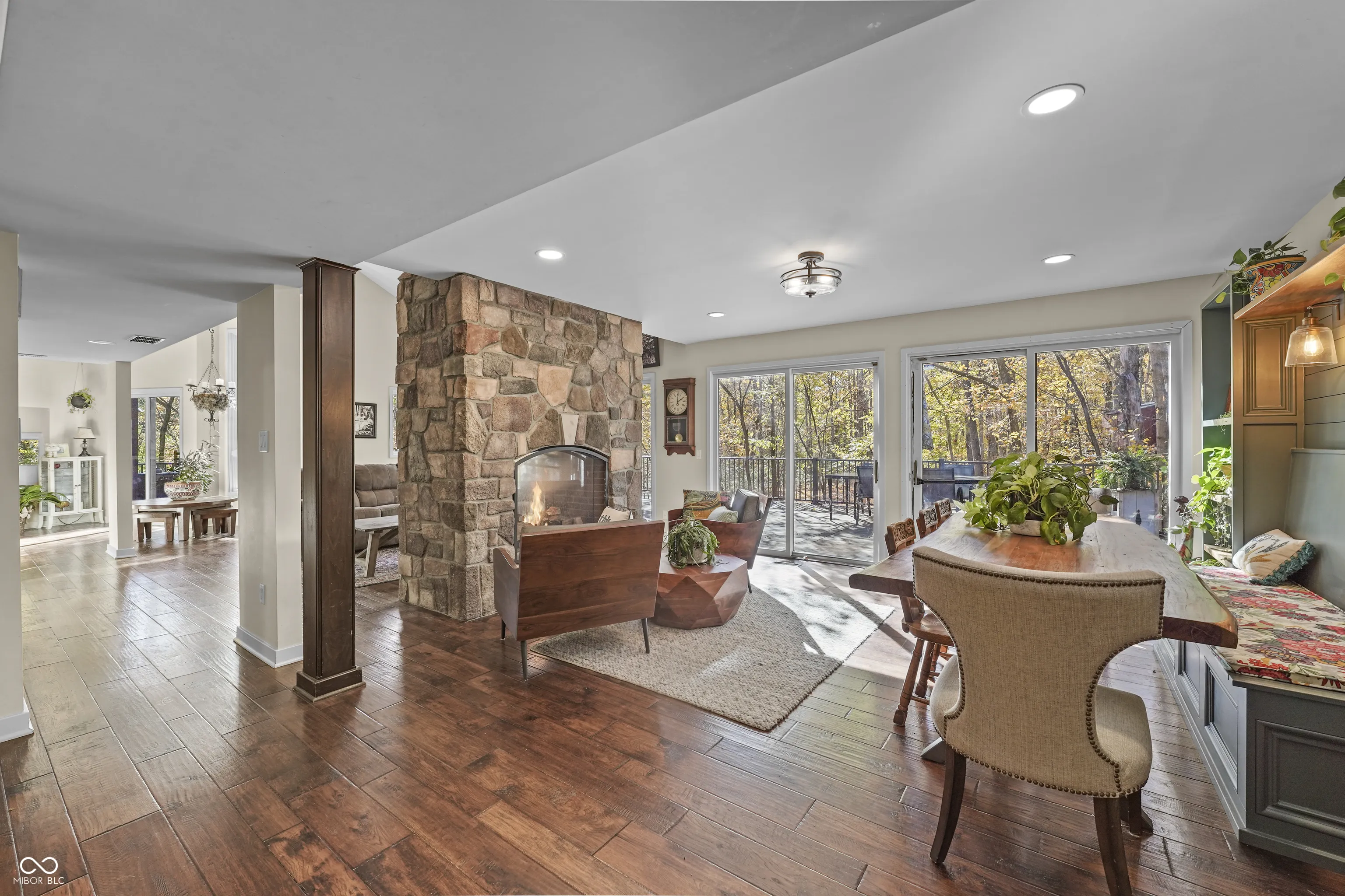 Wooded Paradise Retreat in Exclusive Geist neighborhood w Boat Dock! This 6 bed 3.5 bath custom build sits on 2.5 secluded acres in the highly-coveted Geist community of Forest Knoll. Windows abound throughout the expansive main level allow for breath-taking views of the nature outside. A fully-renovated, double-sided stone fireplace serves as the focal point. Grand remodel in 2014 doubled the living space adding 2 bedrooms, a laundry/mud room w access to the back deck, 23×23 living room, a larger/remodeled kitchen adding granite c’tops, single basin farmhouse sink, butcher block island (Grothouse Lumber), chef grade appliances & custom cabinetry (Sterling Grey – Chicago). The meticulous & thoughtful owner has expertly prepped to sell; recently replacing the entire roof/siding (’25), adding a 53×16 back deck (’22), outdoor pillar lights (’23) tastefully illuminating the driveway perimeter at night, pet fence w large perimeter (’25), water softener (’25), new carpeting in 3 bedrooms & storage room (’25), & large freshly-painted interior. Forest Knoll is one of the most naturally secluded neighborhoods on Geist w 100 heavily-forested acres & only 29 properties! Enjoy private access to Geist w deeded boat slips on the new pier (’25). Enjoy a peaceful walk/golf cart ride in the woods! Forest Knoll boasts over a mile of gravel trails perfect for connecting w nature. There’s a great chance you’ll spot several deer! Forest Knoll waterfront provides an outstanding view of Geist’s fireworks as neighbors join for bonfires & fellowship at the water’s edge. These properties RARELY come to market. Generally, they are spoken for years in advance and you’ll understand why once you tour. This is a once-in-a-lifetime opportunity to buy into the premiere Fishers n’hood along Geist for anyone who values a peaceful existence in a highly-natural & sophisticated setting.