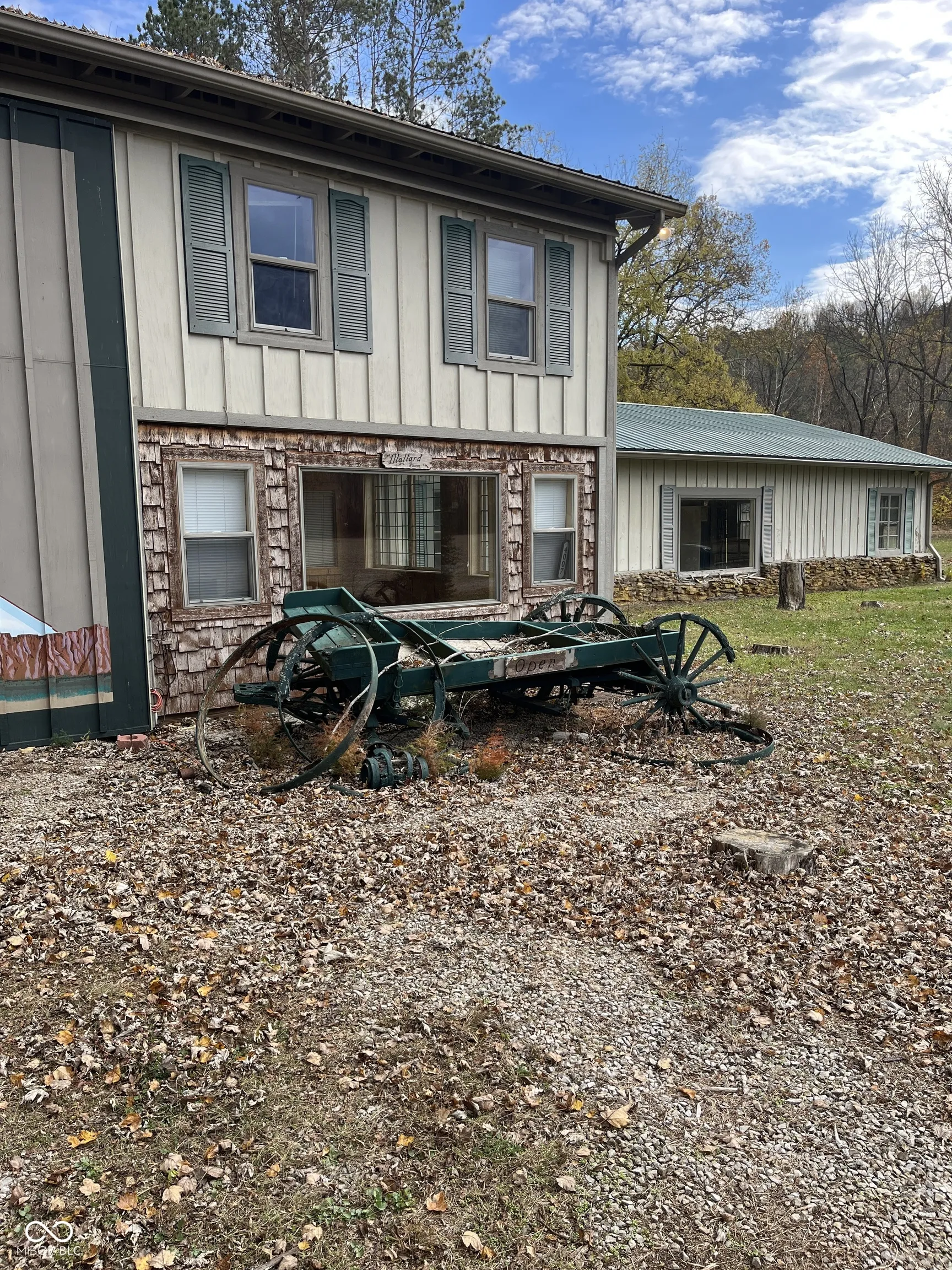 Discover this exceptional property, formerly the residence of the esteemed local artist, John Elmore. This estate sale presents a rare and advantageous opportunity to acquire this home “as-is.” Boasting a thoughtfully designed layout, the property features a comfortable living space with 4 bedrooms, 2 full bathrooms, and 1 half bathroom, complemented by a spacious living room that includes a functional gas fireplace, creating the perfect ambiance for cozy evenings. Whether you relish the charm of indoor gatherings or the vibrancy of outdoor entertaining, this versatile residence effortlessly caters to both preferences, offering unparalleled flexibility. The property’s unique character extends beyond the main house, featuring a detached building that houses a total of 5 garages (approximately 50’X20′) and one expansive approximately+ 14’X40″ RV garage (complete with electric hookup), all surrounding a studio area, which provides an abundance of space suitable for artistic endeavors, relaxation, or hosting memorable events. Step into the backyard, where an inviting entertaining area awaits, complete with an approximately 15’X15′ gazebo, featuring a built-in bar and a captivating large open fire pit with a central chimney. Furthermore, the previous owner thoughtfully incorporated an on-site showroom, meticulously designed to showcase his remarkable artwork, adding another layer of character to this extraordinary property.