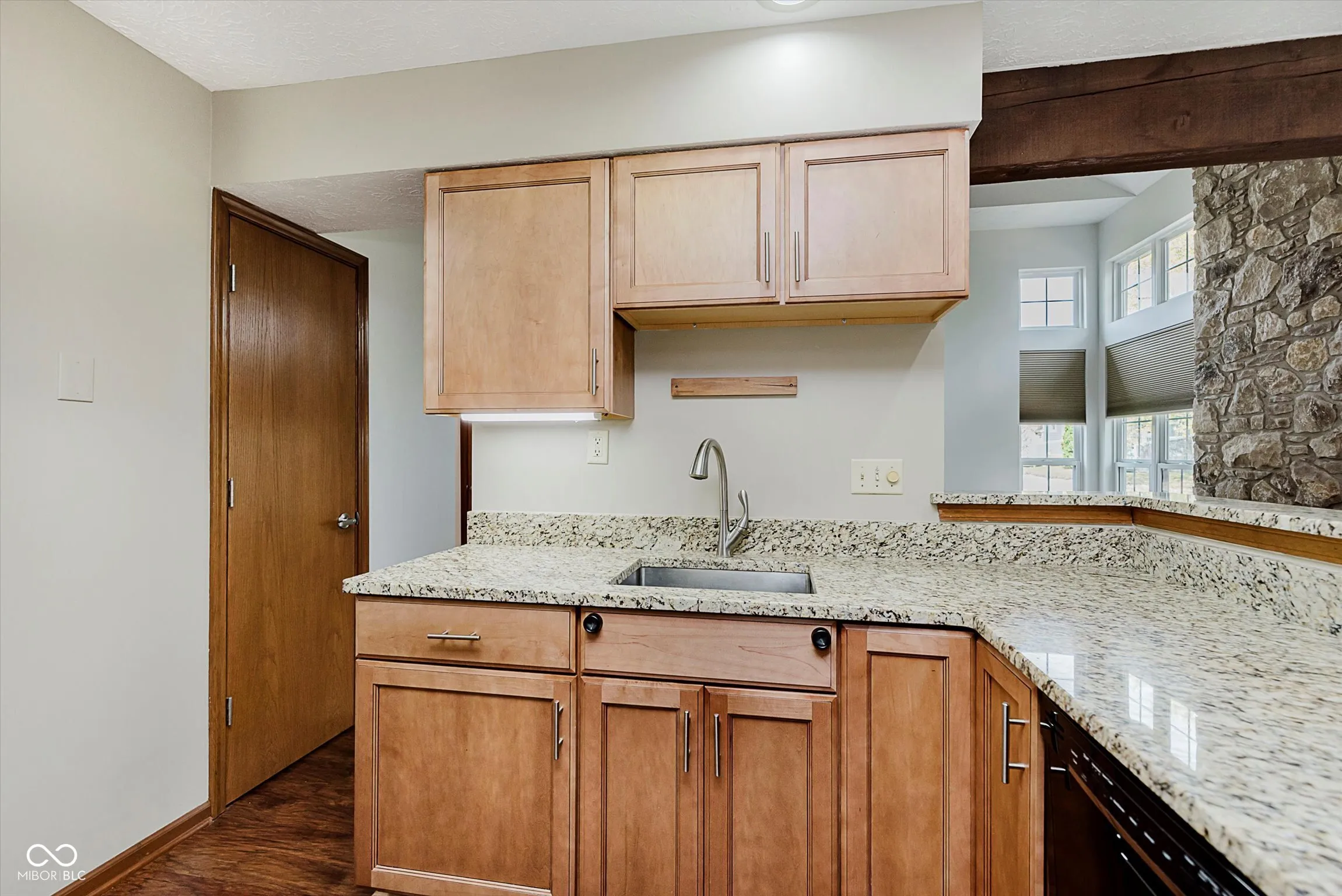 Fall in love with this end unit condo at Cobblestone. This waterfront gem overlooks a serene pond, along with mature trees and lush greens. Featuring two bedrooms, a two story great room, floor to ceiling stone, gas fireplace, open loft and the following updates – Deck, less than five years old, furnace and A/C unit – new in 2025, refrigerator, washer and dryer also new in 2025. Kitchen and bathroom(s) remodeled in 2015. Gutter guards added in 2024. The kitchen remodel boasts stylish cabinets, wood laminate flooring, granite counter tops and trending appliances. Bathroom remodels also include new cabinetry, wood laminate flooring, granite tops and a spacious walk in, ceramic tile shower.