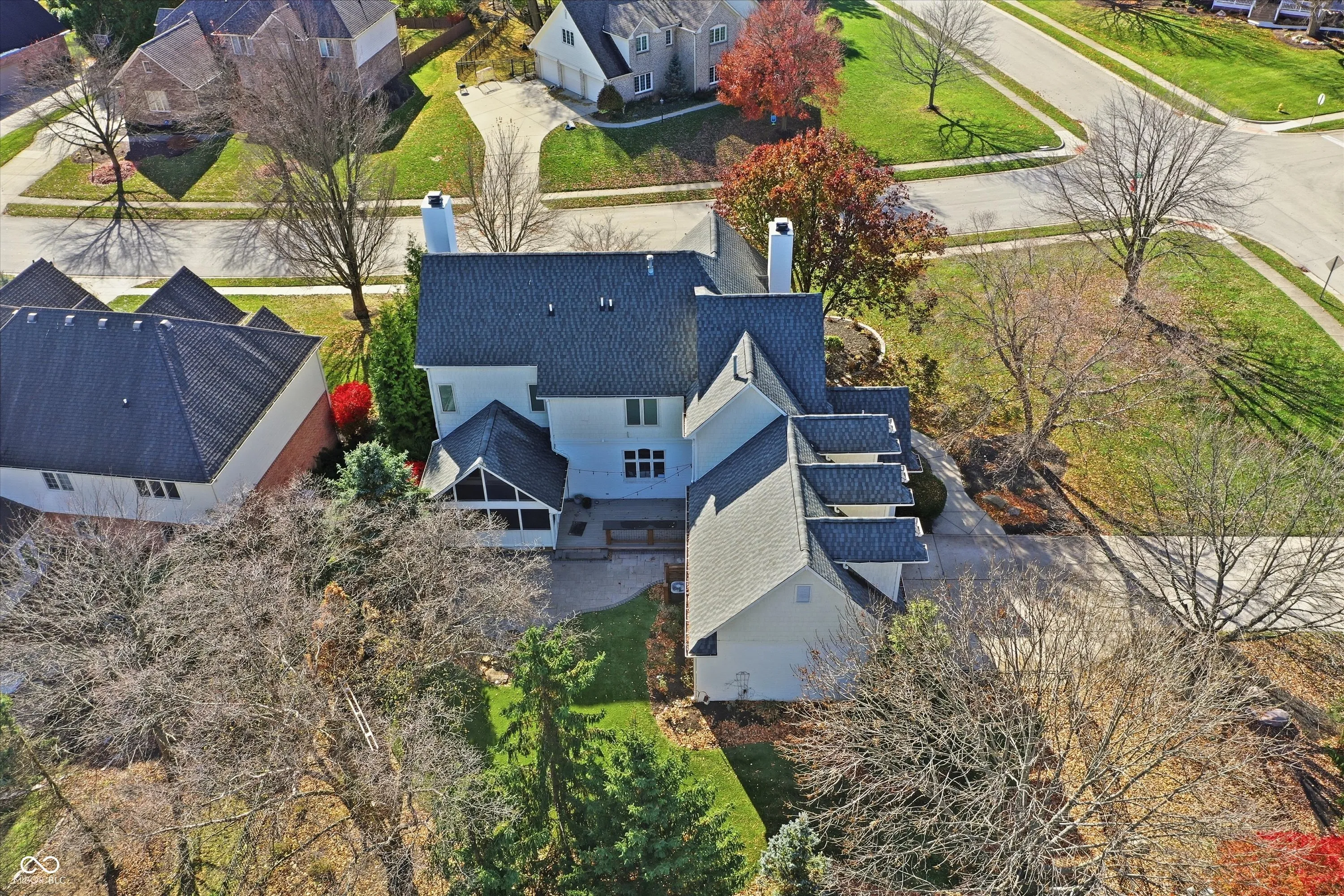 Improved price! Highly sought after Luxury living in Carmel’s Bayhill at Waterstone. Minutes to down town Carmel. This charming Tudor style exterior with front porch and dual entrances gives way to spacious rooms with Elegant and comfortable layout. Your new home is located on a corner with a cul-de-sac beside you. The home delights with two fireplaces and renovated kitchen with gorgeous Quartzite as well. Notice the new built in wall Wine rack… Hardwood floors add warmth to the main level, and new Pet Protect Carpet with a 25 year Warranty upstairs . Don’t miss the formal dining area for entertaining leading out to the sun room. The primary suite awaits upstairs, complete with extra storage and luxury bath. Additional space unfolds in the finished basement. Plenty of storage throughout home. Outside, the fully fenced yard encompasses a screened porch and new Timber Tech decking (2024) paver patio with fire pit (2024), custom outdoor bar seating with luxurious Sueded stone counter. Peaceful private back yard. Fabulous recent updates include a new roof (2020), kitchen cabinets, quartzite, appliances and more (2025). Amazing maintenance free Turfed back yard, new irrigation and so much more. See full list attached. Finished Basement adds sophisticated whimsy. 5 beds, 3 full and 2 half baths, this home has charm, comfort and luxury, making it the perfect home. Neighborhood offers a community pool, club house, tennis courts, & trails. Minutes to shopping and entertainment. Carmel Schools. Immediate possession available! You can be “Home for the Holidays”