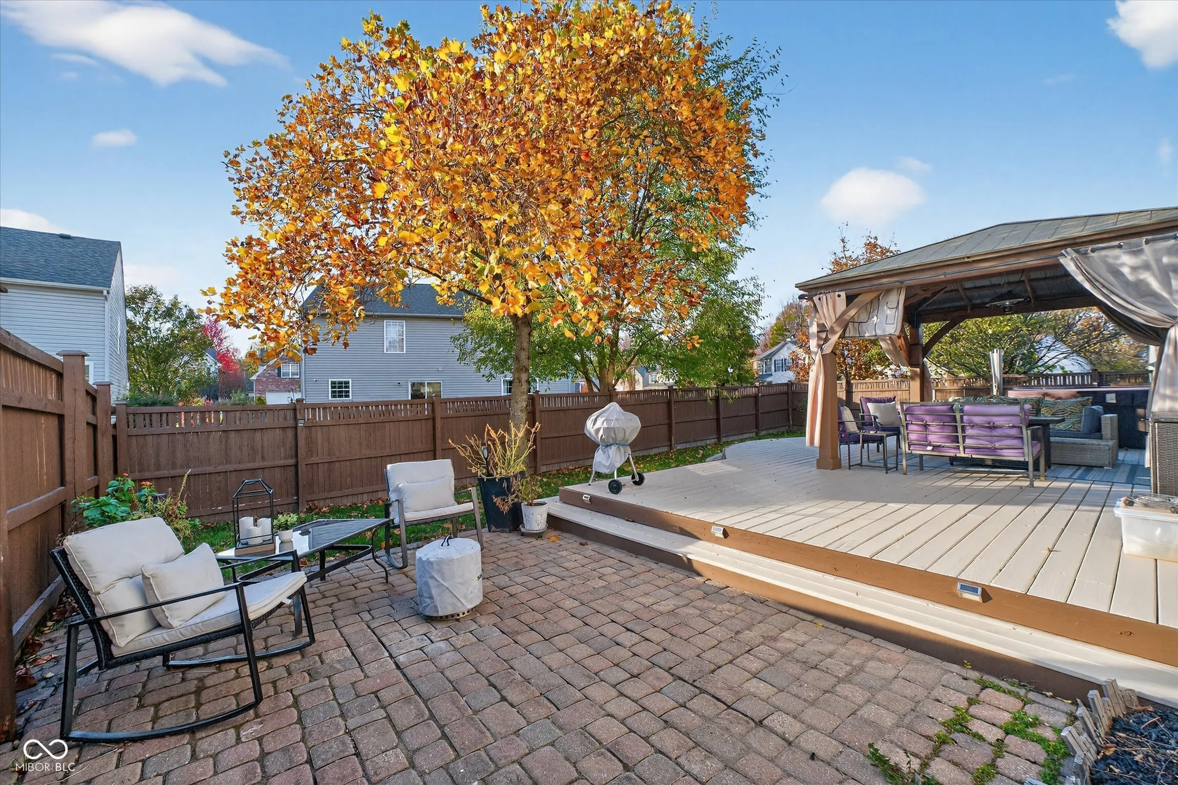 This beautiful 4 BR 2.5 BA home is located in the welcoming Fishers neighborhood of Summerlin Trails. It is a short distance to Hoosier Road Elementary school, the new Fishers Community Center and amenities. This home location is perfect for the convenience of everyday living and the easy gathering of family and friends inside. The open main level flows comfortably from the kitchen to the living spaces, giving you room to cook, connect, and unwind. Laminate hardwood flooring on the main level adds warmth and durability, and the large eat-in Kitchen features a center island with plenty of prep and storage space. A separate Great Room with a gas fireplace and Living Room with custom built-ins offer flexibility for how you live, work and relax. Coming in from the garage, a generously sized bench seat and cubbies, awaits coats, shoes and backpacks and helps everyone to stay organized. Upstairs, the Primary Suite offers a quiet retreat with large dual walk-in closets and a private Bath with both a soaking tub and separate shower. Two additional Bedrooms are well-sized. The third Bedroom is oversized and features a large walk-in closet. The convenient upstairs Laundry Room makes day-to-day routines easier. Outside, your own private relaxation spot awaits. The pergola-covered deck offers shade and charm, and the hot tub is ready for slow mornings, quiet evenings, and everything in between. The brick paver patio area is a great spot for meals, a fire pit and just relaxing in the sun. The backyard space features a full wooden privacy fence that feels private and inviting-an easy favorite place for gatherings or quiet time.