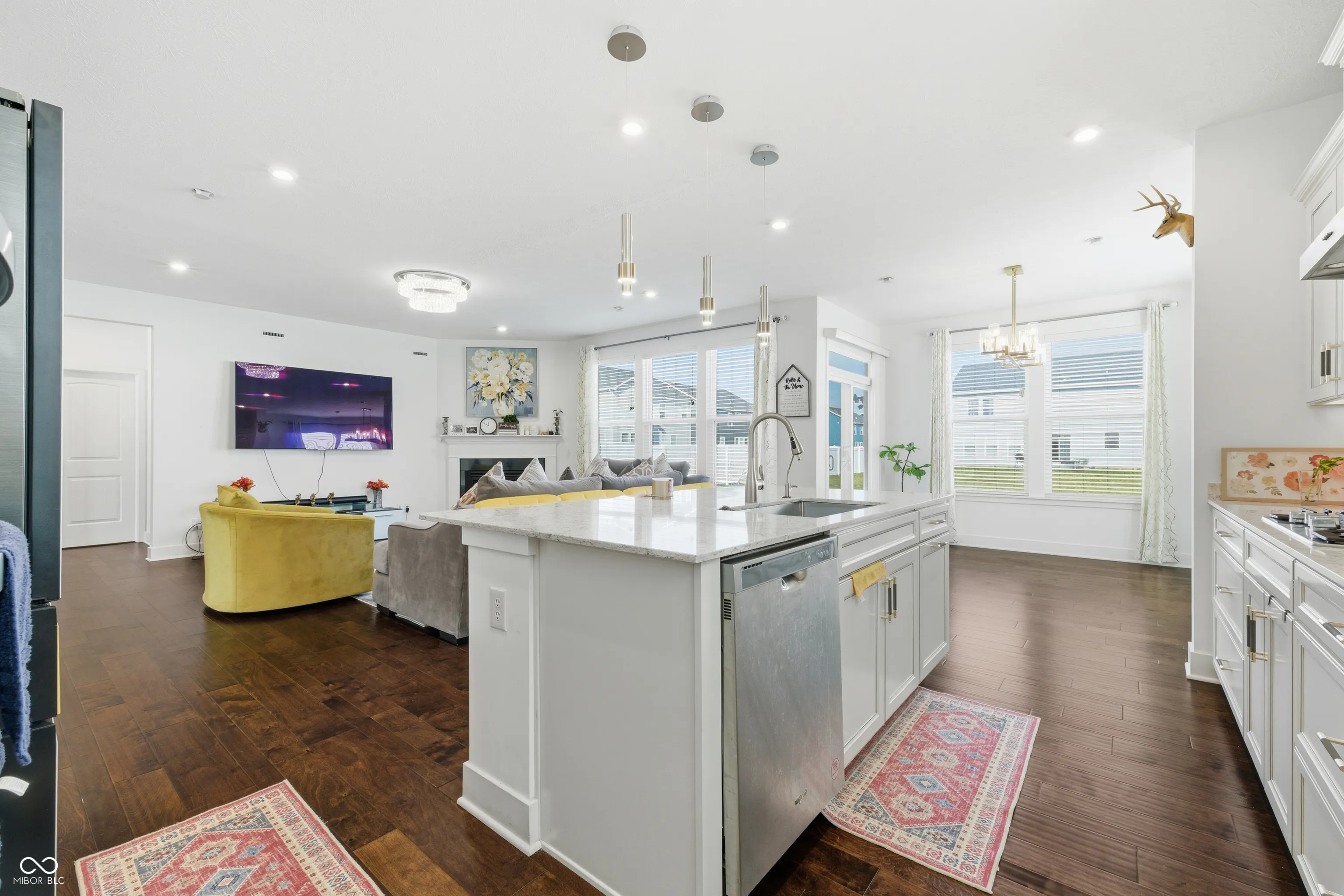 Experience the charm of 8744 Dorill Creek LN, Indianapolis, IN, a residence in great condition nestled in a desirable residential area. This inviting property offers a blend of modern comfort and stylish design. The heart of this home is undoubtedly its kitchen, a culinary dream come true, featuring stone countertops that provide both beauty and durability, alongside shaker cabinets which offer generous storage space; the large kitchen island serves as a focal point for gatherings, while the high-end refrigerator ensures your ingredients are always fresh; the wall chimney range hood and stovetop stand ready to assist with any recipe, while the double oven provides abundant cooking capacity. The backsplash adds a touch of elegance, perfectly complementing the kitchen bar. The living room is designed for relaxation and entertainment, featuring a fireplace that creates a warm and inviting atmosphere. Imagine cozy evenings spent in this comfortable space. Retreat to the primary bedroom, where a tray ceiling adds an architectural detail that elevates the space; the attached bathroom features a tiled walk-in shower and a double vanity, creating a spa-like experience. This single-family residence offers three full bathrooms, a laundry room, and five bedrooms, ensuring everyone has their own space to unwind; the walk-in closet provides generous storage. Step outside onto the patio and enjoy the expansive 9409 square feet lot area, which offers plenty of room for outdoor activities. With 3179 square feet of living area spread across two stories, this home offers an open floor plan that promotes a sense of spaciousness; built in 2021, this property also features an open floor plan. Discover the perfect blend of style and comfort that makes this residence an exceptional find.