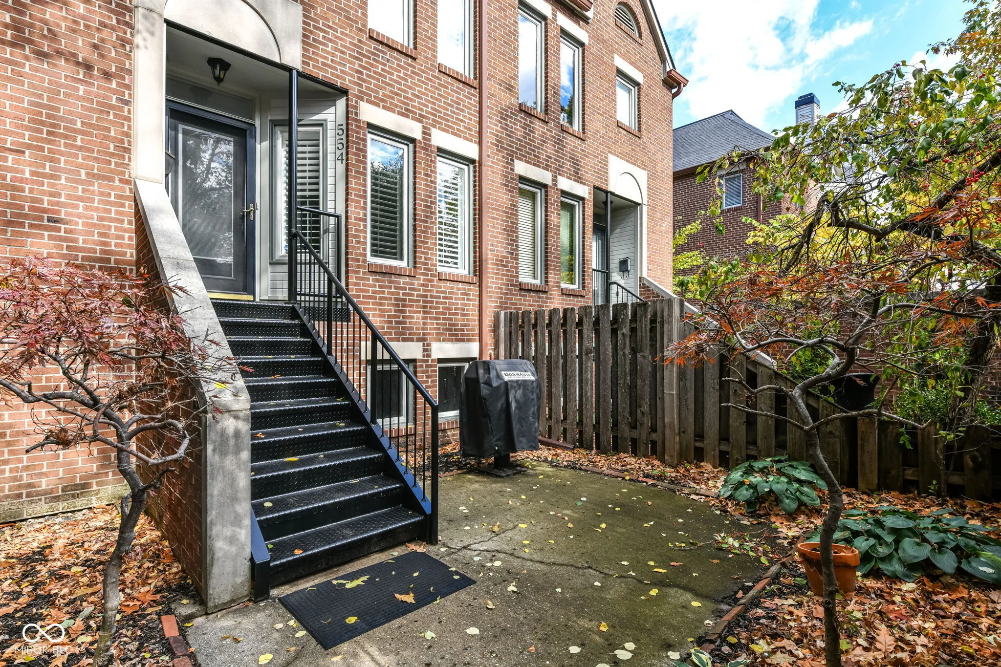 Gorgeous all brick two bed and two and half bath townhome in wonderful historic downtown Lockerbie with private front patio. Located on one of the most majestic urban streets in Indianapolis. Updated kitchen with concrete center island and stainless steel appliances. Hardwood floors and large windows throughout the main level. Custom shelving in closets and plantation shutters throughout. Priced comparatively to a downtown condo building unit, however you have your own private entrance, private secured attached garage, and a large patio for grilling and entertaining. Low HOA fees covers exterior unit maintenance and gorgeous neighborhood landscaping and grounds.