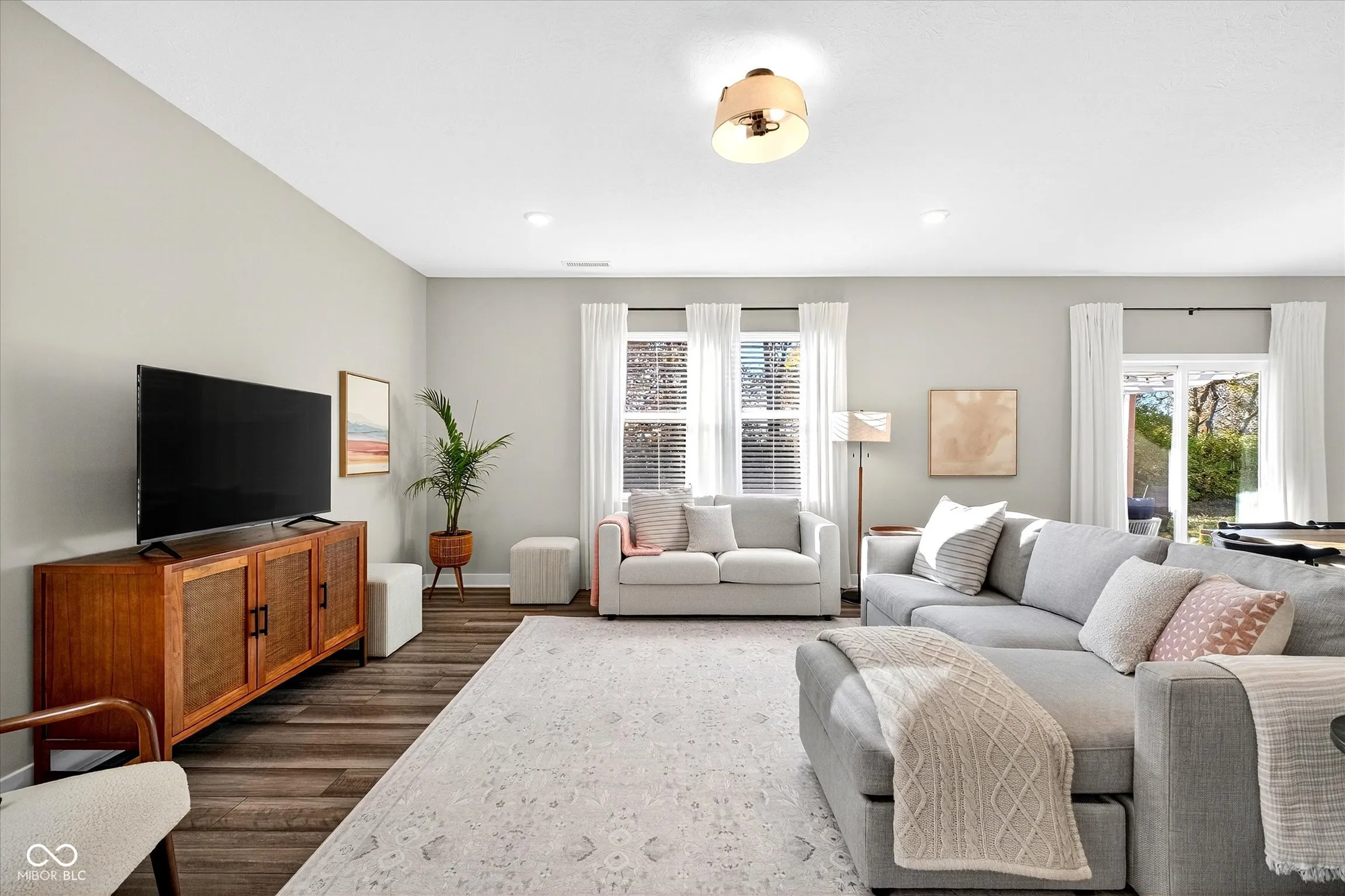 Welcome to this beautifully maintained 5-bedroom, 3.5-bath home offering thoughtful design, modern upgrades, and a layout ideal for both everyday living and entertaining. Off the foyer, you’ll find a private main-level guest suite complete with a full bath and walk in closet, as well as a dedicated study with French doors-perfect for working from home. The heart of the home features an expansive open-concept Great Room, dining area, and kitchen, enhanced by recessed lighting and plenty of natural light. The kitchen impresses with quartz countertops, large island/breakfast bar, stainless steel appliances including a gas range/oven, walk-in pantry and flows seamlessly to the living area and outdoor space. Upstairs, you’ll find four spacious bedrooms, all with walk-in closets, plus a versatile loft that serves as a second family or recreation area. The Primary Suite offers a peaceful retreat with a beautiful treelined view, lux tiled shower, dual vanities, and a massive walk-in closet. The laundry room is conveniently located upstairs and includes washer and dryer (new in 2023), built-in shelving, and easy access to all bedrooms. Enjoy outdoor living with a pergola featuring a retractable shade, a tree-lined backyard with no neighbors behind, and neighborhood walking paths that pass three scenic ponds and two playgrounds. Additional highlights include a mudroom and hall closet, 3-car garage, fresh interior paint (2025), new faux wood blinds (2024), new water softener (2023), and custom mirror frames in bathrooms. This home feels like new-immaculately maintained and move-in ready. Conveniently located with quick access to I-70 for an easy commute to downtown, it’s the perfect blend of comfort, style, and practicality.