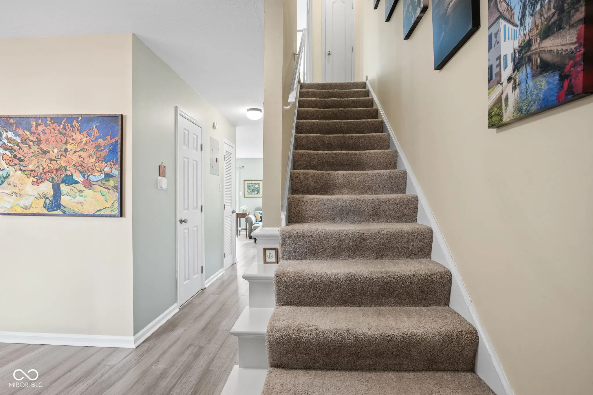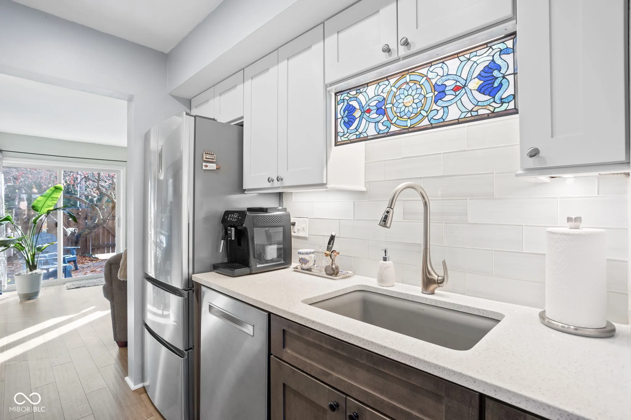 Step into the dream of affordable, low-maintenance living in this beautifully updated, move-in ready condo that perfectly blends modern comfort with timeless style. You’ll feel right at home with thoughtful upgrades, amenities, and lawn care. Enjoy luxury vinyl plank and porcelain tile flooring, sparkling white quartz countertops, Shaker-style kitchen cabinets with built-in trash drawer, soft-close drawers, under-cabinet lighting, quality appliances, and an Insinkerator Advanced garbage disposal. The bathrooms feature new storage-rich vanities, a glazed ceramic subway-tile shower with niche, Moen fixtures, American Standard toilets, and a whisper-quiet fan. Both bedrooms offer two closets each, charming deep window sills that invite natural light, and a primary bedroom equipped with blackout cellular shades. Take in the sunrise on your private patio surrounded by dappled shade, a flowering tree, and perennials. Additional conveniences include main floor laundry (washer and dryer included), abundant storage, assigned storage unit on-site, and water & sewer included in monthly HOA fee. Smart-home features include a thermostat, Yale touchscreen lock, Ring doorbells, and interconnected smoke and carbon monoxide detectors. The neighborhood pool and a wide variety of shopping, dining, fitness, and leisure options are just moments away. Recent updates by the HOA include a new roof (2023) and new recirculating water lines (2024). Recent seller improvements are detailed on the features and updates sheet. Enjoy unbeatable convenience near Greenbriar Plaza directly across the street, North Willow Plaza, St. Vincent Heart Center, and IU Health North Hospital (1.5 miles), with College Park Plaza (2.2 miles), Meridian North and Nora shopping (2.5 miles), Iron Works and The Fashion Mall (4 miles), West Carmel Shoppes (4.5 miles), and Holliday and Daubenspeck Nature Parks (1-4 miles) all within easy reach.