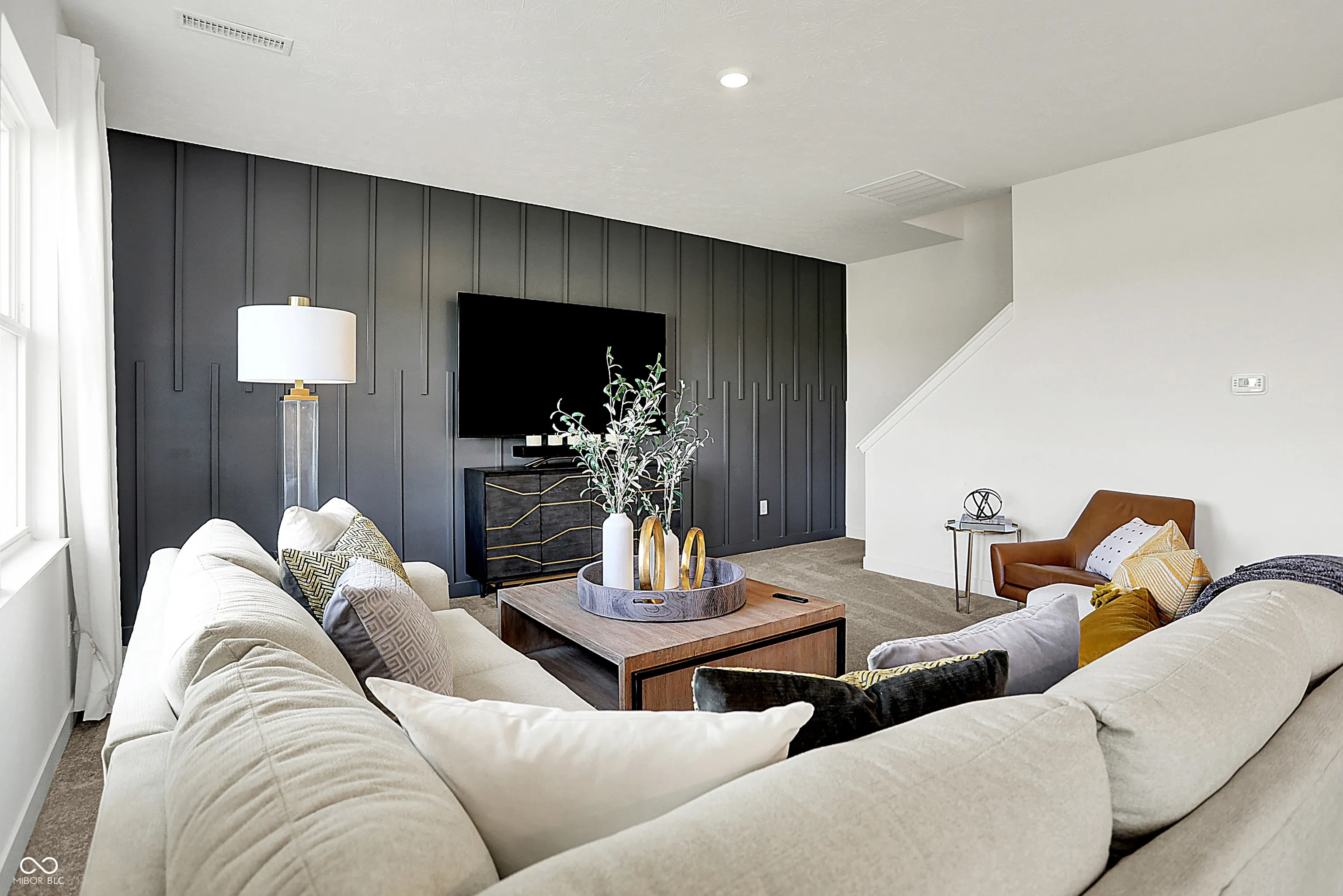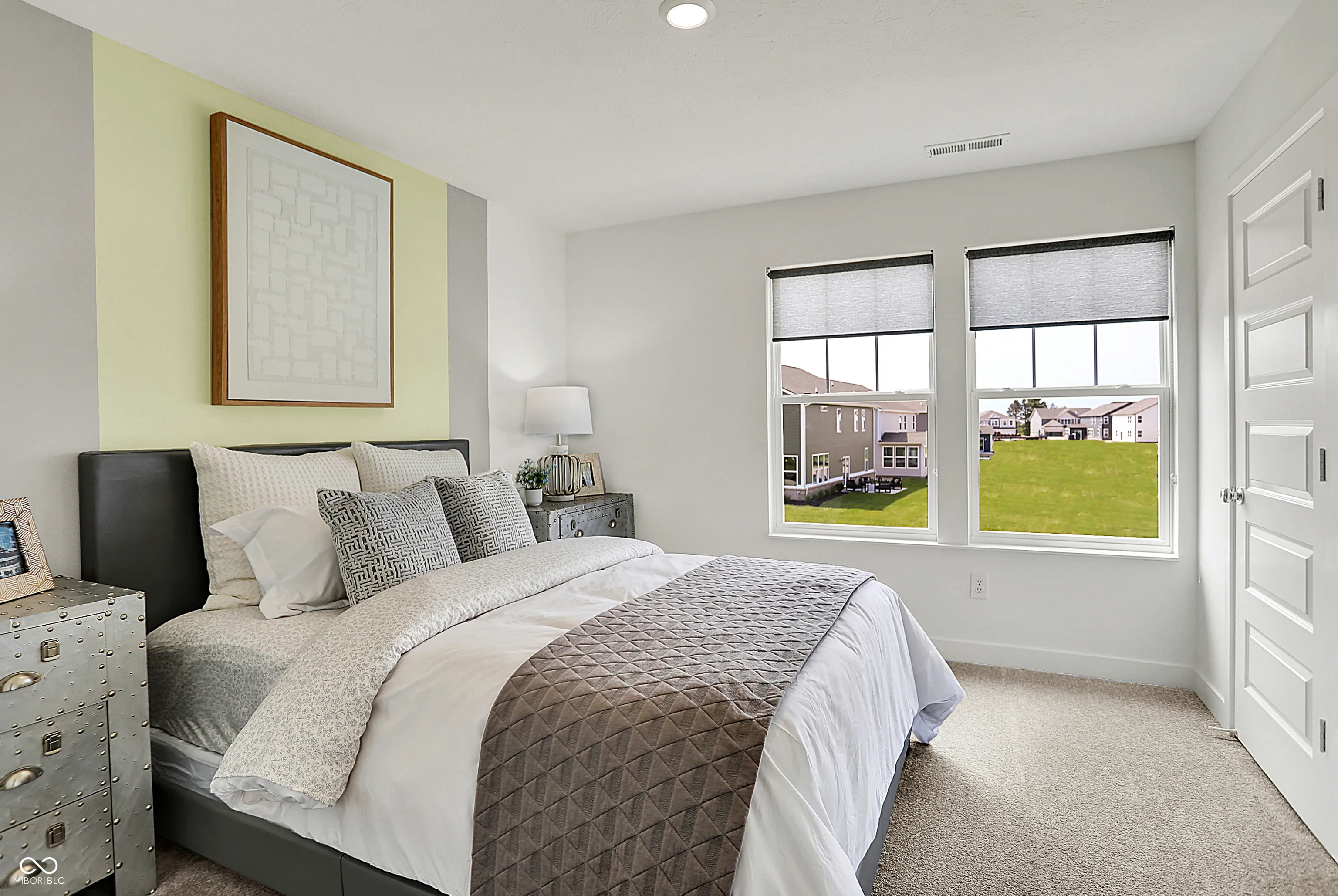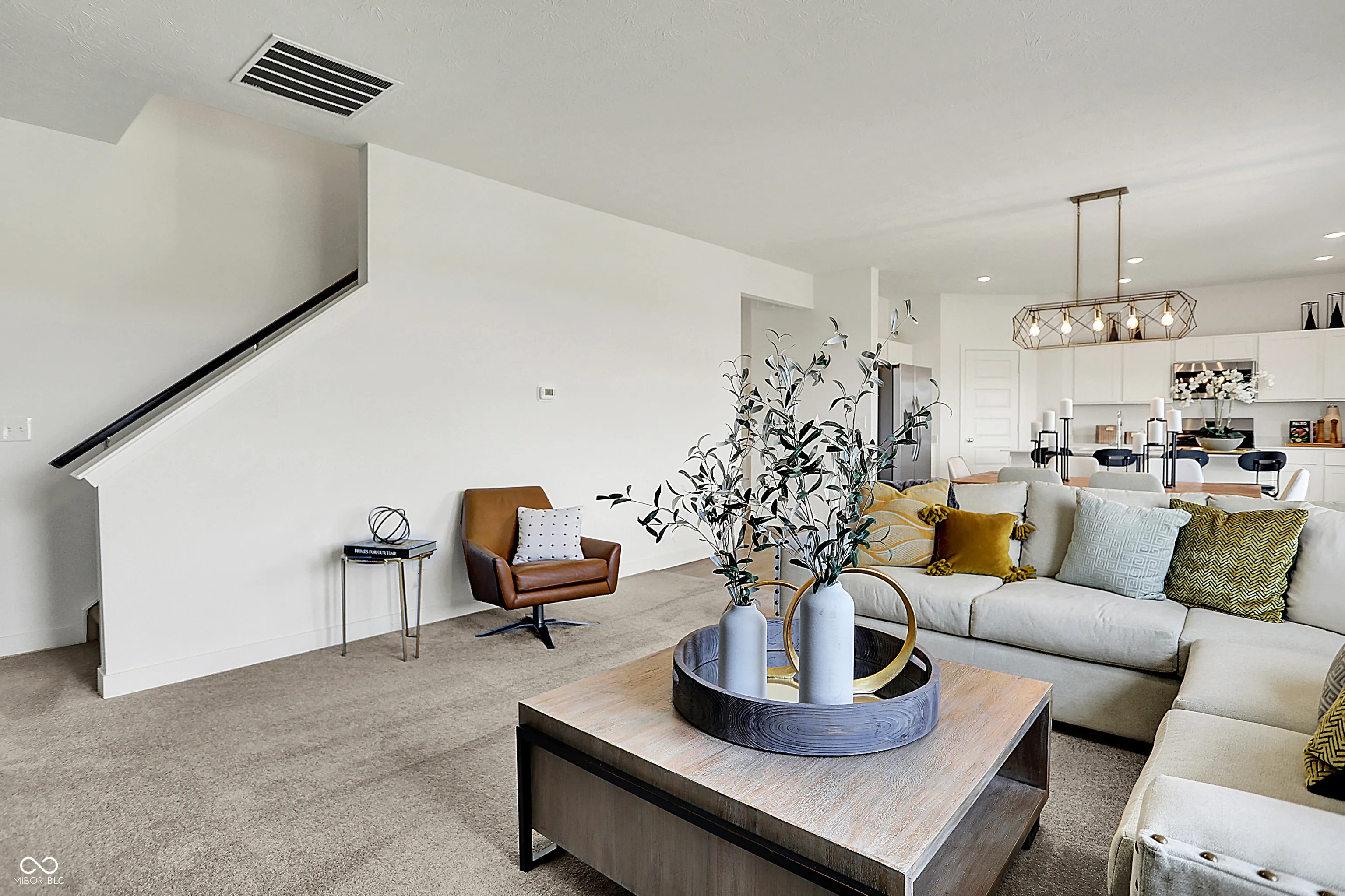Carriage Duplex is a series of new paired homes for sale at Grand Vista, a master-planned community coming soon to Greenwood, IN. Residents will have access to stunning amenities including a relaxing swimming pool, pool house and playground set. The community offers proximity to Old City Park for outdoor recreation and high-end shopping and dining options at nearby Greenwood Park Mall. The first floor of this two-story home shares an open layout between the kitchen, dining area and Great Room for easy entertaining, along with a secondary bedroom and full-sized bathroom, perfect for overnight guests. Upstairs is a luxe owner’s suite with an en-suite bathroom and a spacious walk-in closet, three additional secondary bedrooms and a versatile loft that serves as second-floor shared living space. *Photos/Tour of model may show features not selected in home.