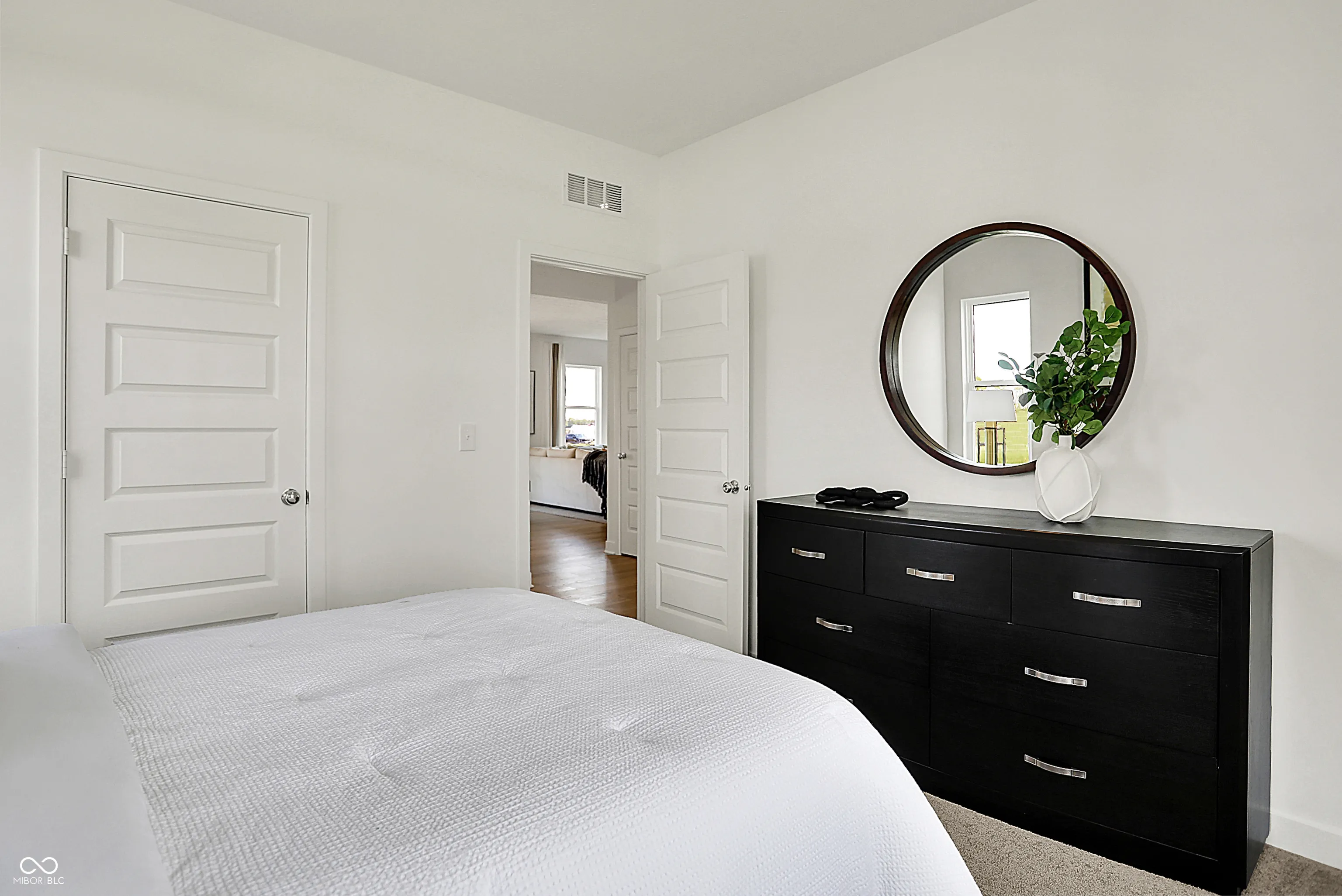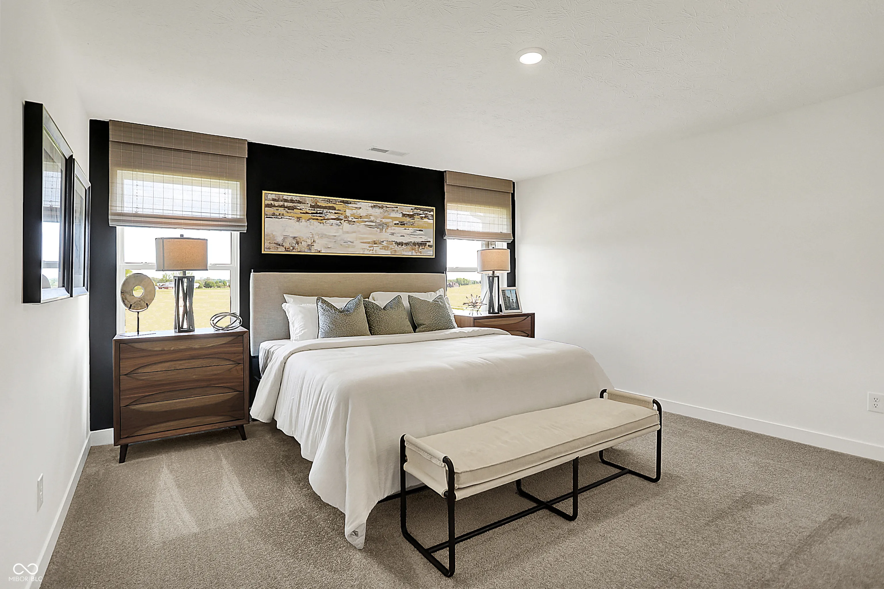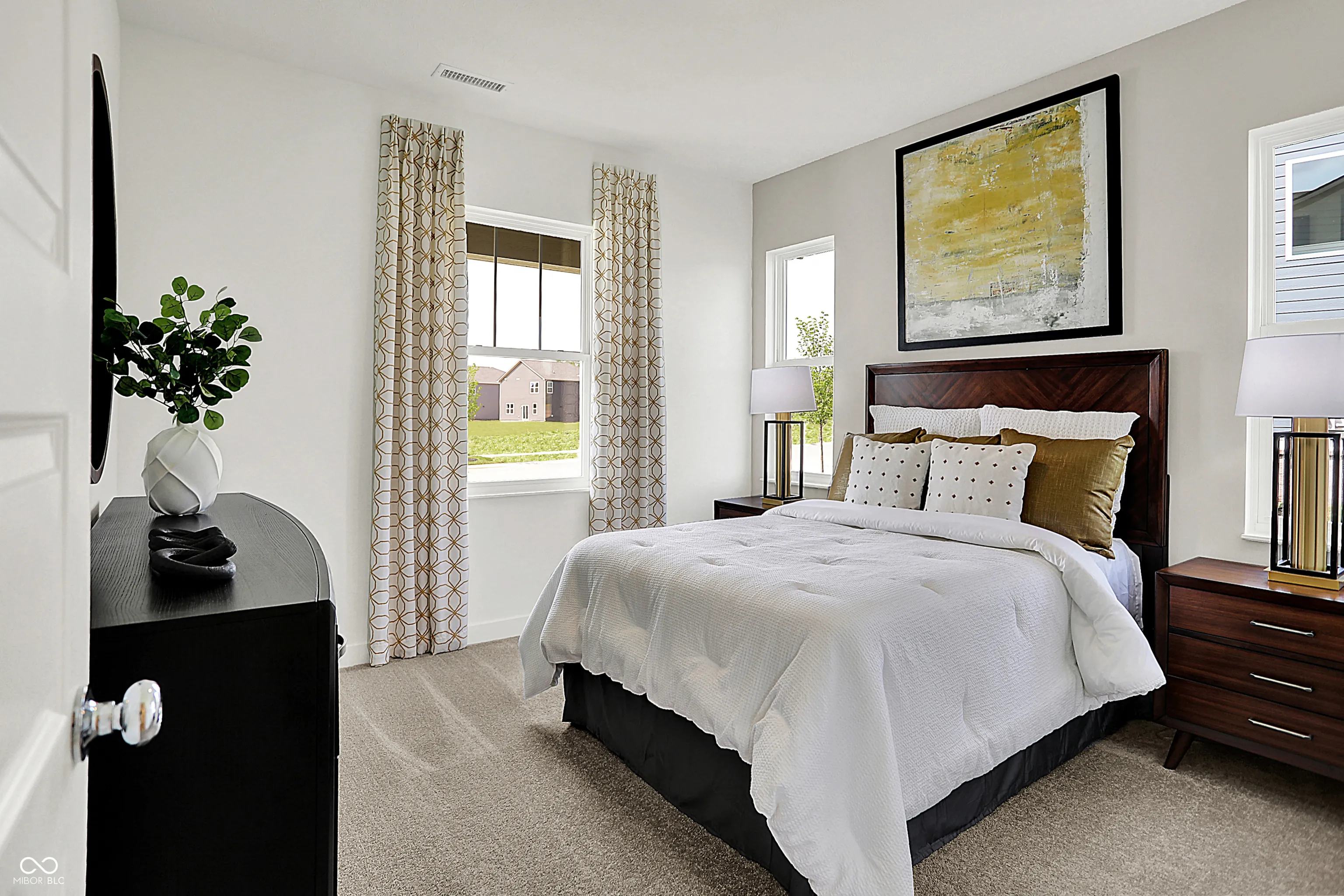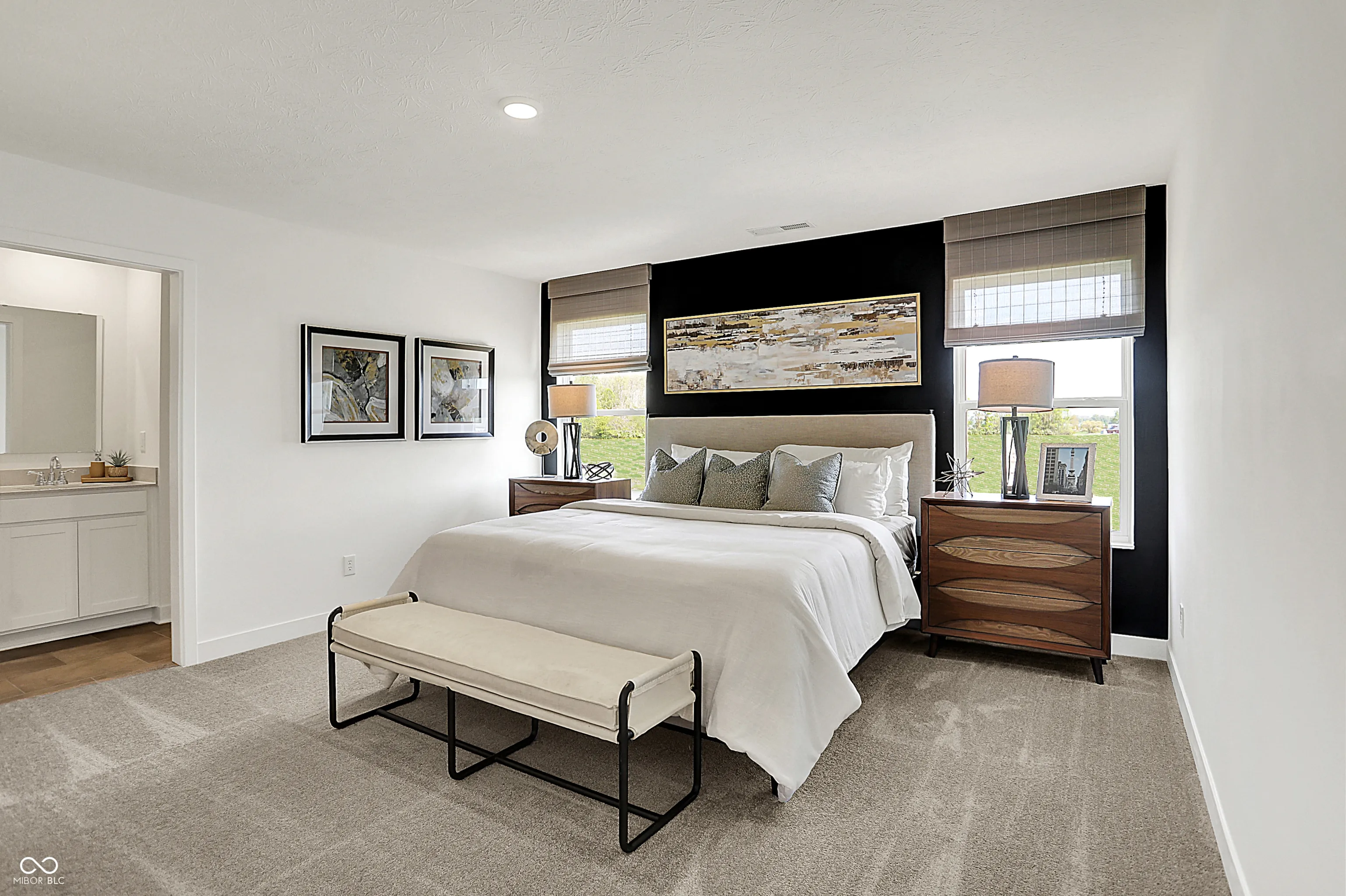 Carriage Duplex is a series of new paired homes for sale at Grand Vista, a master-planned community coming soon to Greenwood, IN. Residents will have access to stunning amenities including a relaxing swimming pool, pool house and playground set. The community offers proximity to Old City Park for outdoor recreation and high-end shopping and dining options at nearby Greenwood Park Mall. The first floor of this two-story home shares an open layout between the kitchen, dining area and Great Room for easy entertaining, along with a secondary bedroom and full-sized bathroom, perfect for overnight guests. Upstairs is a luxe owner’s suite with an en-suite bathroom and a spacious walk-in closet, three additional secondary bedrooms and a versatile loft that serves as second-floor shared living space. *Photos/Tour of model may show features not selected in home.