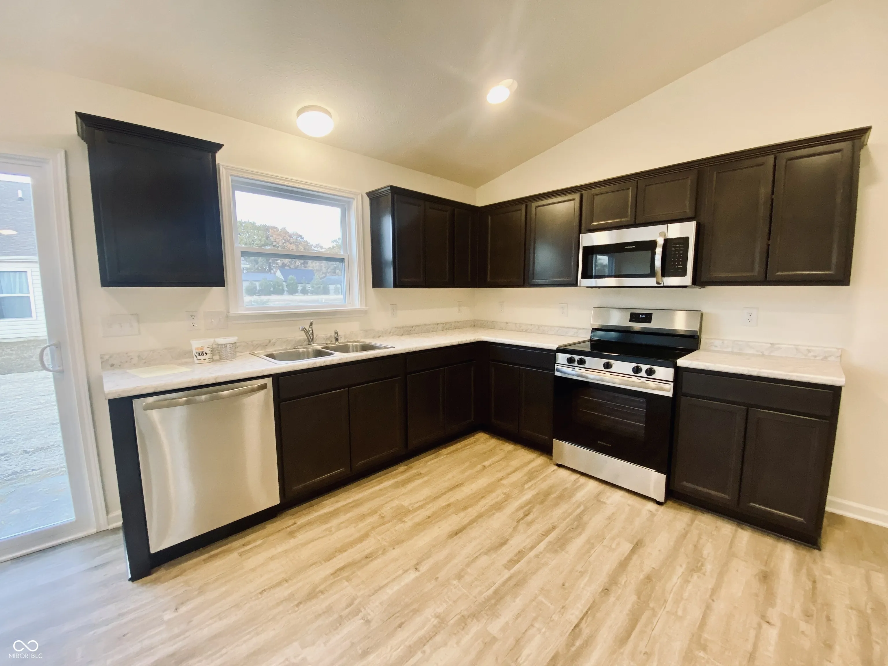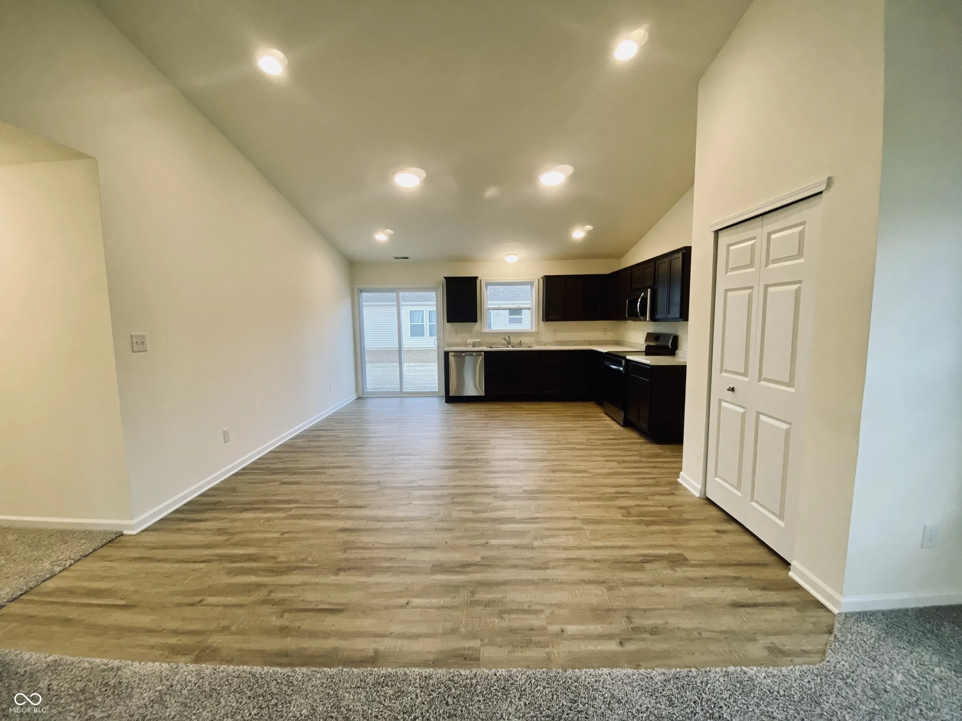 BRAND NEW ranch 3 bedroom/2 bath home. This beautiful home features a two-car garage and a charming full front porch, perfect for relaxing after a long day. Step inside to discover a generously sized family room that seamlessly flows into the well-appointed kitchen, complete with a soaring cathedral ceiling. The kitchen boasts beautiful Aristokraft cabinets with crown molding, laminate plank flooring, ample counter space, stainless steel appliances, and a pantry for all your storage needs, while recessed lighting brightens the space. Enjoy easy access to the outdoor patio through the sliding door just off the kitchen. A spacious hallway guides you to three inviting bedrooms. The primary bedroom is a true retreat, featuring its own cathedral ceiling prewired for a ceiling fan, and it connects to the primary bathroom with a 60″ shower and a walk-in closet. Both bathrooms feature cultured marble counters. Conveniently located just off the hallway, the laundry room offers additional storage space and you can access this directly from the garage. Family room and all 3 bedrooms are prewired for a ceiling fan. There is even extra room for storage with a 4 foot bump out added on to garage. Home is pre plumbed for a water softener. Don’t miss the chance to explore this lovely home.