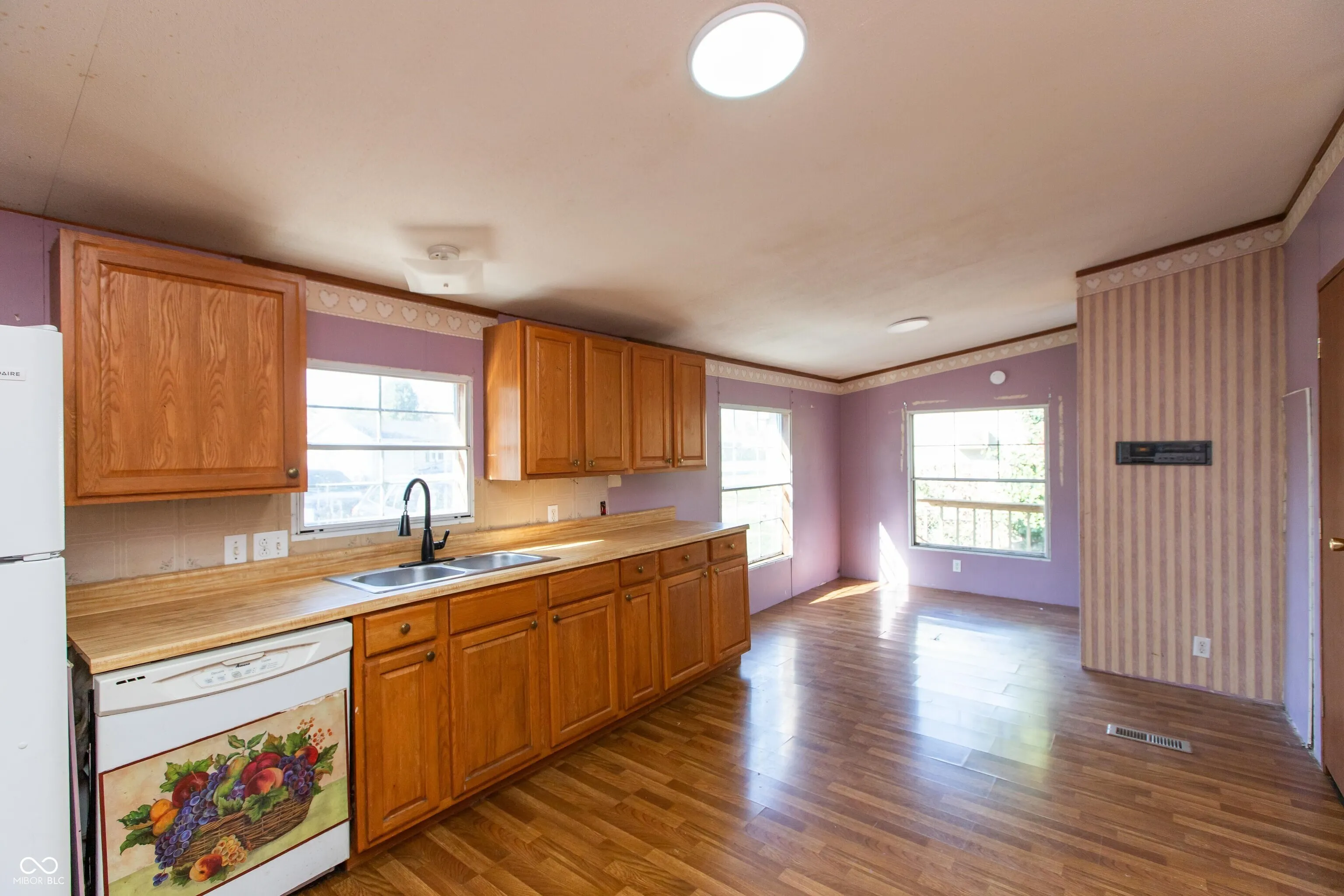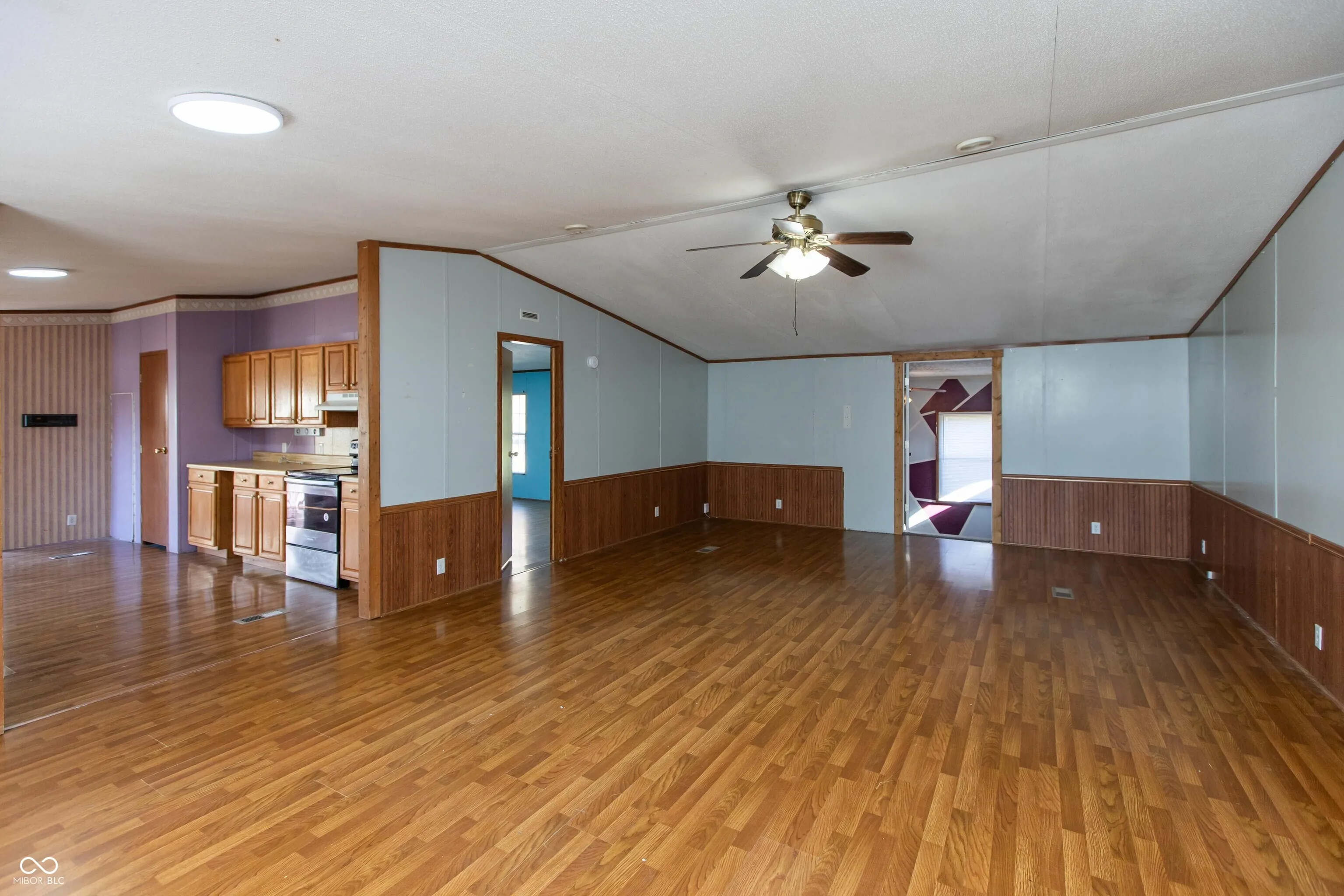 Immediate possession with this 3 BR, 2 BA vinyl manufactured home on a cul-de-sac lot featuring more than 1,700 sq of living space; large front deck; large living room with cathedral ceiling; applianced kitchen with oak cabinets, pantry closet and breakfast area; primary bedroom with vaulted ceiling, walk-in closet and private bath; split bedroom floor plan; BONUS room could be an in-home office, den or craft/kids room; electric heat plus central air; chain-link back yard with storage building; close to Seymour Middle School.