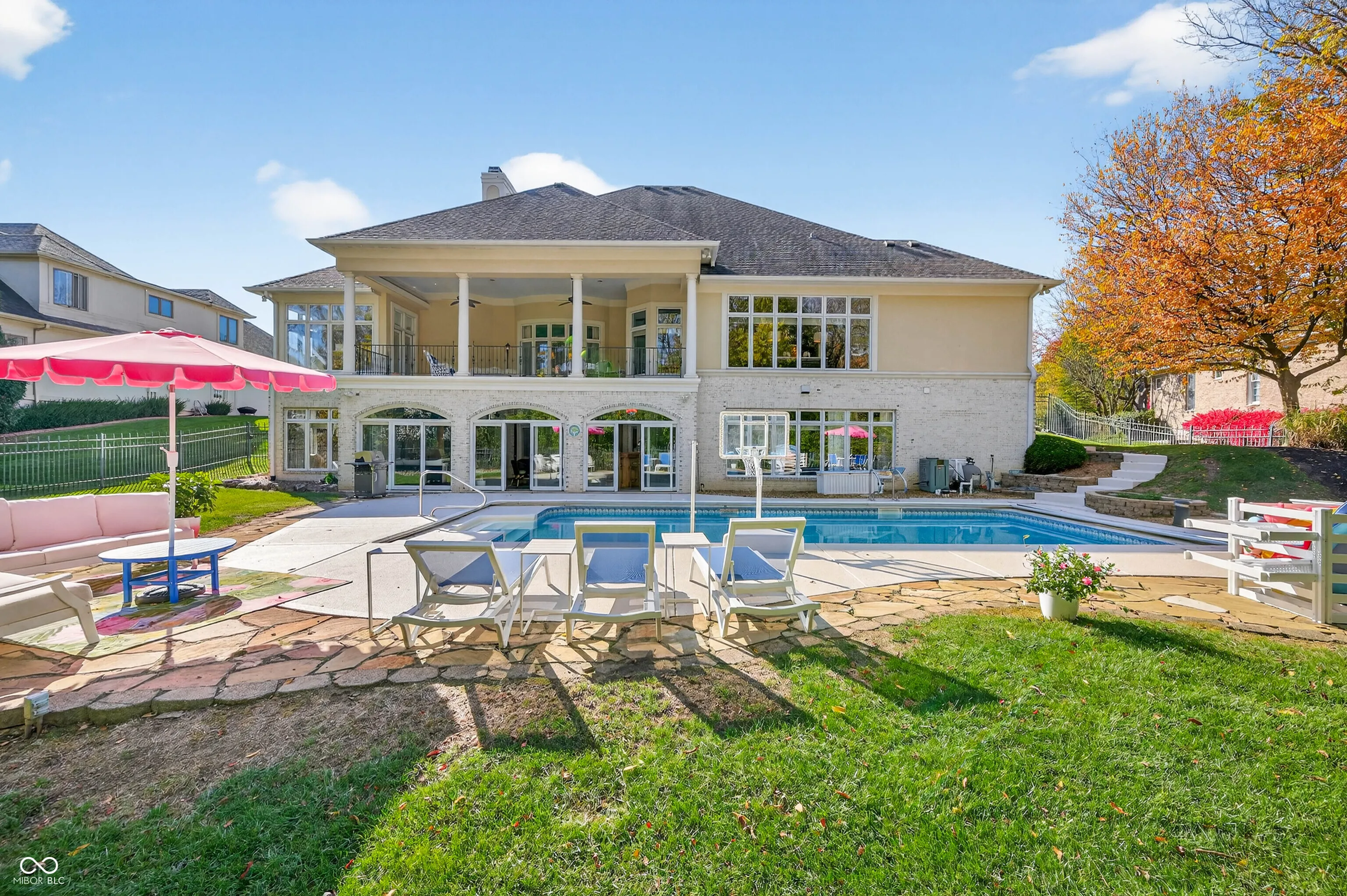 Experience refined luxury and timeless design in this award-winning custom estate by renowned builder Greg Allen-recipient of the 1998 Home-A-Rama “People’s Choice” Award. Perfectly positioned in the heart of Center Grove, this residence blends masterful craftsmanship with sophisticated modern updates to create an unparalleled living experience. Step inside to soaring 14′ ceilings, rich architectural detail, and expansive living spaces designed for both grand entertaining and everyday elegance. The newly remodeled kitchen serves as the home’s showpiece-featuring premium finishes, generous prep space, and a seamless flow into the main living areas. With 4 spacious bedrooms, each offering walk-in closets, and 4 full baths plus 2 half baths, the home provides exceptional comfort and privacy for family and guests. The fully finished 3,450 sq. ft. walkout basement is its own retreat-complete with a full theater room, private exercise room, and a stylish wet bar. Whether hosting game nights, movie marathons, or weekend gatherings, this space delivers endless opportunity. Outside, your personal resort awaits. Nestled on nearly half an acre, the backyard features a sparkling in-ground pool, multiple outdoor living areas, and lush privacy-creating the ultimate setting for summer entertaining and peaceful relaxation. A rare combination of elegance, quality, and livability, this Center Grove luxury home offers the lifestyle you’ve been dreaming of-crafted with intention, updated with care, and designed to impress at every turn.