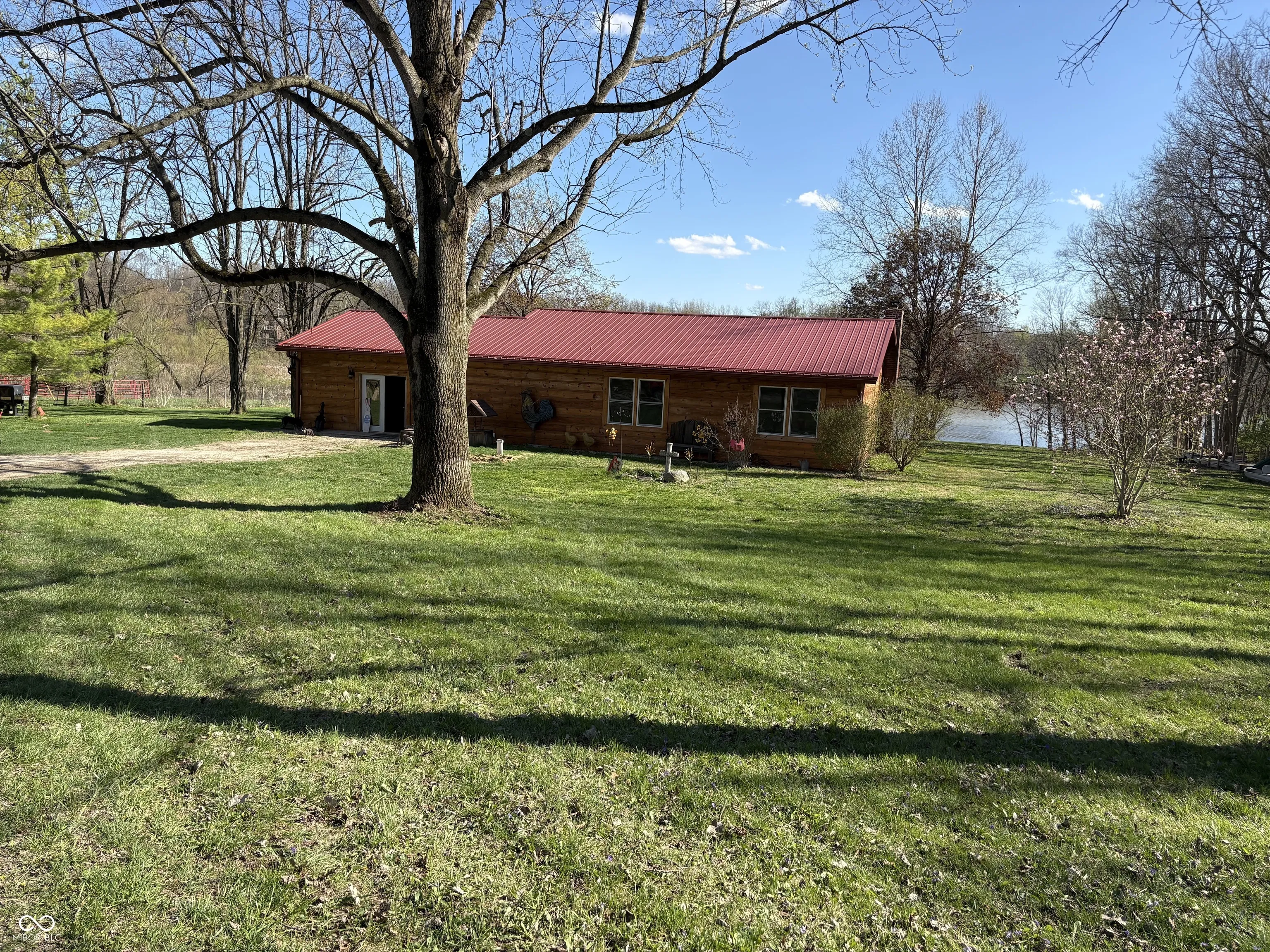 Enjoy the drive to home on a dead end 1 lane road 2 1/2 miles back, filled with wildlife and Yellowstone setting. This rustic ranch home is overlooking 50+ acres of Madison Hills Lake in the backyard. 2BR could be 3BR if you converted the pool room. Almost 20 acres of fenced pasture and woods with approx. 2 1/2 acre beautiful deep new stocked pond in the side pasture with views from the gazebo that give you peace with the rock and tree backdrop. Sit and read a book or throw a fishing pole into the pond from your own get away shed with heat and air. Second electric panel for additional RV hookups with water hydrants so family campground is a possability. The eagles dropping to the lake to grab a fish and the bobcat cry or the howl of the coyotes is just outside your door, and the geese and bullfrogs will invite you in also. The white pelicans are a site to see in the Spring. High fiber Spectrum was just installed. Appliances stay with the home propane range. Electric Heat pump but woodstove/cook oven for back up or assistance heat. Kinetico water system. Garage/outbuilding could be finished out easily and has new wood stove. Newer built carport barn for storing all your toys and then the additional farm barn with stalls. Alot of storage available and many possibilities. Raccoon Lake is not too far for additional fishing. Broker Owned. MUST BE ACCOMPANIED BY A REAL ESTATE BROKER. Seller will consider selling property on a 40 year term mortgage with a large enough down payment.