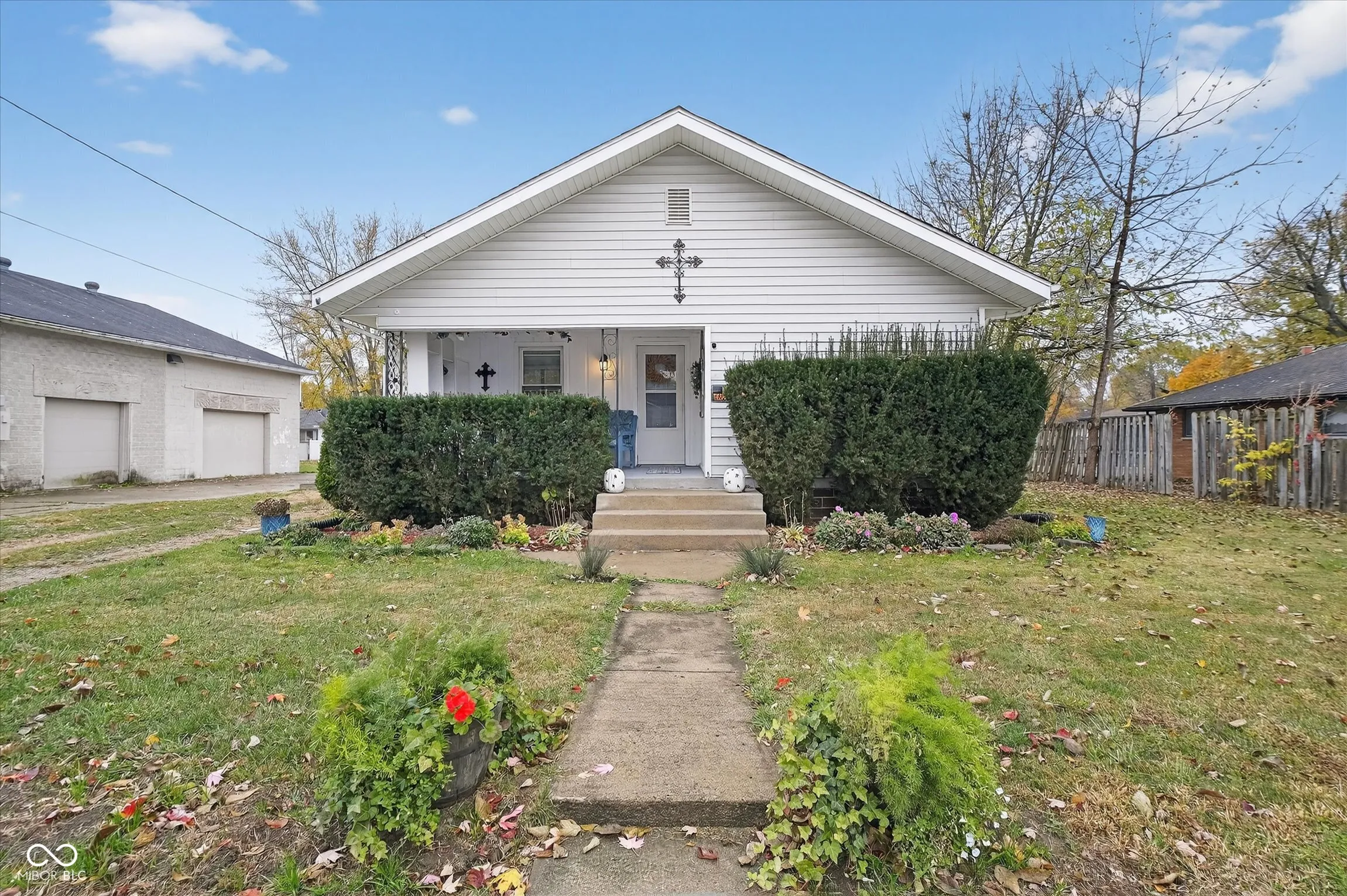 Welcome to this charming, move-in-ready one-story home with a fresh kitchen and an entertainer’s backyard. For added peace of mind, the seller is including a one-year home warranty for the buyer! Inside, a living and dining room flows to the fully remodeled kitchen-new cabinets and countertops, a butcher-block island, and brand-new appliances-tied together with updated light fixtures and ceiling fans. Fresh paint in the kitchen, bathroom, living room, and basement keeps everything bright; the laminate flooring is newer, and the roof is approximately 5 years old. Mechanical upgrades were done right, including a new gas line and meter, a natural-gas stub to the grill, a whole-house water filter, and interior hose-bib shut-offs. The unfinished basement offers a handy workshop zone and great storage. Outside, enjoy the classic open front porch, a privacy-fenced backyard with an open deck and fire pit, plus a 1-car detached garage. Clean, updated, and ready for its new owner!