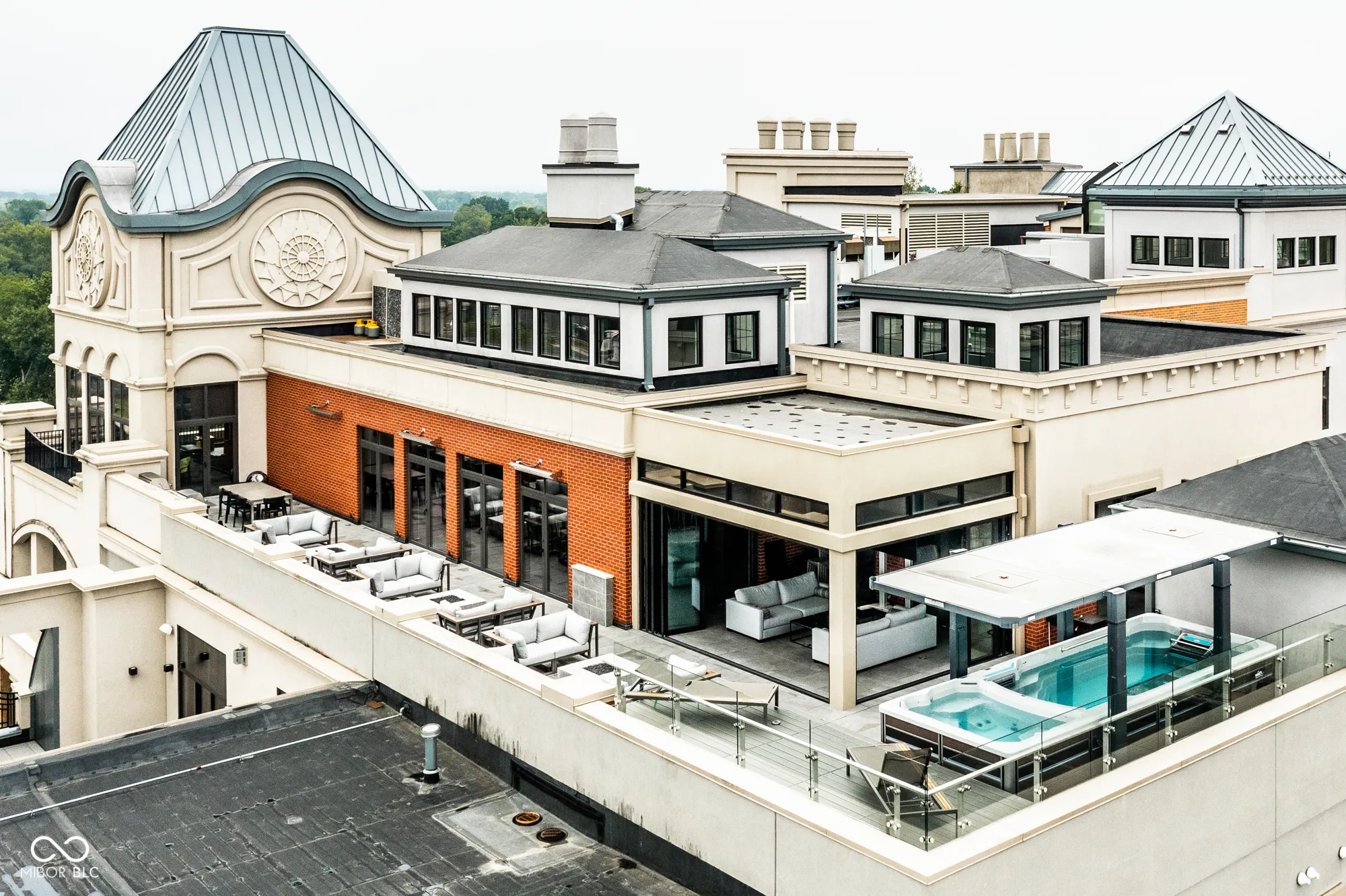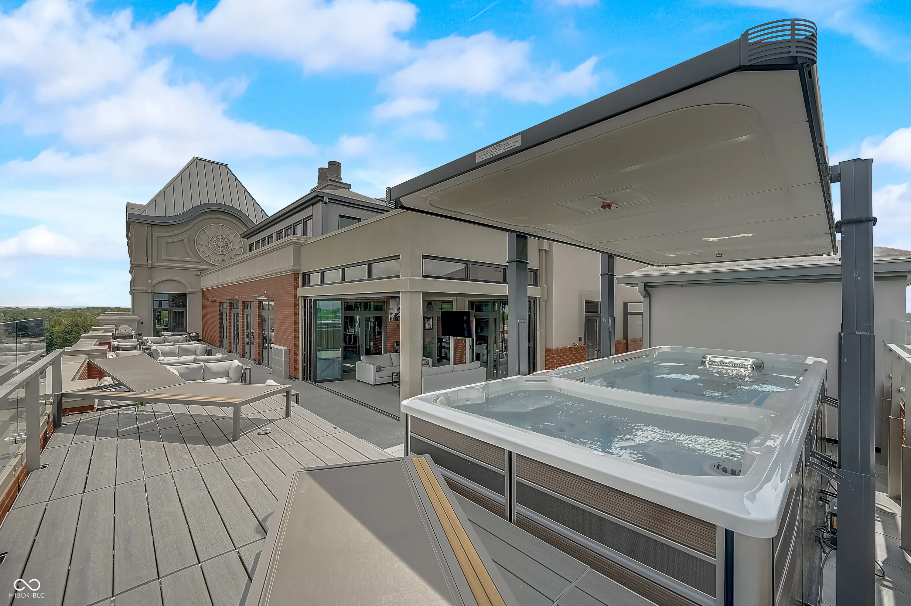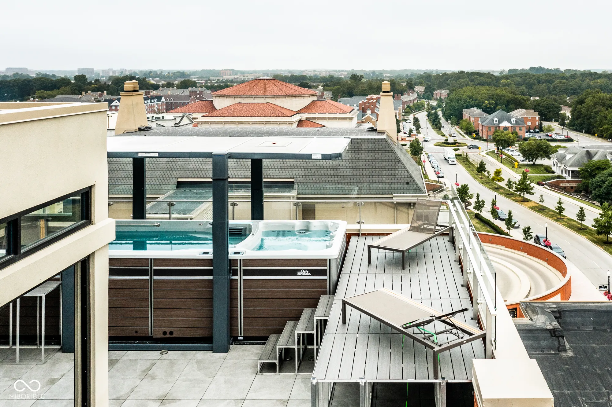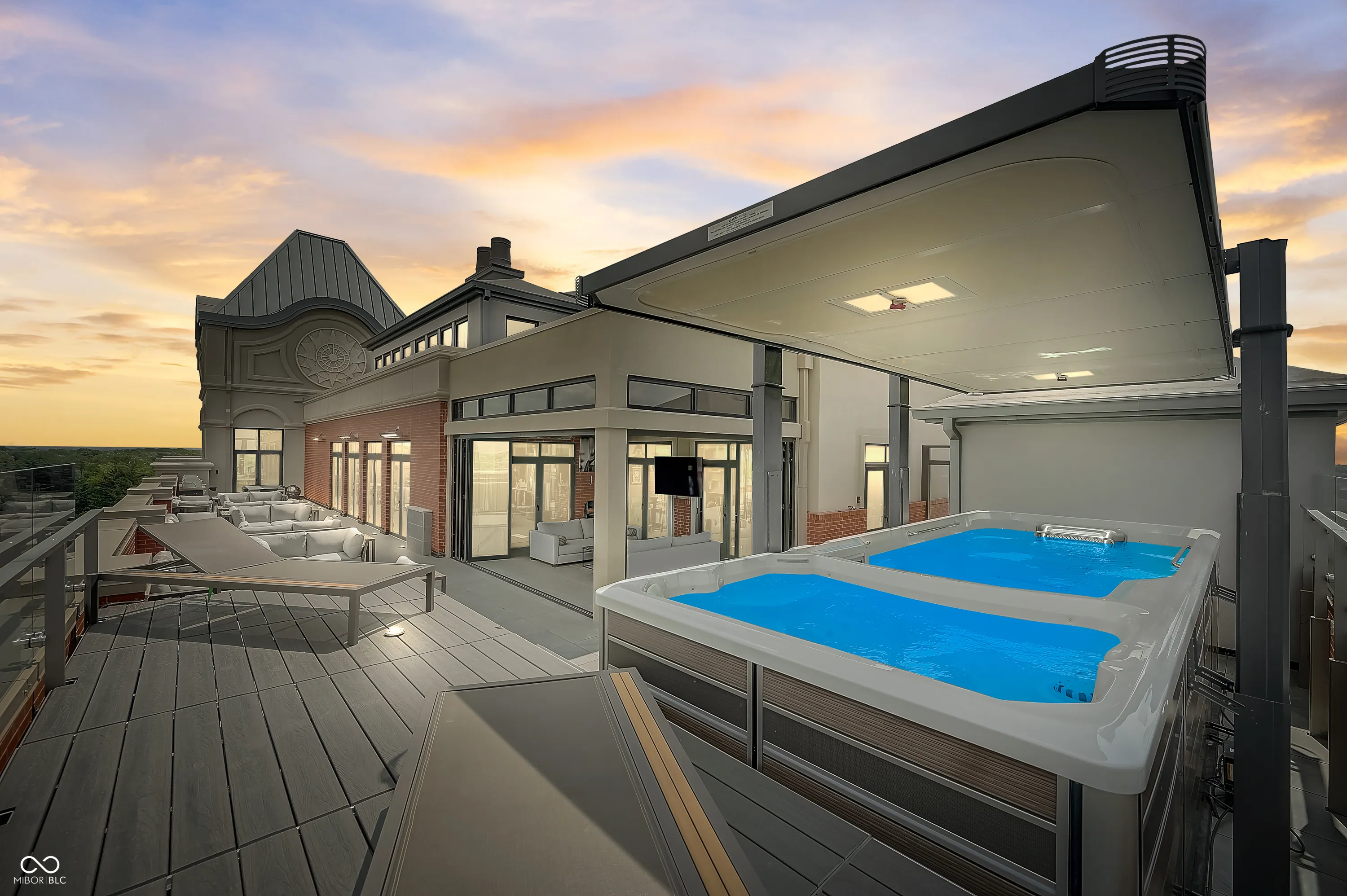 Sky-High Sophistication in the Heart of Carmel. Experience a lifestyle that’s literally above it all in this extraordinary downtown Carmel penthouse. As the city’s highest private residence, it offers sweeping, uninterrupted views that stretch for miles – a rare blend of privacy, prestige, and modern elegance. Designed for both dramatic entertaining and serene everyday living, this residence is a showcase of architectural innovation and impeccable craftsmanship. The main living space impresses with soaring 23-foot ceilings and walls of glass that flood the home with natural light, while a sleek, fully equipped bar with dual Azur refrigerators and a wine cooler elevates every gathering. For the ultimate at-home entertainment, the Dolby theater provides a true cinematic experience with a retractable 9-foot screen, acoustic wall treatments, and automated blackout shades. Culinary enthusiasts will delight in the chef’s kitchen, featuring professional-grade gourmet appliances, a sprawling island accommodating over 25 guests, and a seamless layout perfect for intimate meals or grand soirees. The primary suite is a private retreat, complete with a floating California king bed, skylight, keypad entry, and a heated outdoor lounge with integrated sound. The spa-like ensuite offers a steam shower, three-person infrared sauna with chromotherapy, and a luxurious walk-in closet. Each secondary bedroom comes with its own kitchenette, beverage station, microwave, and integrated Sonos audio system, while a flex suite with a Murphy bed and Tonal Smart Gym provides versatile living options. The custom bunk room offers an ideal space for guests or teens. Step outside to a remarkable 2,000-square-foot rooftop terrace featuring 360-degree skyline views, three fire pits, a swim spa and jacuzzi, outdoor heating, and a full kitchen with dual grills – a spectacular backdrop for entertaining at any level.