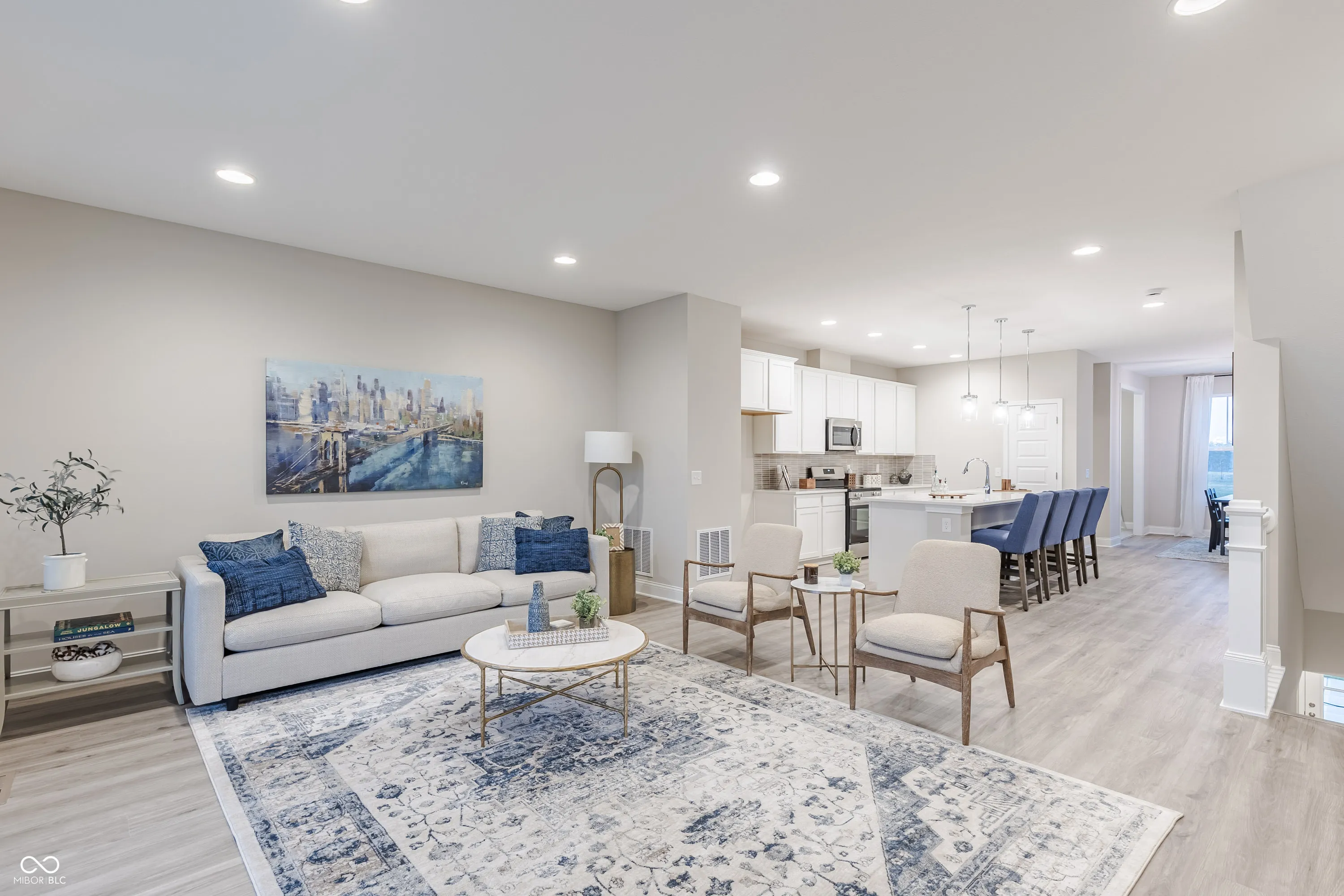 What’s Special: 1st Floor Guest Suite | Dedicated Home Office | Close to Amenity | South Facing Patio – New Construction – February Completion! Built by Taylor Morrison, America’s Most Trusted Home Builder. Welcome to the Midtown at 5803 CR W 750 N in Colonnade! This three-story home offers space and flexibility for every part of your day. On the first floor, a private guest bedroom with a full bathroom sits next to a cozy game room that’s perfect for winding down. Head upstairs to the second floor where open-concept living shines with a great room that flows into a covered deck through sliding glass doors, a kitchen with a spacious island, and a bright dining area. A flex room off the dining space is ready to become your home office, playroom, or creative studio. On the third floor, the primary suite welcomes you with a spa-like bathroom featuring a dual sink vanity, walk-in shower with built-in shelf, and a generous walk-in closet. A secondary bedroom with its own full bathroom and a laundry room complete the top floor. Nestled in McCordsville, one of Indiana’s most desirable areas, this community features peaceful ponds, scenic walking trails, and open green spaces, with the upcoming McCord Square Downtown District bringing an outdoor amphitheater for concerts and events just minutes from home. Additional highlights include: covered deck with a sliding glass door, granite countertops in kitchen, water softener rough-in located on the first floor, and shower with a built-in bench in the primary bathroom. Photos are for representative purposes only. MLS#22072834