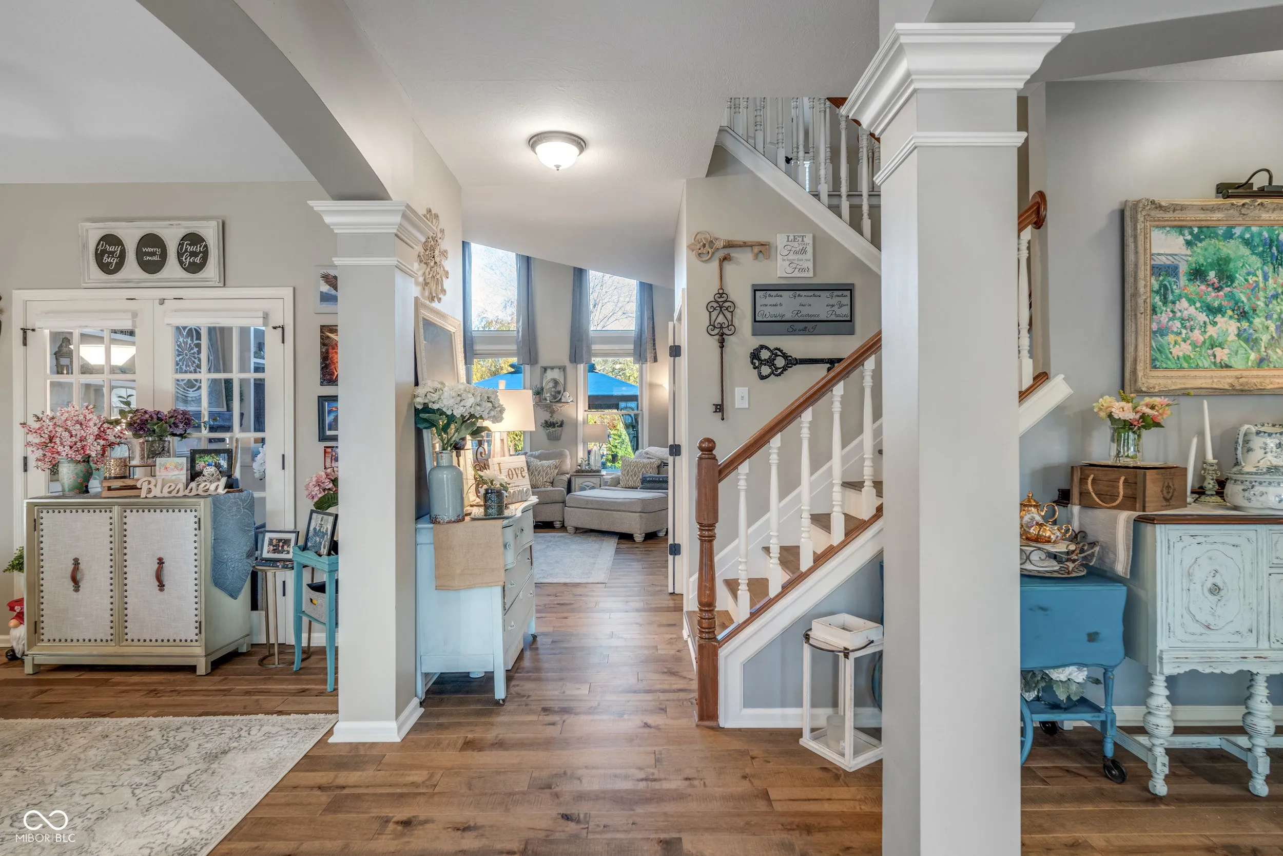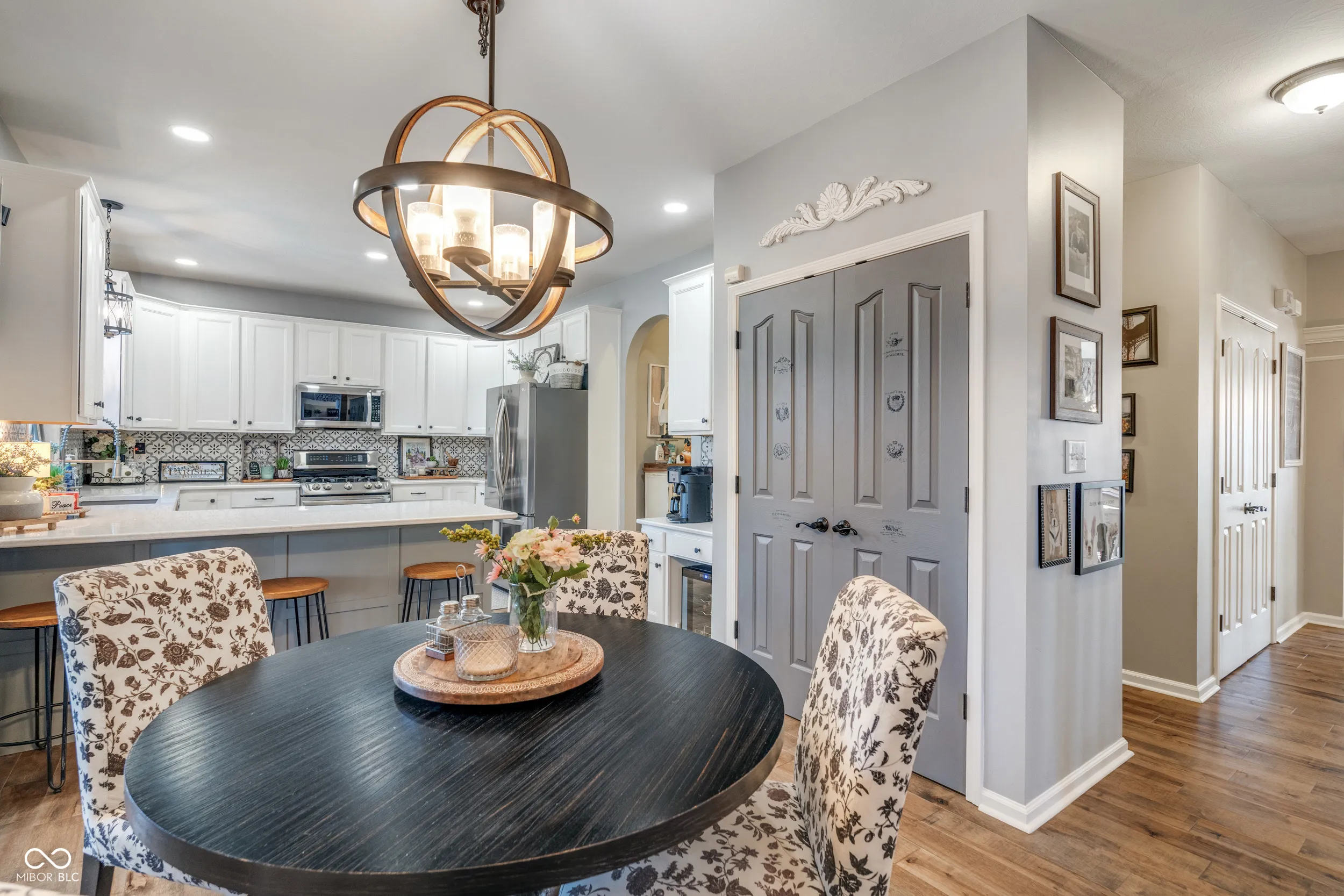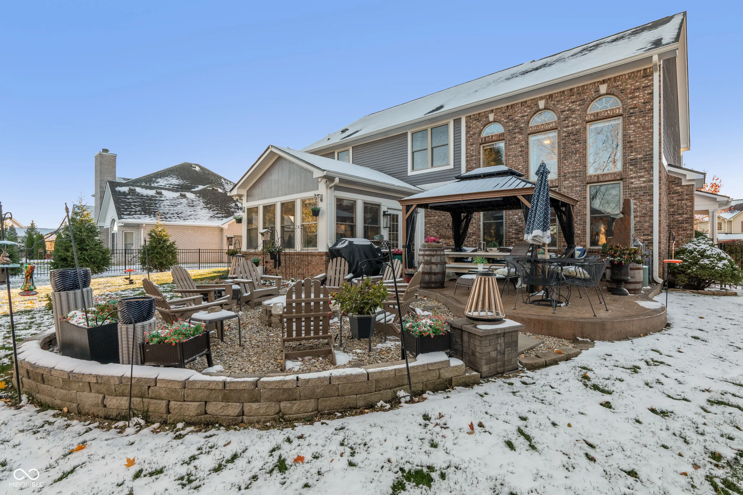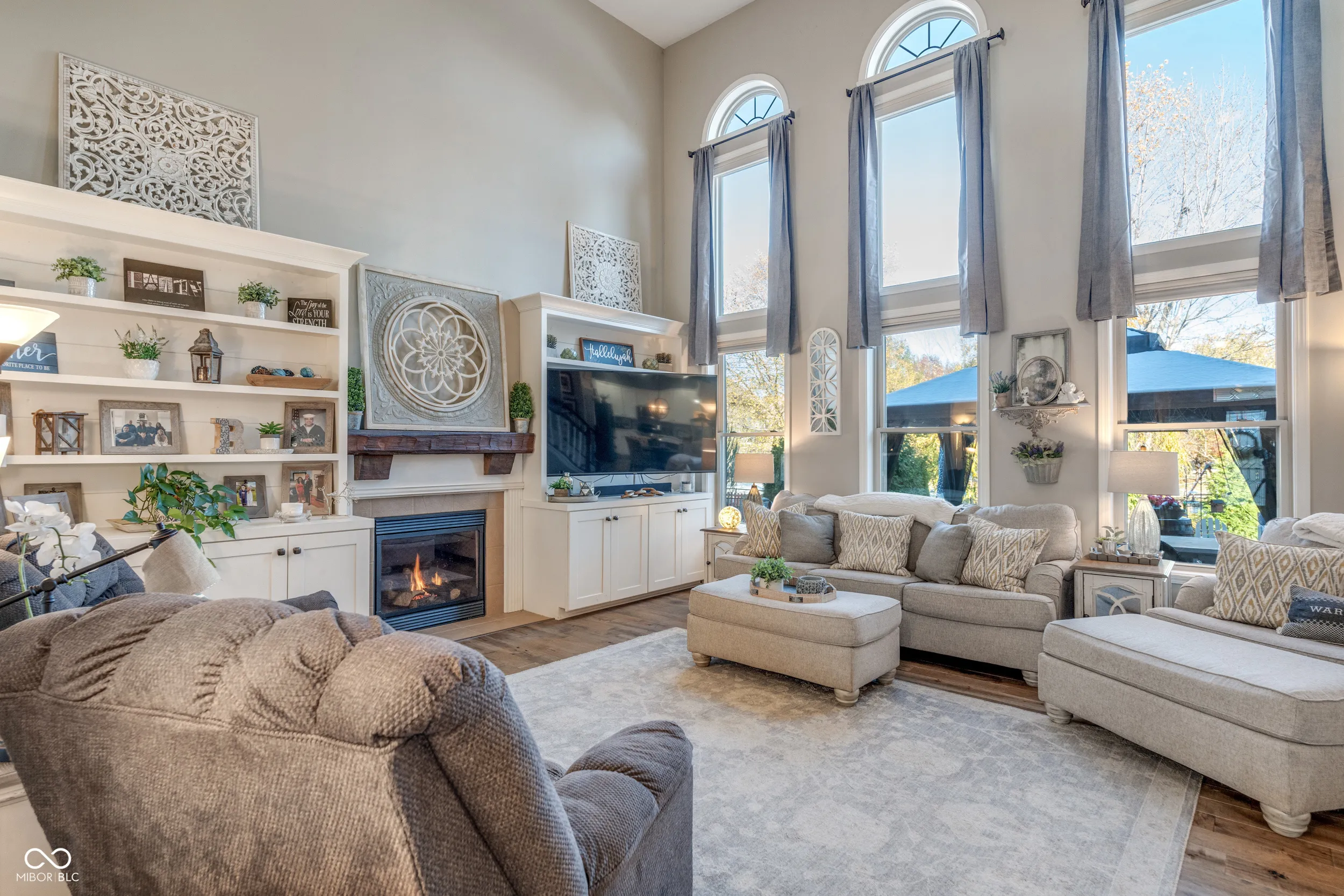 Welcome to the distinguished Chateaux at Woodfield, where spacious living meets refined elegance. This custom-built residence presents an exceptional opportunity for sophisticated homeownership. The property greets you with a grand two-story foyer and arched walkways, leading into an expansive open floor plan accentuated by authentic Canadian maple flooring throughout the main level, staircases, upper-level landing, and hallways. The great room centers around a fireplace flanked by built-in cabinetry, while stacked windows with electric blinds provide abundant natural light and a welcoming atmosphere-ideal for both intimate gatherings and larger social occasions. The sunroom offers year-round comfort with full heating and cooling; alternatively, open the windows during mild spring and autumn days to enjoy the surrounding natural ambiance. Notable upgrades include a kitchen enhanced with a tiled backsplash, quartz countertops, and sink, as well as all bathrooms featuring tile floors and granite-topped vanities. The primary ensuite has been thoughtfully updated, now showcasing a raised double vanity with granite counters, a walk-in shower, a clawfoot soaking tub, and convenient electric blinds. The finished basement offers luxury vinyl plank flooring, a shiplap accent wall, ample built-ins, and flexible spaces for recreation, office work, or media enjoyment. Additional amenities include a fifth bedroom, full bathroom, exercise room, and generous storage areas. Recent improvements consist of a new tankless water heater and an upgraded breaker box, installed this summer for enhanced safety and efficiency. Expanding beyond the main living area, the property features a private outdoor retreat, complete with a stamped concrete patio and designated dining space-perfect for al fresco entertaining. The outdoor living area provides an inviting setting for relaxation, complemented by a fire pit for enjoying evenings beneath the stars, and a fenced yard ensuring the security o