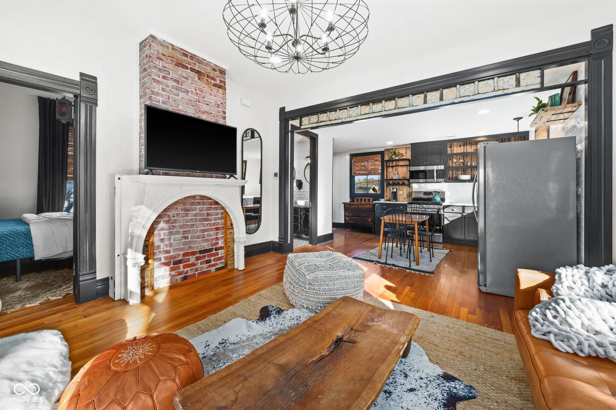 Originally built in 1860 as the home of Franklin Booth, the celebrated illustrator for James Whitcomb Riley, this historic Carmel residence has been completely reimagined for modern living while preserving its timeless character. Meticulously renovated in 2020, the property now combines rich architectural history with sophisticated design and top-tier craftsmanship-all within walking distance of Main Street, the Monon Trail, and the Carmel Arts & Design District. This home is being sold fully furnished and completely turnkey, making it ideal for an Airbnb, short-term rental, or executive residence. Every piece-from furnishings and decor to kitchenware, linens, and essentials-has been thoughtfully curated to match the home’s style and ensure it is ready for guests from day one. Inside, the main level showcases original hardwood floors, exposed brick, reclaimed wood accents, and handcrafted finishes throughout. The chef’s kitchen boasts custom cabinetry, butcher block counters, a honed granite island, and modern appliances-perfect for entertaining. Two bedrooms and two full baths complement a spacious living area and large laundry room, offering both comfort and practicality. A private staircase leads to the upper-level residence, featuring two additional bedrooms, a full bath, a bright kitchen, and an inviting living space. This upper unit provides flexibility for guests, extended family, or supplemental rental income. Whether you envision it as a private residence, a multi-generational home, or a fully operational Airbnb, this one-of-a-kind property offers an extraordinary opportunity to own a piece of Carmel’s history while embracing the modern conveniences and energy of its thriving downtown district. COMPLETELY FURNISHED and ready for immediate use-this is truly a turnkey offering.