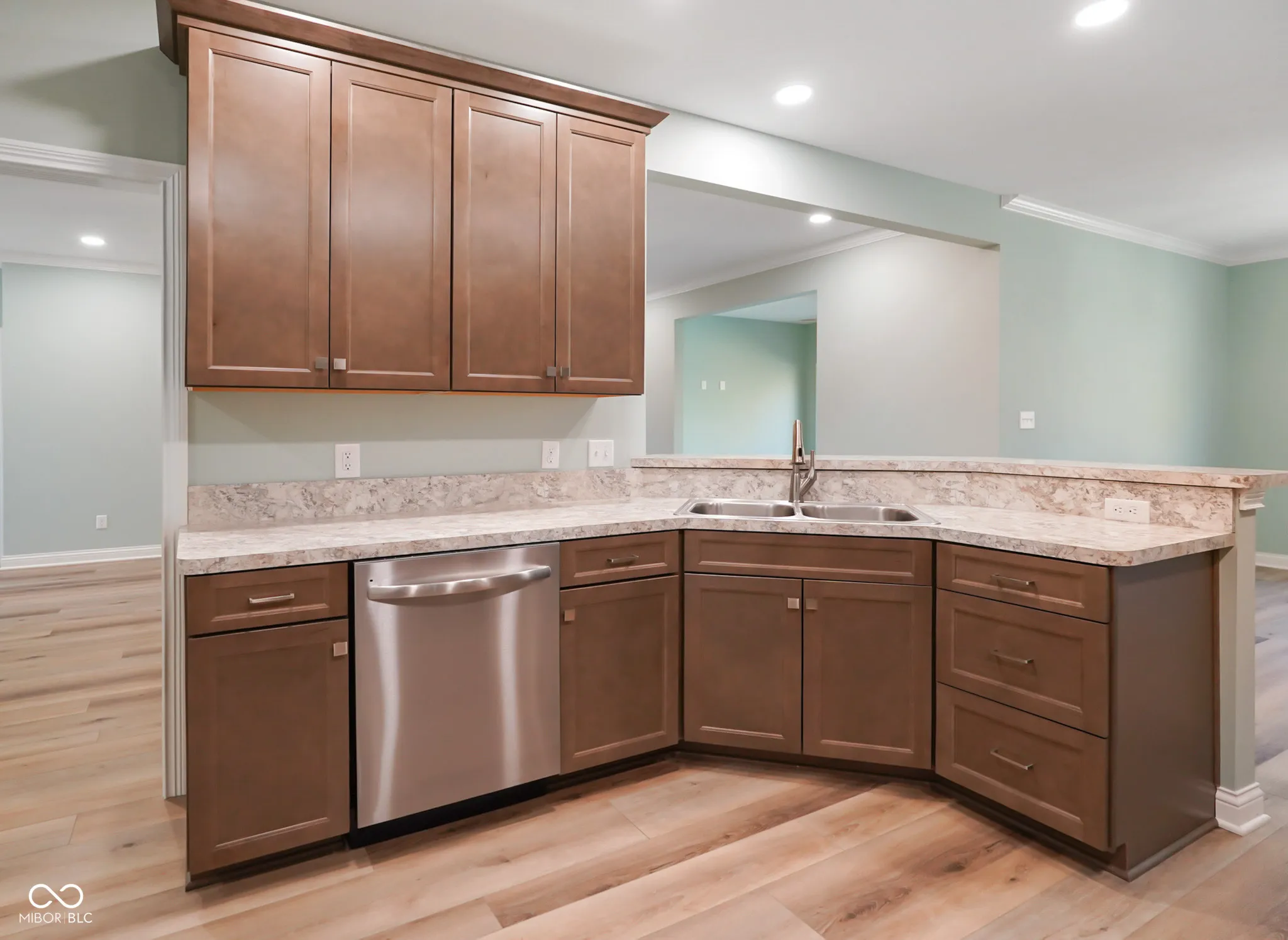 NEVER LIVED IN! Feast your eyes on the delightful residence awaiting you at 5406 E Commons North DR, MOORESVILLE, IN! This single-family residence in the heart of Indiana is in great condition and ready to become your personal paradise. Imagine yourself as the master chef in a kitchen designed to inspire culinary masterpieces; the stone look countertops provide a luxurious workspace, while the shaker cabinets offer a stylish and functional storage solution; the kitchen peninsula is the perfect spot for casual dining or entertaining guests, all framed by elegant crown molding. The living room also features crown molding, offering a sophisticated touch for your relaxation or entertainment. Step into the bathroom and discover a private spa experience, complete with a walk-in shower that promises a refreshing start to your mornings or a soothing end to your days. The property boasts three bedrooms and two full bathrooms within its 1804 square feet of living area, offering ample space for relaxation and rejuvenation; outside, you’ll find a porch ideal for sipping sweet tea and watching the world go by, and a patio perfect for outdoor dining and entertaining. This attractive property also occupies a generous 7275 square feet lot, all neatly contained on a single story, built in 2025. With its blend of comfort and style, this brand new residence is more than just a house; it’s a place where memories are waiting to be made!