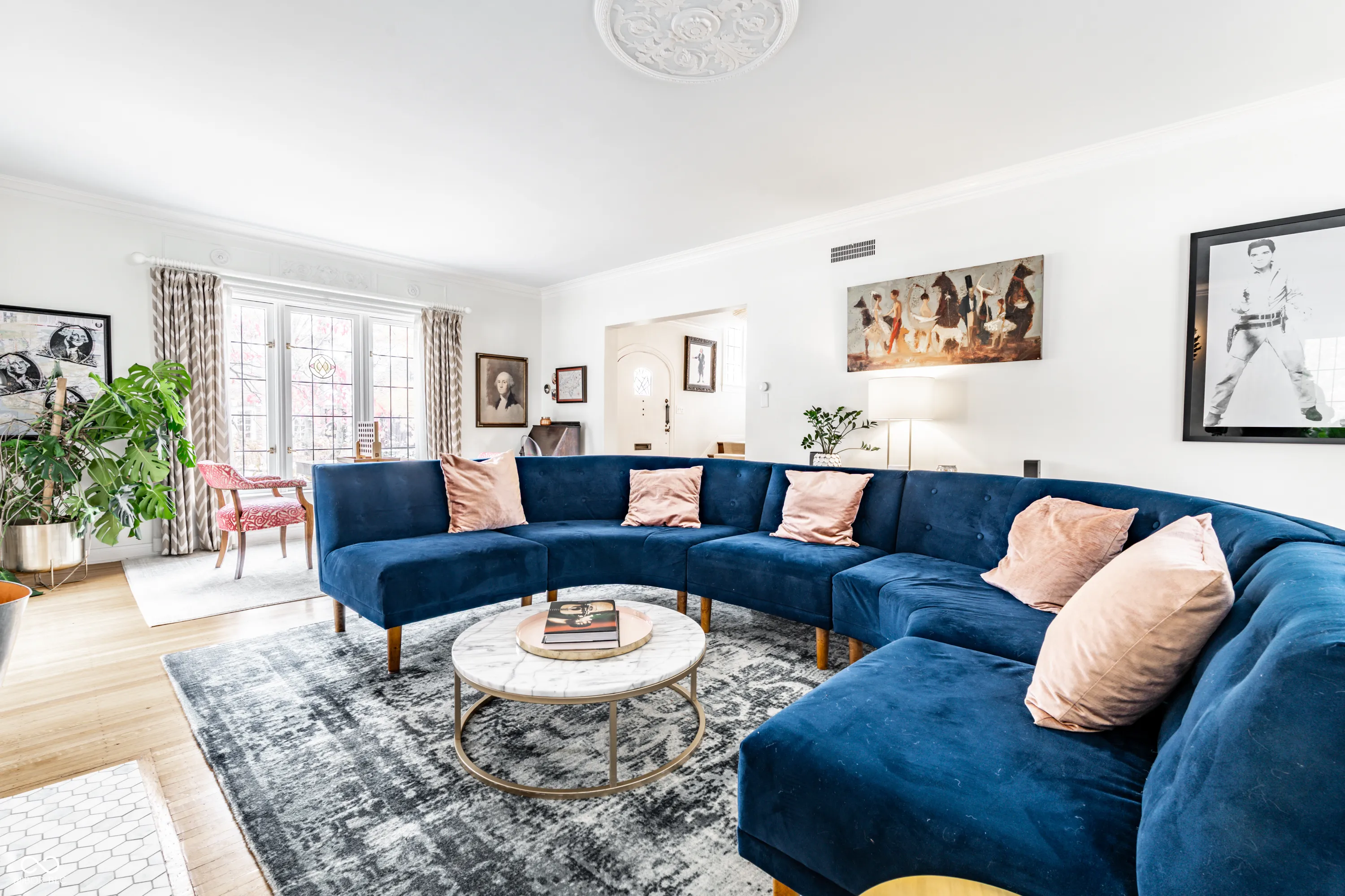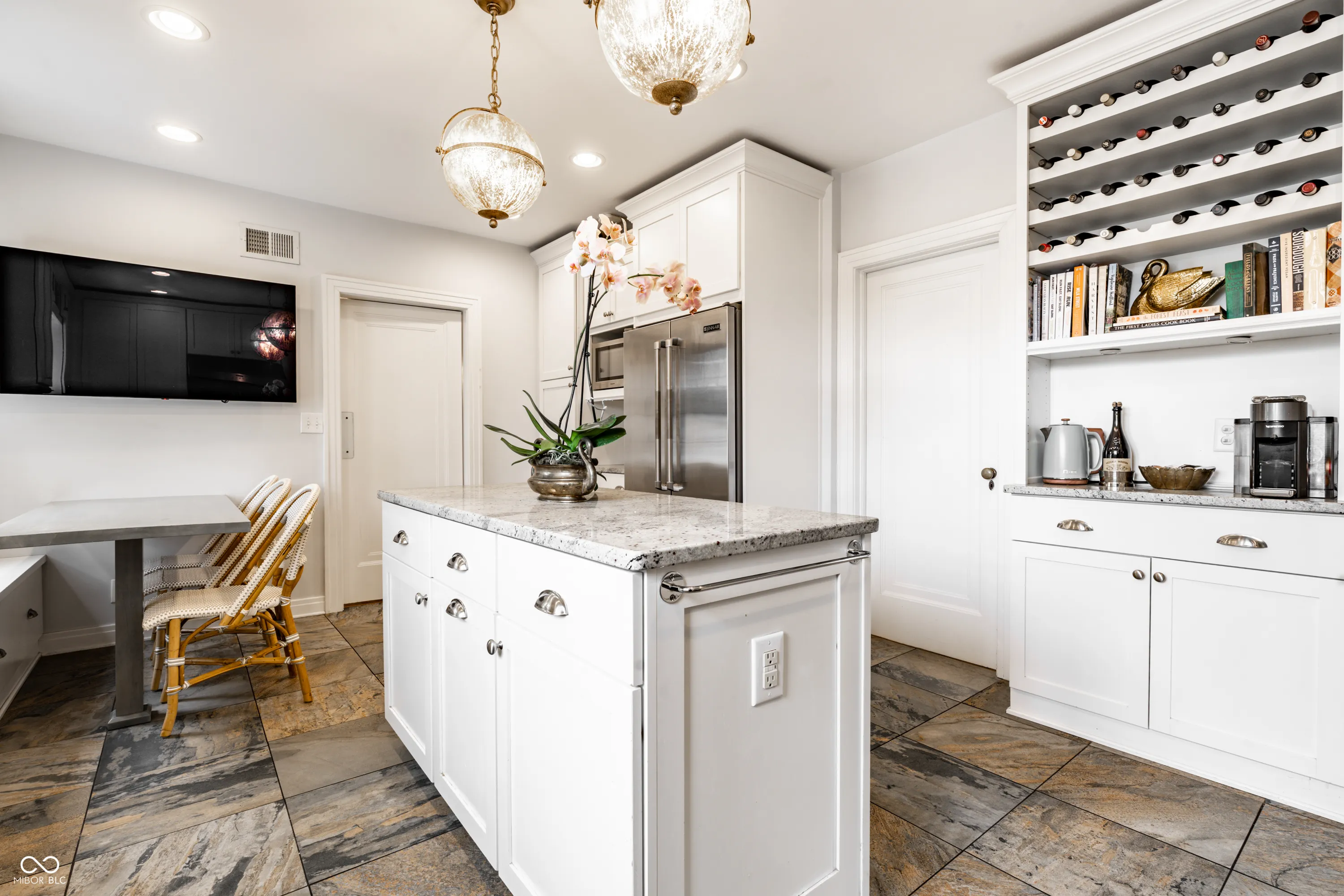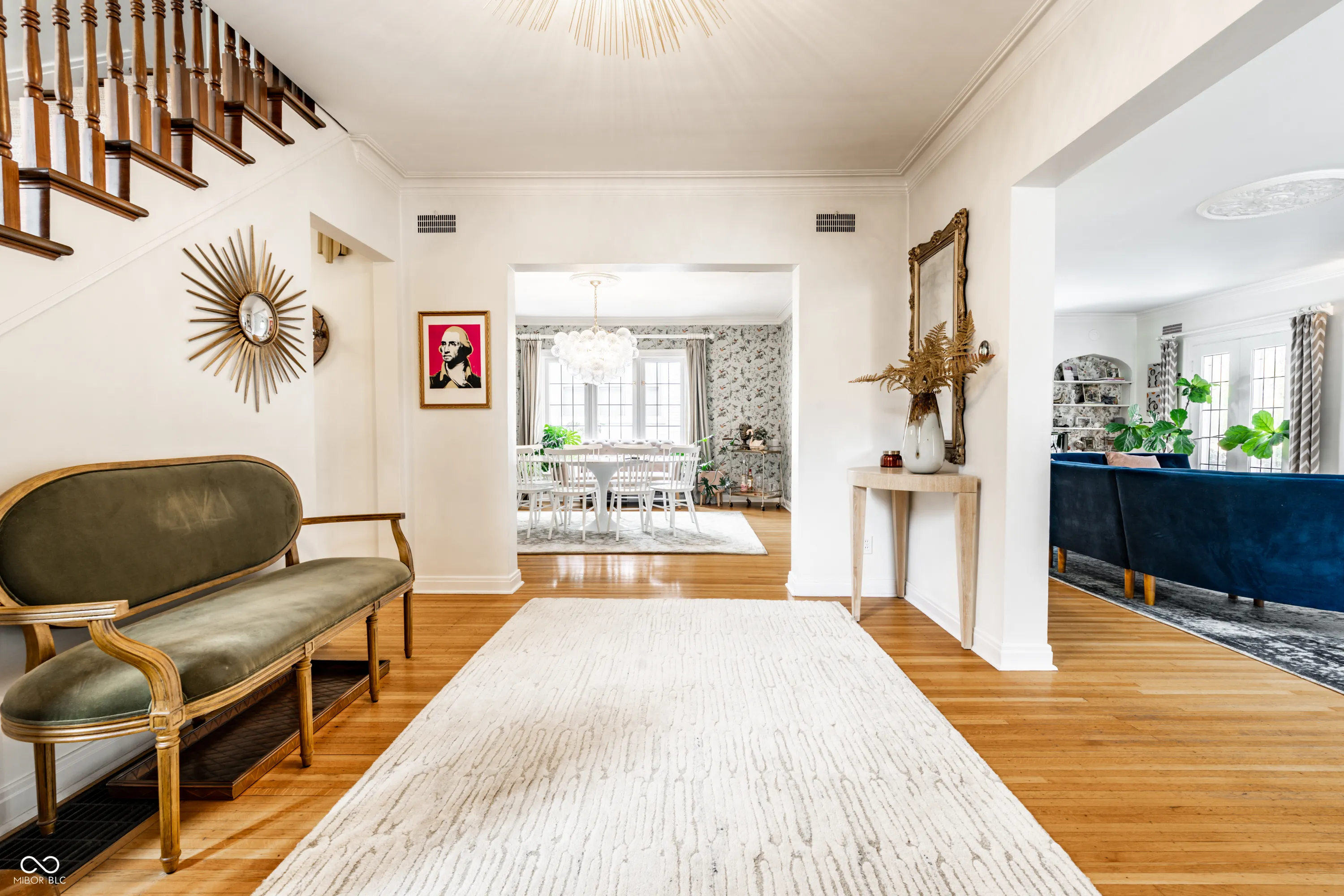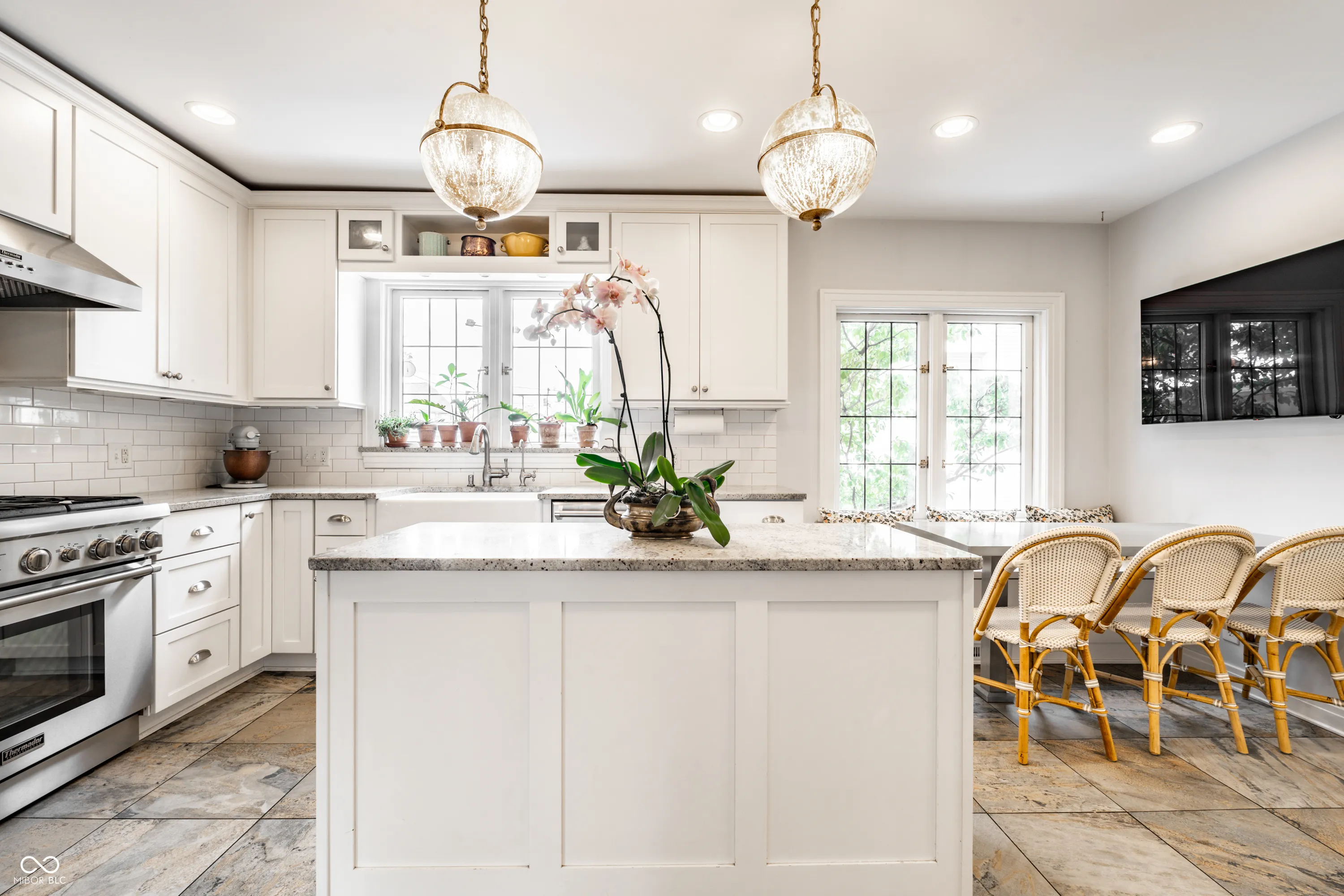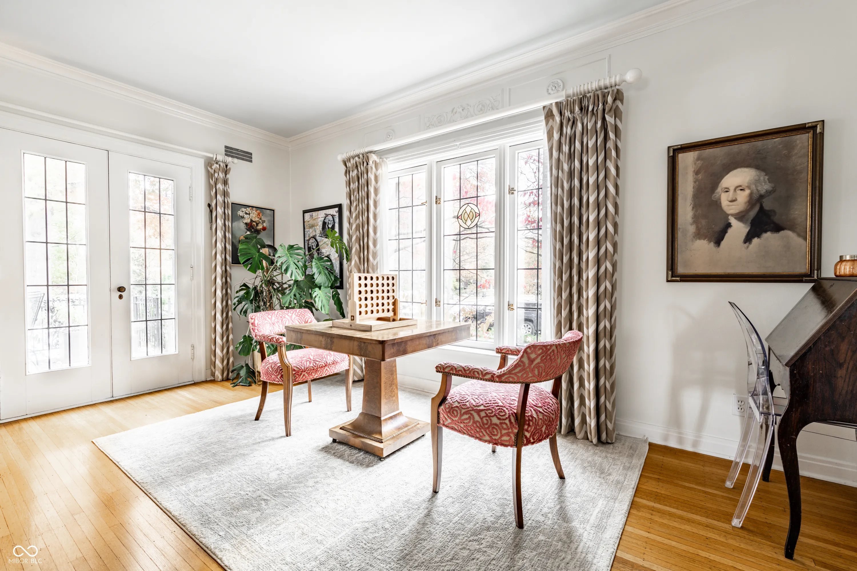 An exceptional offering in the heart of Meridian-Kessler, this distinguished estate graces the storied expanse of historic Washington Boulevard. A rare jewel from 1936, the residence retains its original architectural integrity-expansive divided-light windows, rich hardwood flooring, and gracious formal living and dining rooms-while seamlessly integrating sophisticated modern updates for today’s most discerning homeowner. The main level invites both refined entertaining and everyday comfort. The formal living room, framed by French doors, opens to an expansive front porch overlooking the Boulevard-an ideal setting for elegant gatherings or quiet reflection. The dining room, enhanced by custom built-ins and generous windows, exudes timeless charm. The chef’s kitchen is a masterpiece of design and functionality, featuring premium Jenn-Air and Thermador appliances, a substantial center island, and abundant preparation space. A charming breakfast nook provides the perfect backdrop for morning coffee or casual dining. A stately home office offers a serene and stylish space for remote work, while the expansive mudroom-thoughtfully designed for both form and function-connects seamlessly to the attached two-car garage. Upstairs, five spacious bedrooms showcase the home’s enduring craftsmanship, each bathed in natural light and graced with original hardwood floors. Four pristine full baths retain their beautifully preserved 1930s tilework, marrying vintage character with modern convenience. The lower level extends the home’s livability with a welcoming recreation room, ideal for family gatherings or relaxed leisure. Outdoors, a fully gated patio invites al fresco dining and fireside evenings under the stars. Every corner of this meticulously maintained estate reflects timeless elegance and understated grandeur. A rare opportunity to own a piece of Indianapolis history, beautifully reimagined for contemporary luxury living.