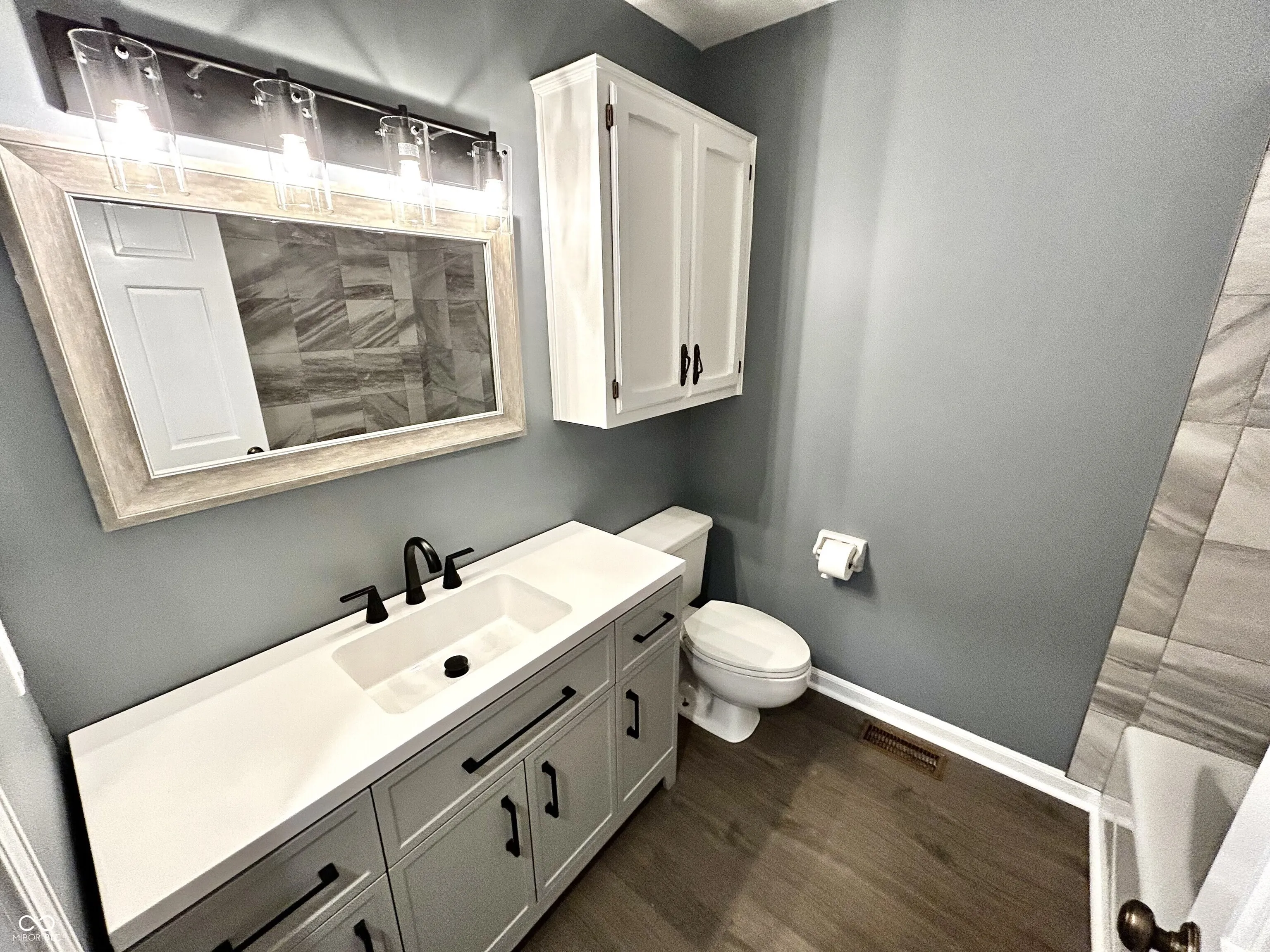 Never been on the market. This beautiful all brick ranch home nestled in popular Jefferson Meadows. This single-family residence has been recently remodeled with an open concept, fresh paint, light fixtures and new flooring throughout. The heart of this home is undoubtedly the living room, a space designed for both relaxation and sophisticated entertaining, featuring a fireplace as its focal point and enhanced by a tray ceiling. The kitchen is equipped with stone countertops and shaker cabinets, and features a kitchen peninsula, perfect for casual dining or entertaining. The bathrooms offer a touch of luxury and convenience, including features such as a double vanity and a walk-in shower. This home includes three bedrooms all with walk in closets and two full bathrooms, along with a half bathroom. A laundry room offers practicality and convenience. The property features a patio, ideal for enjoying the outdoors. This is a residence where comfort meets style, offering a harmonious blend of indoor and outdoor living.