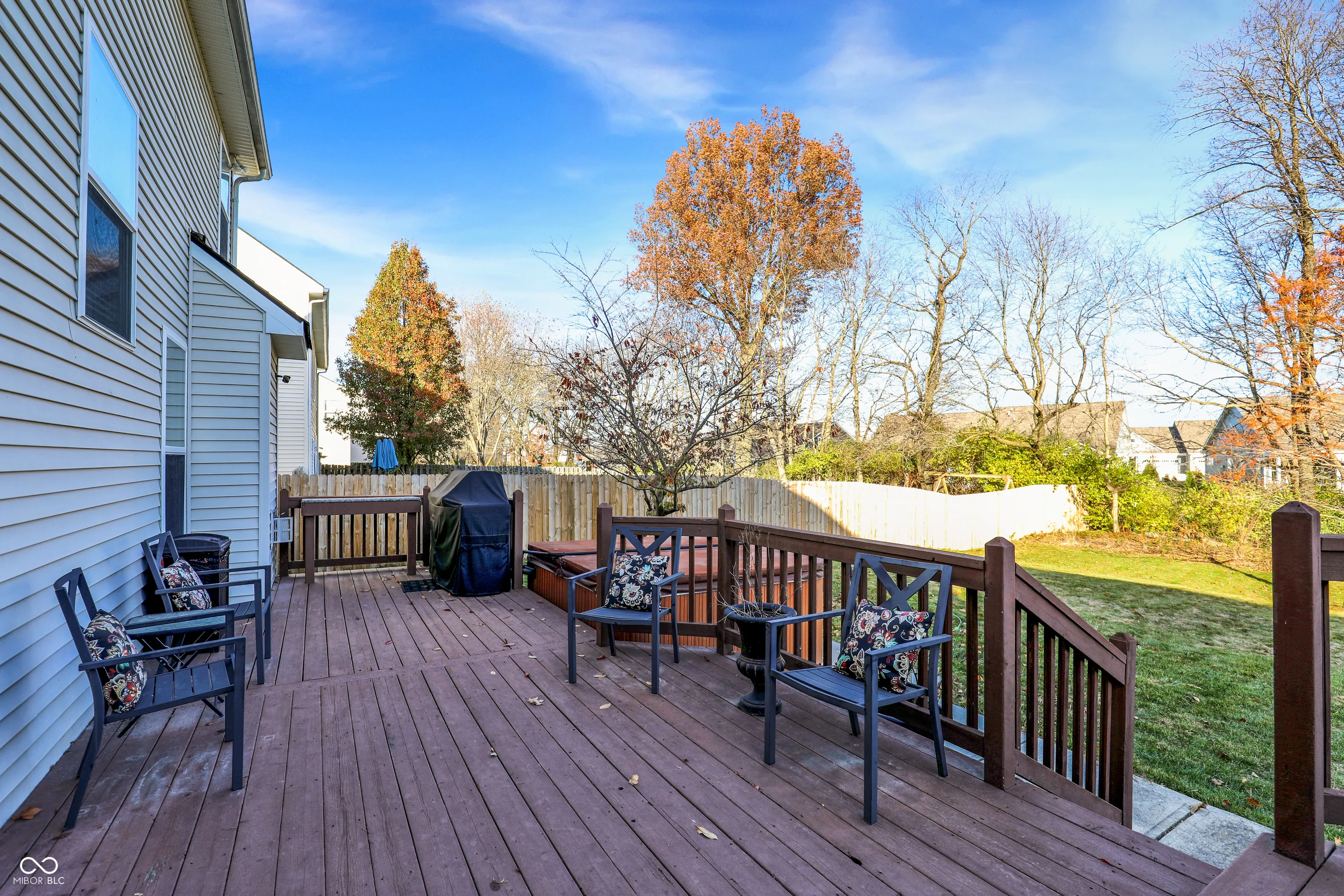 Gorgeous 5 Bedroom, 3.5 Bath home in HSE Schools! This well-maintained home offers generous living space, great curb appeal, and a private tree-lined fenced yard with a spacious deck perfect for relaxing or entertaining. Inside, abundant natural light fills the home and highlights a number of recent improvements, including newer carpet on the main and upper levels, interior paint, updated black door hardware, new chandeliers, added laundry cabinets, and more. The main floor features a 2-story entry, private study, formal dining room, cozy family room with fireplace, and an eat-in kitchen with plentiful cabinetry and expansive granite counter space. Upstairs are 4 spacious bedrooms including the primary suite with vaulted ceiling and LVP flooring. The finished basement is a standout, offering a theater/media area, bar, play area, playroom/office, the 5th bedroom, and a full bath-ideal for guests, work, or recreation. Located in a quiet Noblesville neighborhood with excellent amenities including a pool, tennis, pickelball, clubhouse, new playground & walking trails, and the advantage of HSE Schools, close to shopping, dining, and parks, this home provides outstanding value, comfort, and versatile space inside and out.