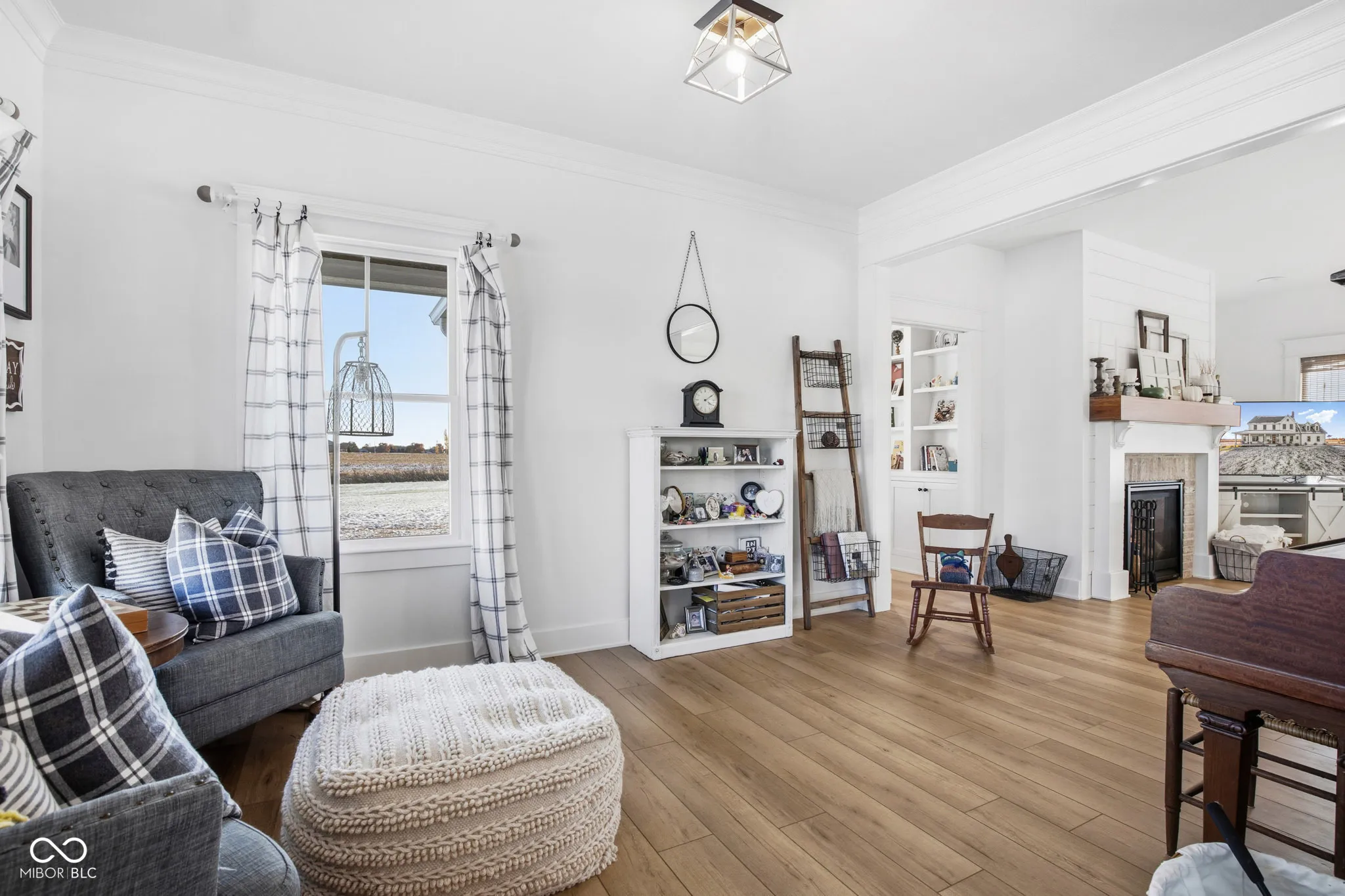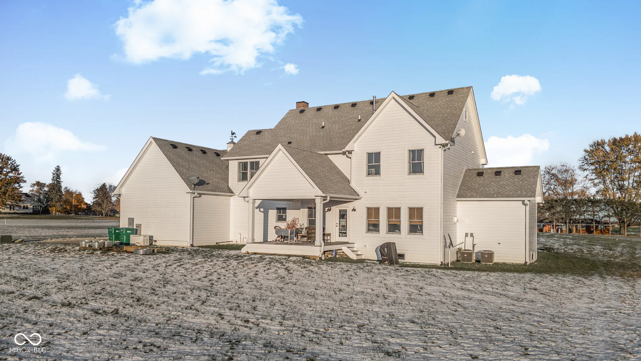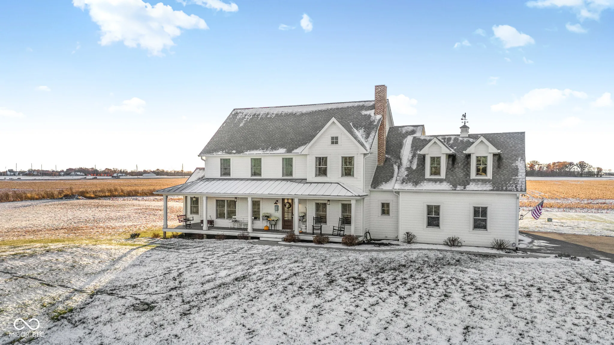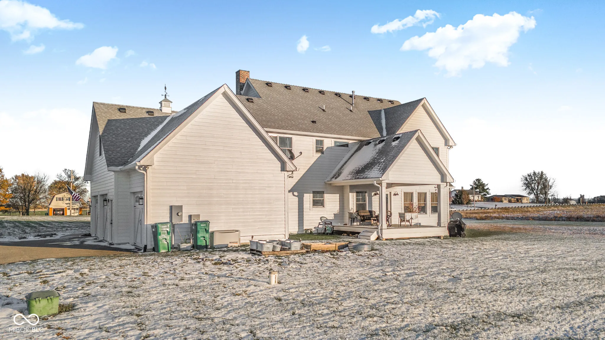 Custom Built Modern Farmhouse just 4 years old !!! -5-Acre Retreat Surrounded by Family-Owned Fields The sky is the limit for this property!! Start your mini farm, build your pool and barn. Get some chickens or horses! No HOA. This stunning, 5-bedroom custom home sits on 5 serene acres, landlocked by picturesque family-owned fields for unmatched privacy and views. Inside, you’ll find an open floor plan. Loads of charm throughout! The gourmet kitchen boasts white custom cabinetry, a 48″ Wolf Gas Range including griddle, pot filler, a farmsink, Carrara Marble countertops, and a large pantry with coffee bar. The spacious family room impresses with a rustic mantle and gas fireplace. A main-floor office with gorgeous custom built-in bookcases, a closet, and pocket door offer the perfect workspace or bedroom. Upstairs, you’ll find the serene master suite with a cathedral ceiling, sitting room, old-fashioned clawfoot tub, and a luxurious shower with a spa-like rain head! There are three additional bedrooms on the second floor PLUS and a huge, finished 22 X 18 foot rec room for your hobbies or the kids to play! Enjoy peaceful mornings on the wraparound front porch or unwind on the covered back patio overlooking your private acreage, offering unreal Indiana sunsets. Full basement is plumbed for a full bath and ready for finishing with your personal design. A spacious, attached 3 car garage for your convenience. Home is equipped w/ a whole house generator. This home was crafted for comfort, beauty, and lasting quality.