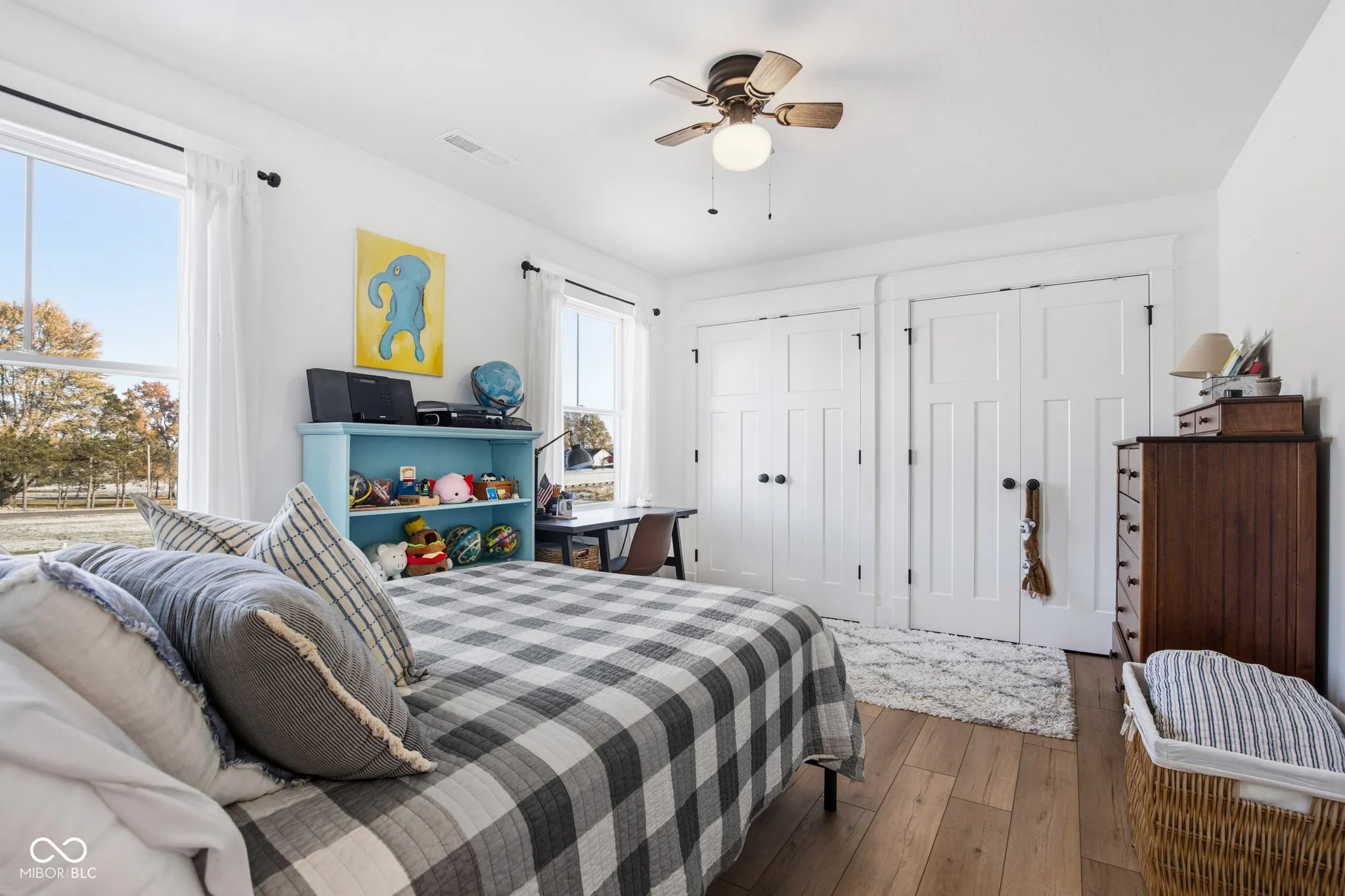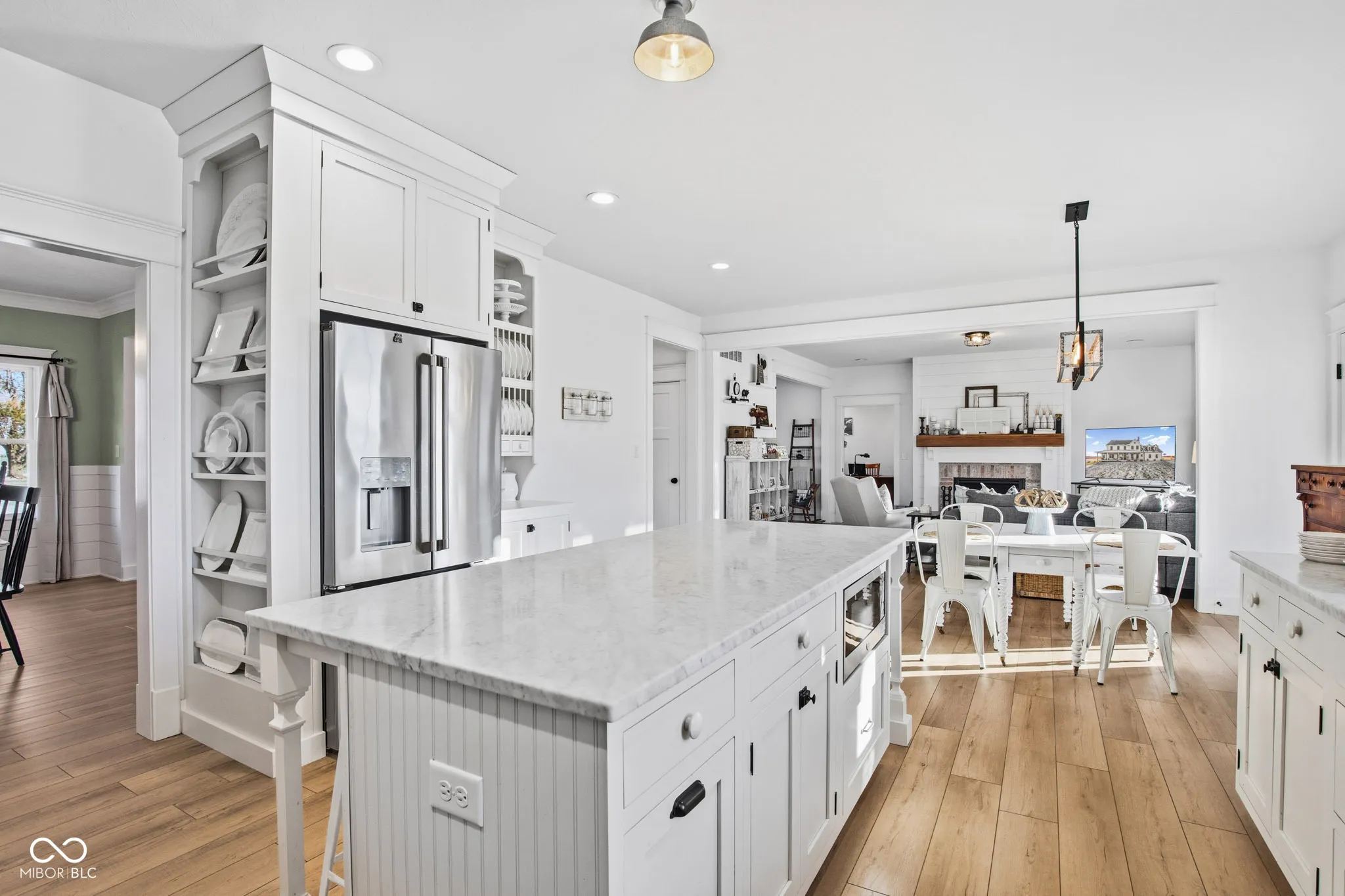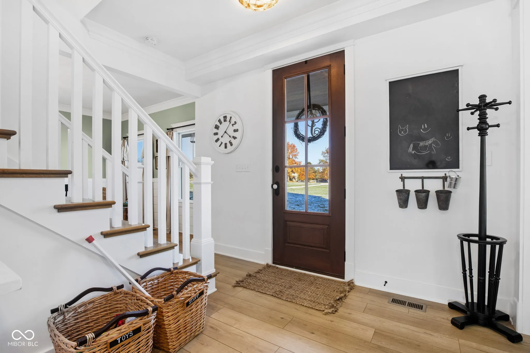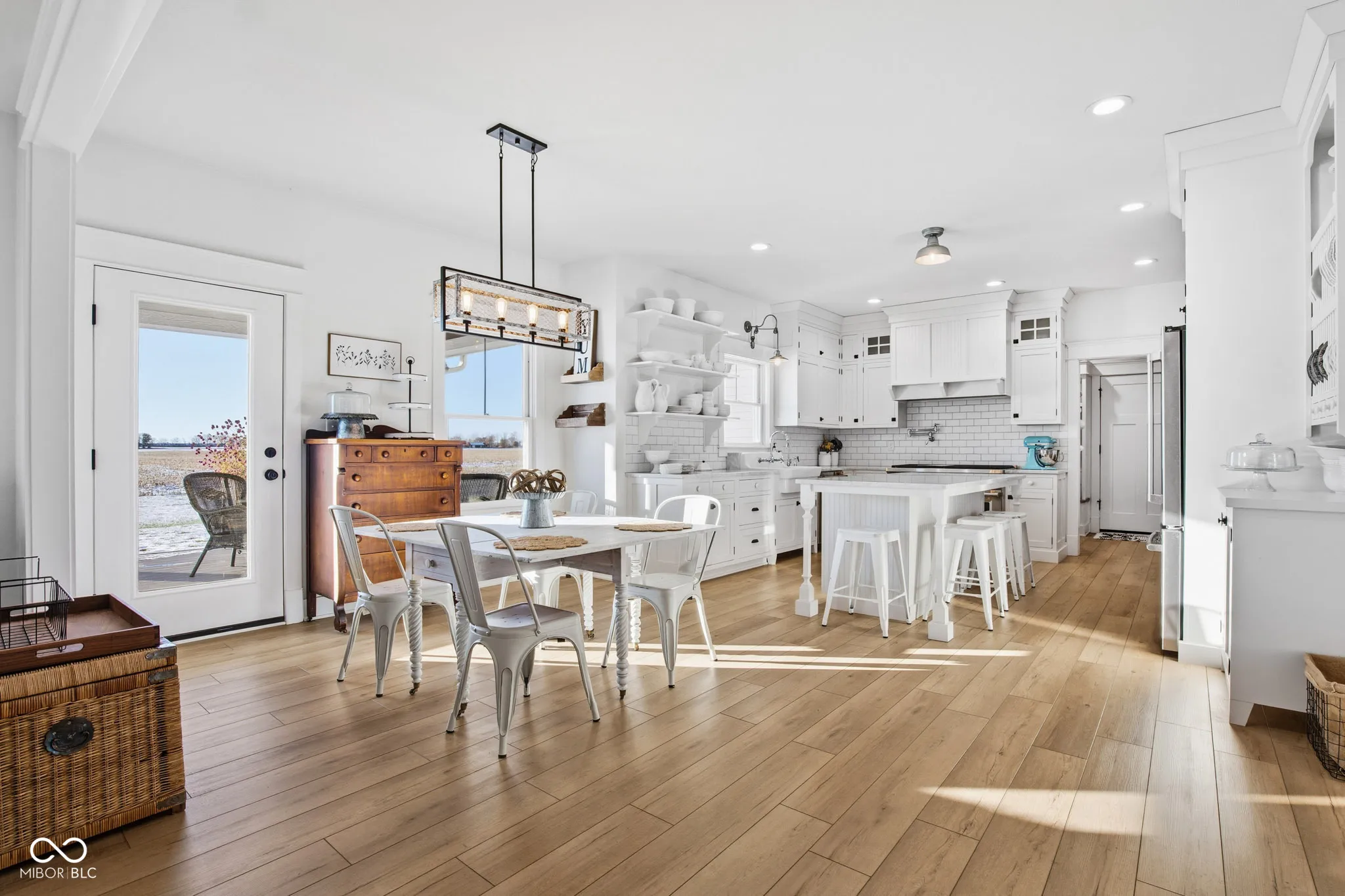 Custom Built Modern Farmhouse just 4 years old !!! -5-Acre Retreat Surrounded by Family-Owned Fields The sky is the limit for this property!! Start your mini farm, build your pool and barn. Get some chickens or horses! No HOA. This stunning, 5-bedroom custom home sits on 5 serene acres, landlocked by picturesque family-owned fields for unmatched privacy and views. Inside, you’ll find an open floor plan. Loads of charm throughout! The gourmet kitchen boasts white custom cabinetry, a 48″ Wolf Gas Range including griddle, pot filler, a farmsink, Carrara Marble countertops, and a large pantry with coffee bar. The spacious family room impresses with a rustic mantle and gas fireplace. A main-floor office with gorgeous custom built-in bookcases, a closet, and pocket door offer the perfect workspace or bedroom. Upstairs, you’ll find the serene master suite with a cathedral ceiling, sitting room, old-fashioned clawfoot tub, and a luxurious shower with a spa-like rain head! There are three additional bedrooms on the second floor PLUS and a huge, finished 22 X 18 foot rec room for your hobbies or the kids to play! Enjoy peaceful mornings on the wraparound front porch or unwind on the covered back patio overlooking your private acreage, offering unreal Indiana sunsets. Full basement is plumbed for a full bath and ready for finishing with your personal design. A spacious, attached 3 car garage for your convenience. Home is equipped w/ a whole house generator. This home was crafted for comfort, beauty, and lasting quality.
