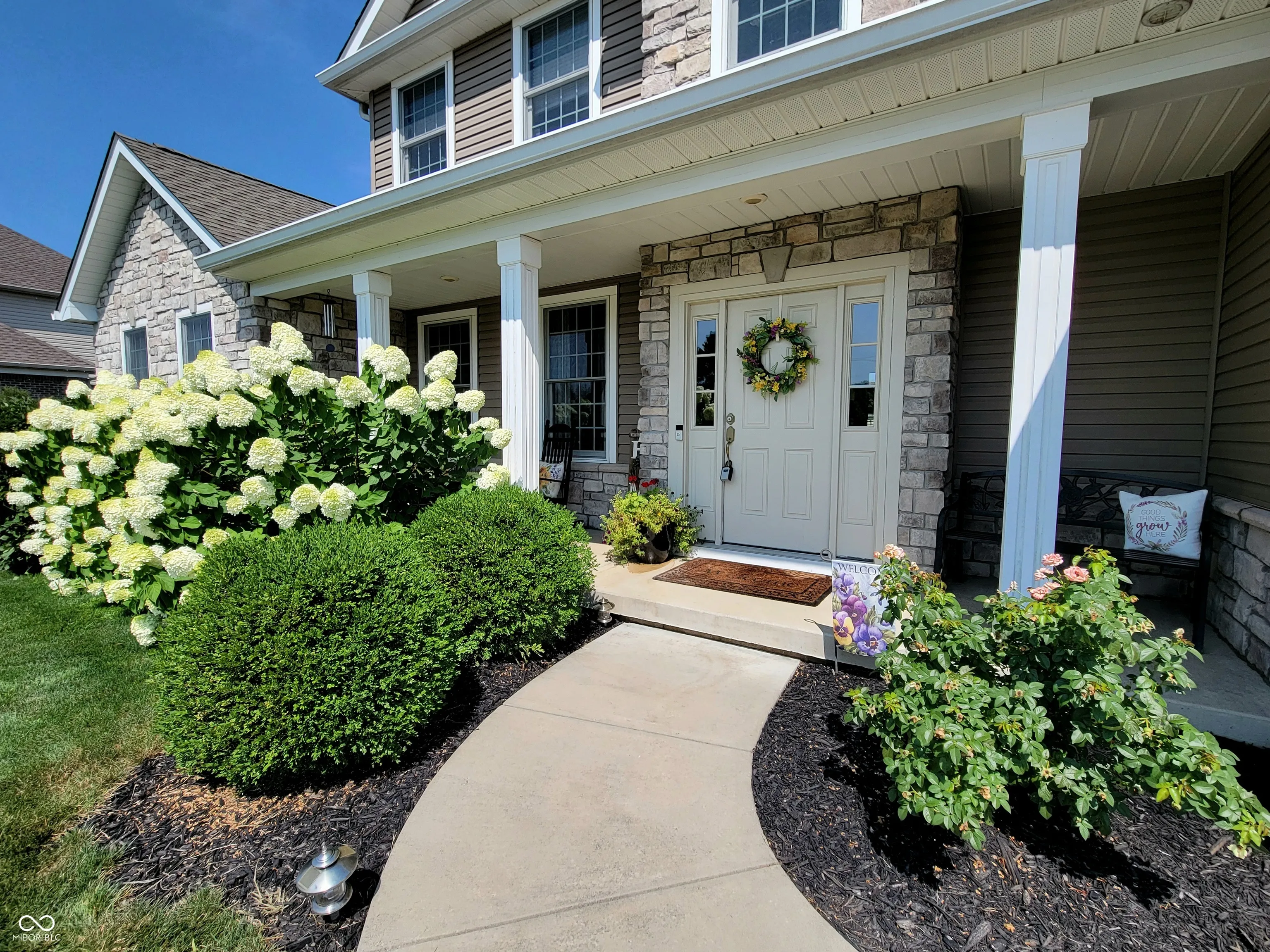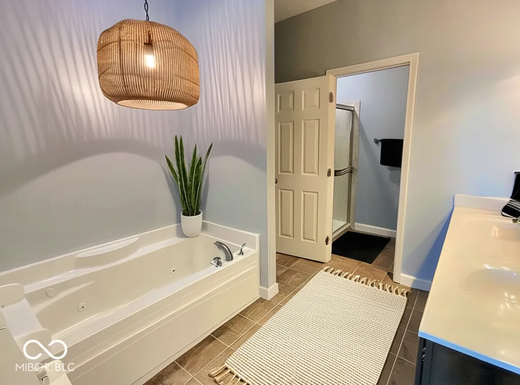Welcome to this stunning meticulously maintained home with four bedrooms and three and a half bathrooms in Yorktown, one of the safest places to live in America! This home has so much to offer. The primary ensuite bedroom is located on the main floor, while the upper level offers three more bedrooms, one of which is also with an ensuite bathroom! Spacious and inviting great room features a gas fireplace, while the open-concept kitchen and dining area, with the large island, are perfect for gatherings and entertaining. Kitchen features high-end appliances, as well as the custom backsplash! Living room offers additional common space that leads to the primary bedroom on main floor. Step outside and experience the private oasis that features the extended concrete patio, a private covered spa with the hot tub, extensive landscaping, and simply relax in your own slice of heaven. The generous attached two-car garage features the oversized garage doors, for a touch of luxury and utility. Home is equipped with the reverse osmosis filtration system, as well as an on-demand water softener. A must see. Why build, when you can just buy!