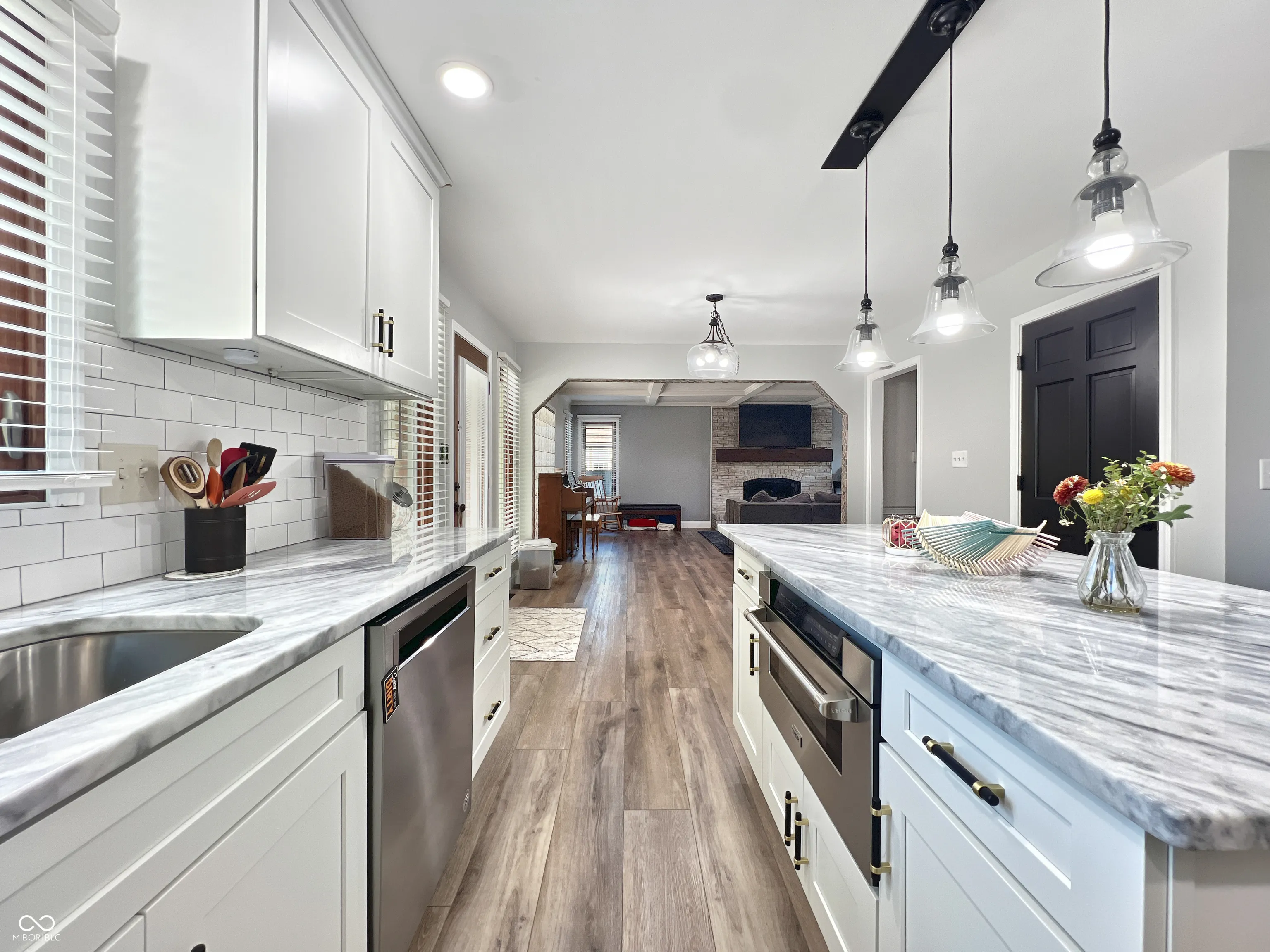From the front door, sightlines pull you straight through the main floor and out to the backyard oasis: a heated gunite pool (3-10 feet deep) with a new concrete deck, fully fenced yard, and an additional invisible fence for peace of mind. The covered outdoor lounge-with its ceiling fan, TV, and fireplace-begs for summer night hangouts, game days, and quiet early-morning coffee while the sun hits the water. Inside, the recently remodeled kitchen is the kind you actually want to cook in: quartz countertops, soft-close drawers, a generous center island, and high-end Thor appliances that make everything from weeknight dinners to holiday feasts feel effortless. The kitchen flows into a warm, inviting living room with coffered ceilings and a fireplace that anchors the whole space. A rare main-floor bedroom sits just off a full bathroom-perfect for guests, multigenerational living, a quiet office, or a future-flex space that can grow with you. Upstairs, the primary suite feels like a private retreat: cathedral ceiling in the bedroom, vaulted ceiling and skylight in the remodeled bath above the large shower, dual vanities, and a walk-in closet.. With a total of 5 bedrooms and 3 full baths, there’s room for everyone and everything. The finished basement adds a flexible recreation area-movie nights, workouts, game tables, or a second living space, it’s ready to become whatever you’ve been missing. And timing? You can be in your new home for Christmas-decorating the mantle, hanging lights by the pool, and starting new traditions in a space that feels both luxurious and deeply livable from day one.